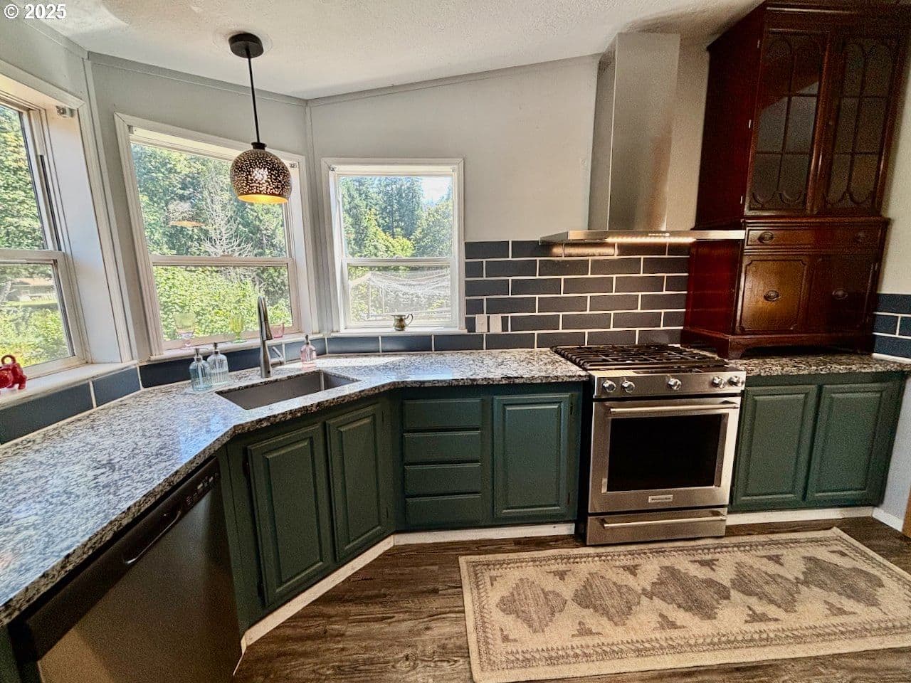 Washer, Dryer, Dishwasher, Disposal, Free-Standing Gas Range, Free-Standing Refrigerator, Range Hood