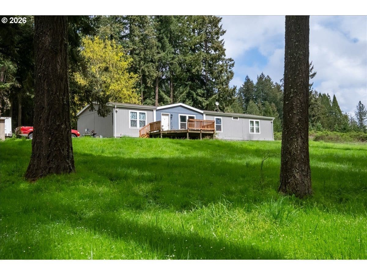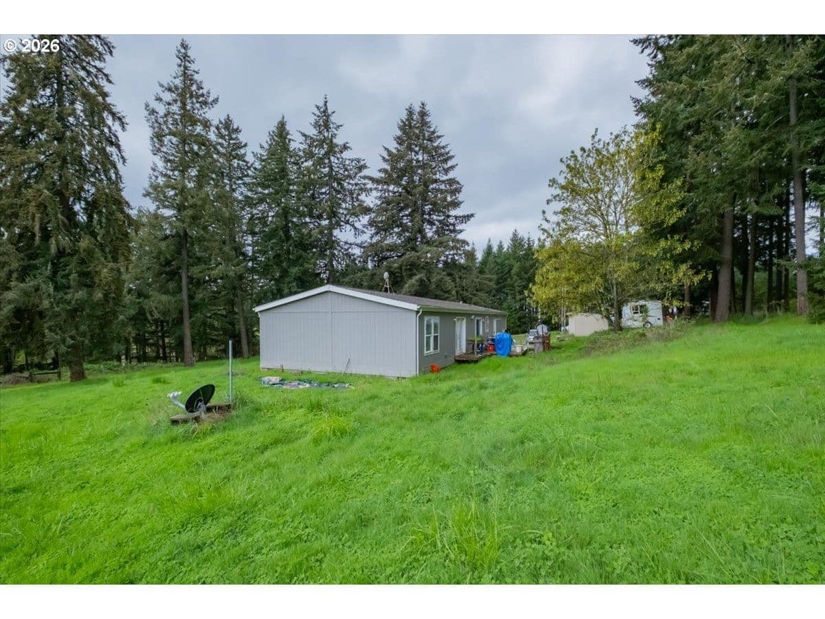 Own 18+ acres of peaceful countryside with a 38x46 shop, mature timber, pasture, & a private pond. 2020 MFH offers 1,944 SF, 4 bedrooms, 2 full baths with a desirable split floor plan. Primary suite is on one side, while three guest bedrooms & a full bath sit on the opposite side. An open kitchen features stainless steel appliances & a large granite island, perfect for gathering. Shop has septic connection. Plenty of space for animals, recreation, or relaxing. Home & property are sold AS IS. Minutes to I5!