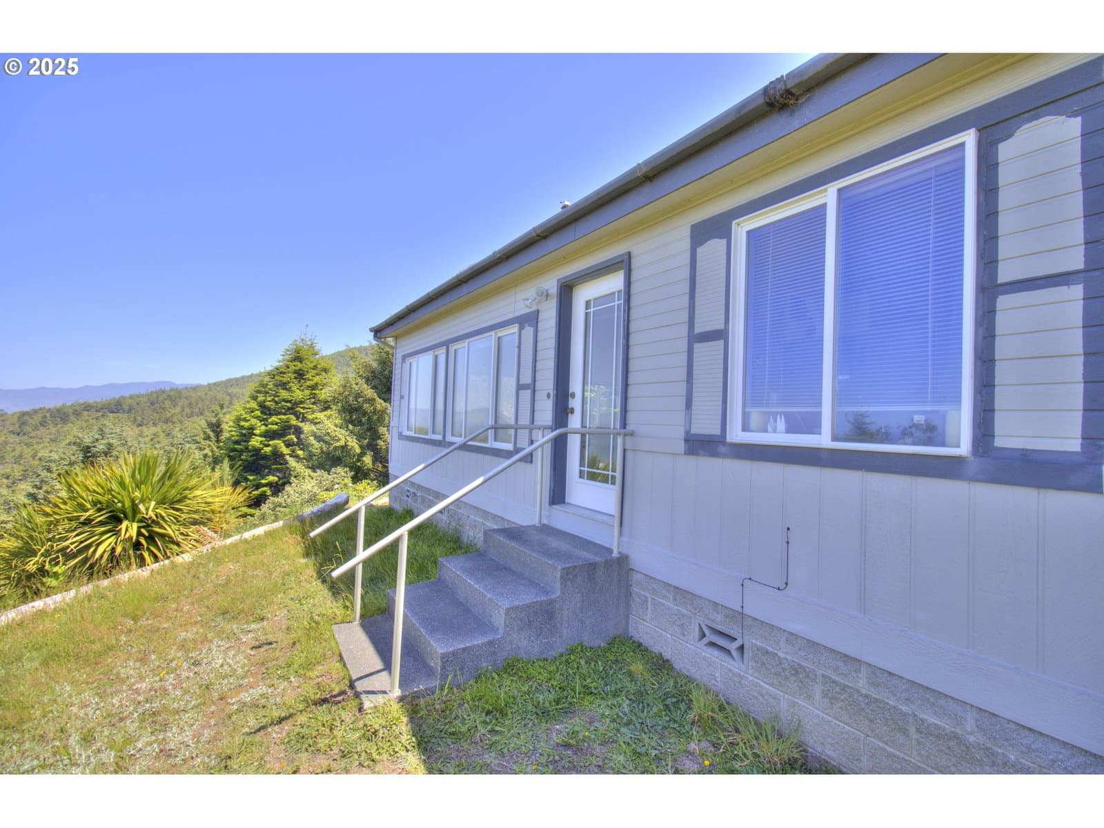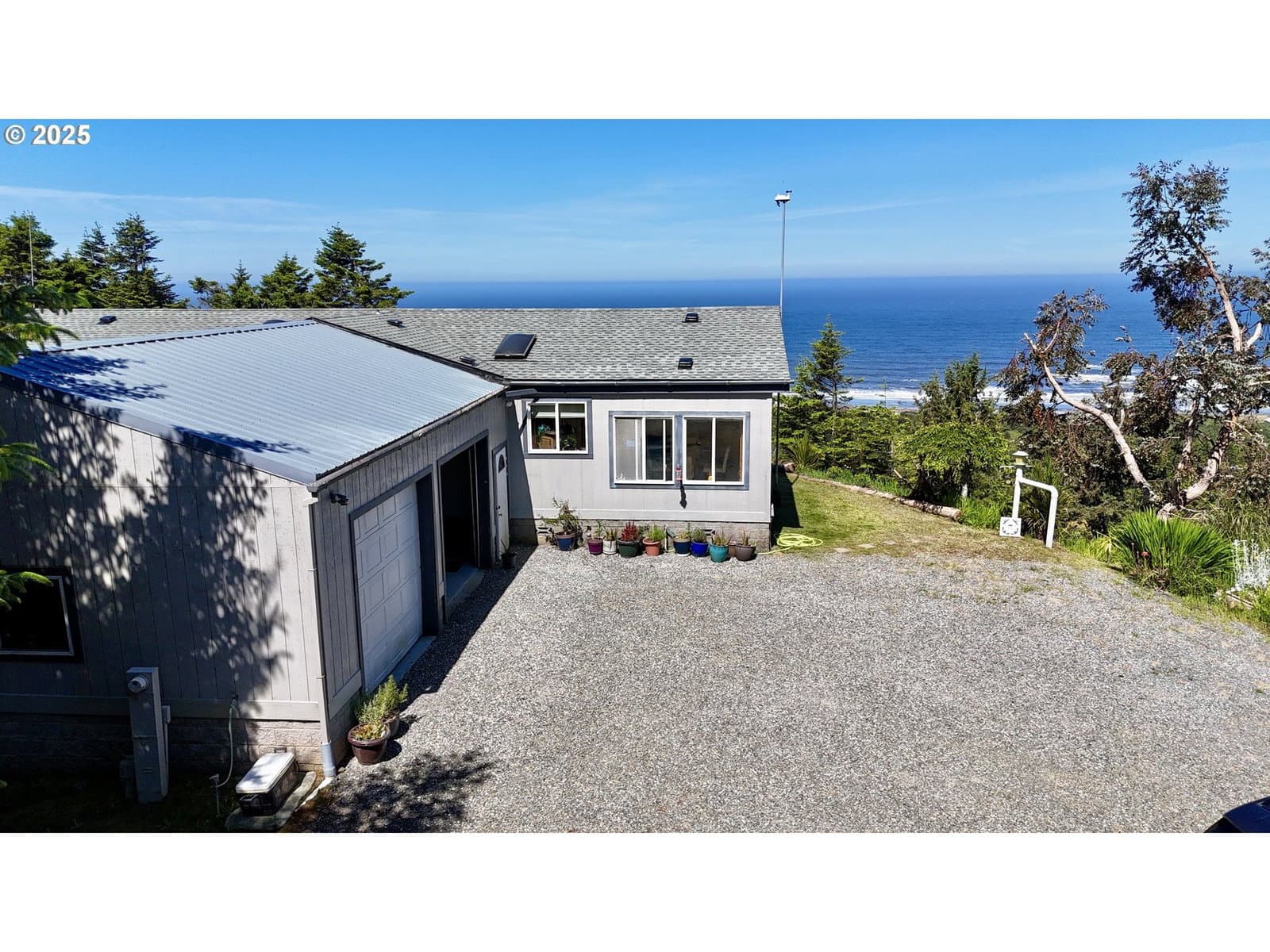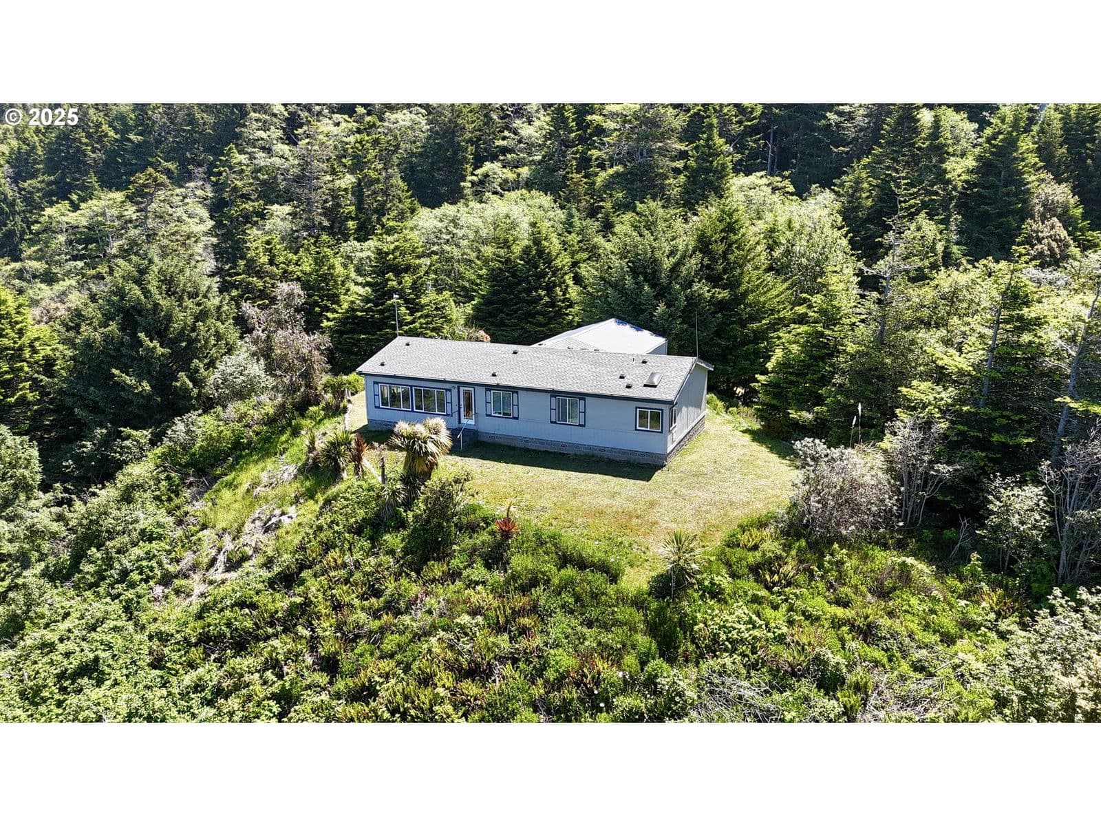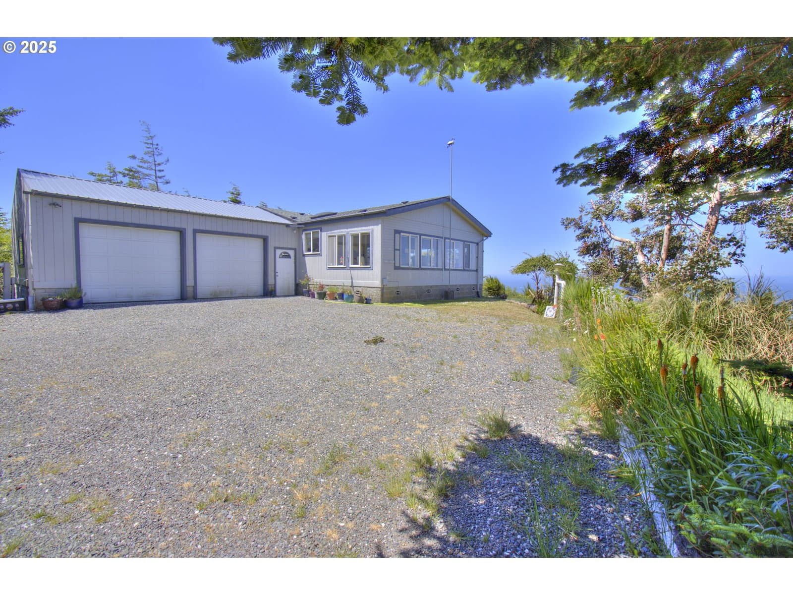 Starry Nights in the evening and On Top of the World expansive 27 Mile Ocean Views during the day! A once-in-a-lifetime opportunity to own nearly 25 acres of manicured, secluded paradise perched above the Pacific Ocean. This rare coastal gem boasts sweeping, unobstructed views of iconic landmarks including Sisters Rock, Cape Blanco Lighthouse, and the quaint harbor of Port Orford plus millions of stars surrounding you each night. Surrounded by nature and alive with wildlife—including whale watching right from your deck—this private retreat offers unmatched serenity, making it the perfect escape or dream full-time residence.The well cared for 3-bedroom, 2-bath home features a bright, open layout designed with comfort and functionality in mind. Enjoy:New stainless appliances and slide-out kitchen shelves.Skylights for natural light and cheerful ambiance. Luxury vinyl flooring throughout.A spacious primary suite with jacuzzi tub. Thoughtful upgrades including R30 insulation and clean, concealed wiring in the crawlspace. Double pane Argon gas filled double pane windows. Hi speed internet and Direct TV/Satellite. City water w/ a 1200 gallon holding tank. New Roof.An oversized attached 2 car garage, ideal for storage, a workshop, or all your coastal adventure gearThe property includes towering mature trees, with potential merchantable timber value, adding to its appeal as a long-term investment or development opportunity.Whether you're dreaming of a private sanctuary, a vacation getaway, or exploring future possibilities, this property delivers on all fronts. Don’t miss your chance to own a truly spectacular slice of the Oregon Coast.