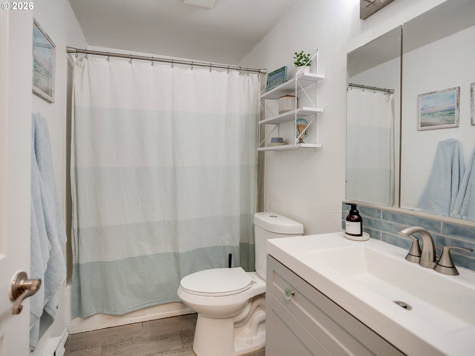 Cozy and charming one level home on a spacious .16 acre lot just moments from Old Town Sherwood. This 3 bedroom, 1 bath home offers comfortable living with laminate flooring, baseboard heating, and a warm gas fireplace in the main living area. The galley kitchen features ample cabinet space, stainless steel appliances, and opens to a bright dining nook with sliding doors that lead to the deck, creating a nice connection between indoor and outdoor living. Step outside to an awesome fully fenced backyard with plenty of room to enjoy the outdoors. The space includes a deck with covered awning, garden area, play structure, and room for entertaining, pets, or relaxing evenings. Extra parking to the side of the garage provides space for additional vehicles. Conveniently located near Snyder Park, local schools, and the shops and restaurants of Old Town Sherwood, this home offers comfort, charm, and a great location.All appliances included.
