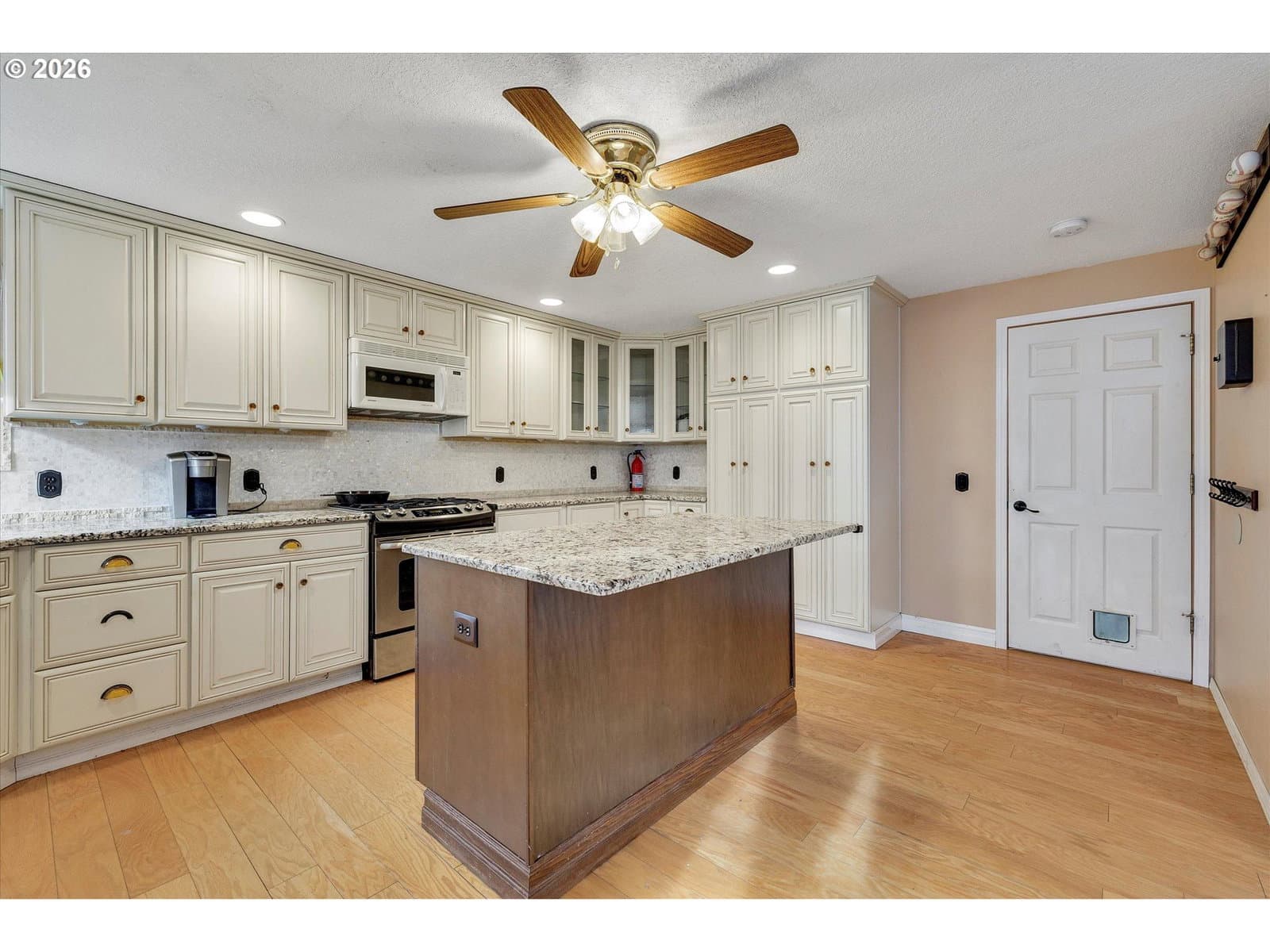 Tucked away on the 70th Court cul-de-sac, this delightful Hillsboro residence offers roomy bedrooms, with a spacious primary suite. The custom kitchen features maple cabinetry, soft-close drawers, a mother-of-pearl backsplash, an island, and a gas range. Step outside to a fully fenced backyard complete with a deck, a Tuff Shed, a play structure, lawn, and a newly installed walkway that leads directly to the driveway and attached two-car garage. The extended driveway accommodates plenty of parking, and the neighborhood has no HOA restrictions. All appliances and the play structure are included, making this home truly move-in ready and ideal for comfortable everyday living. [Home Energy Score = 5. HES Report at https://rpt.greenbuildingregistry.com/hes/OR10244017]