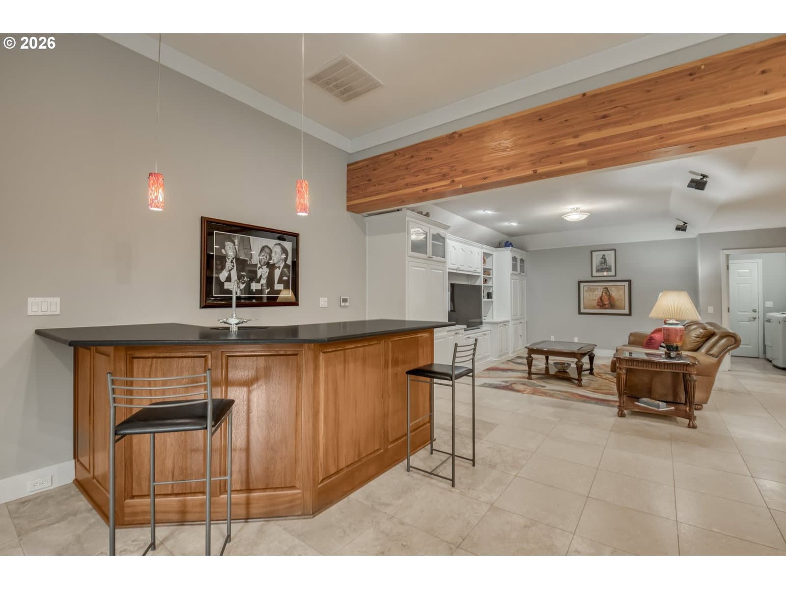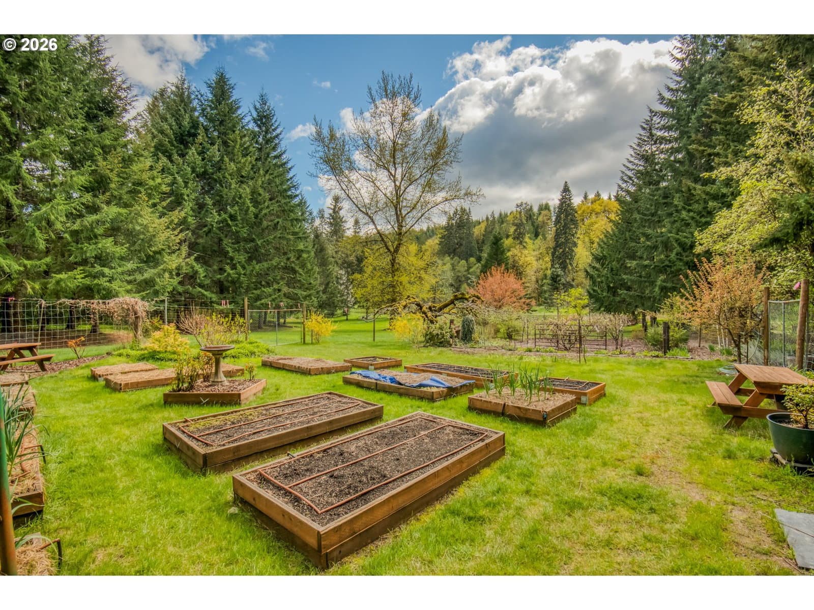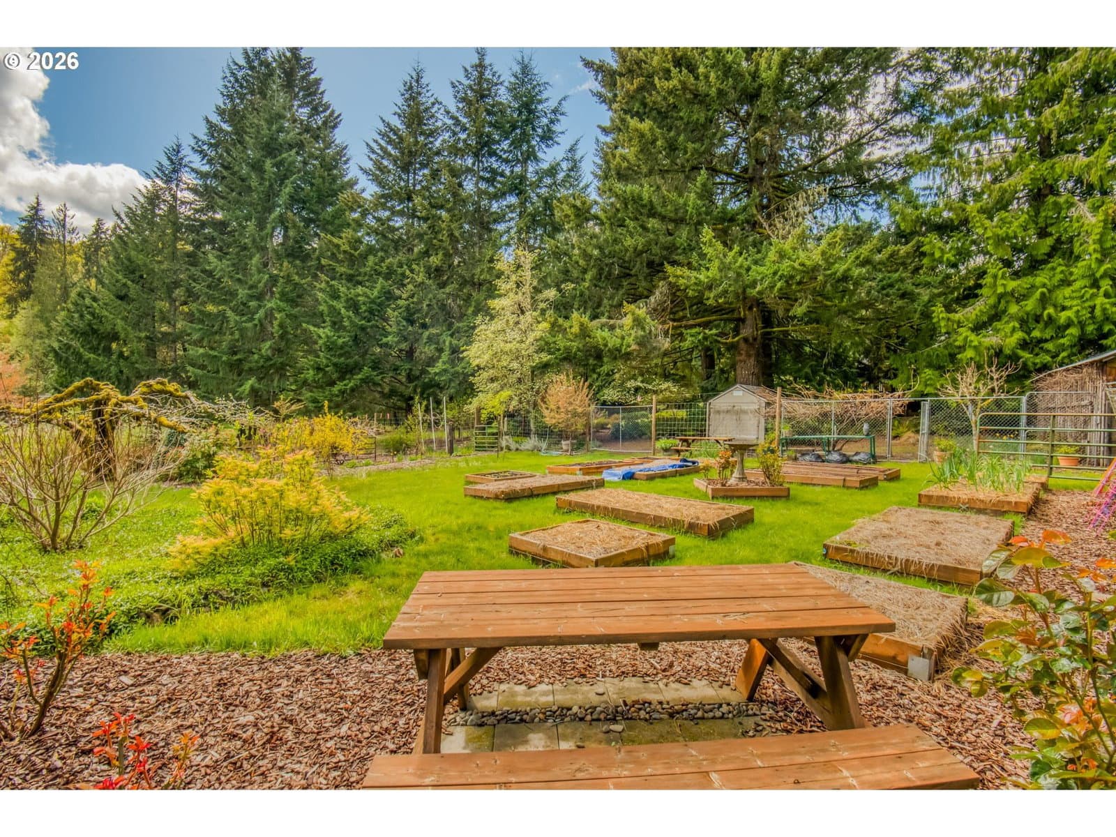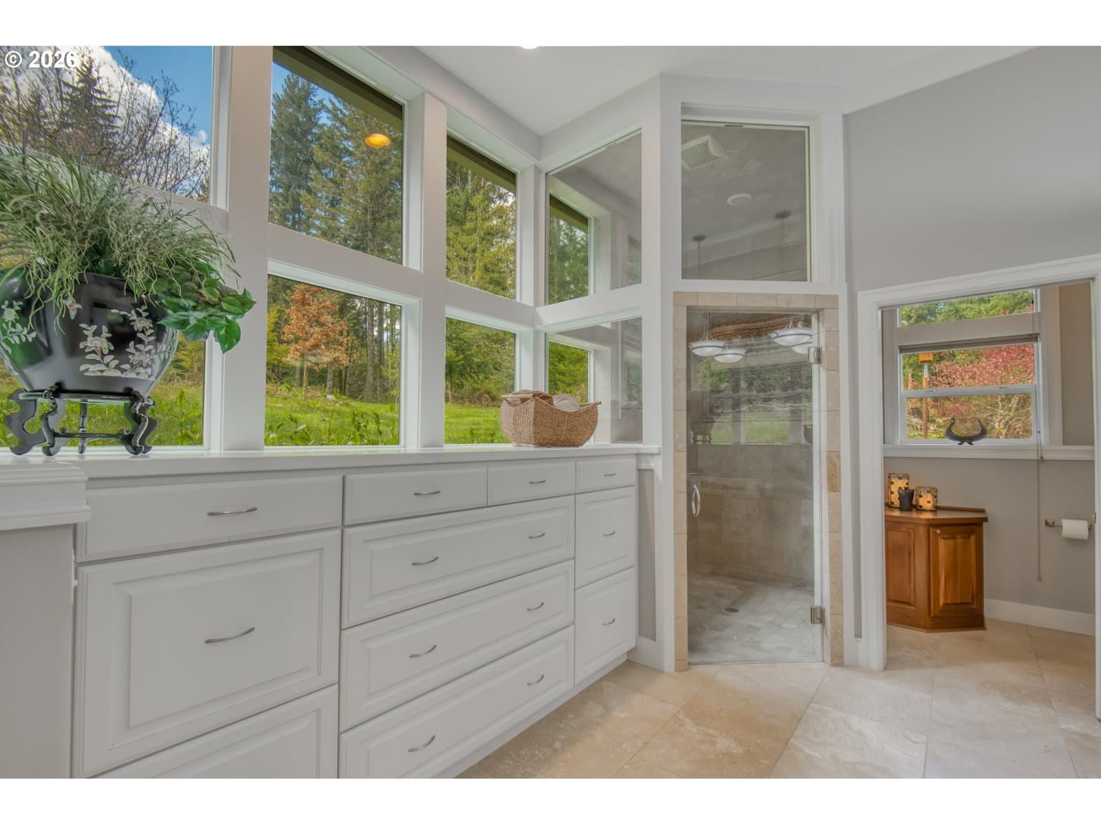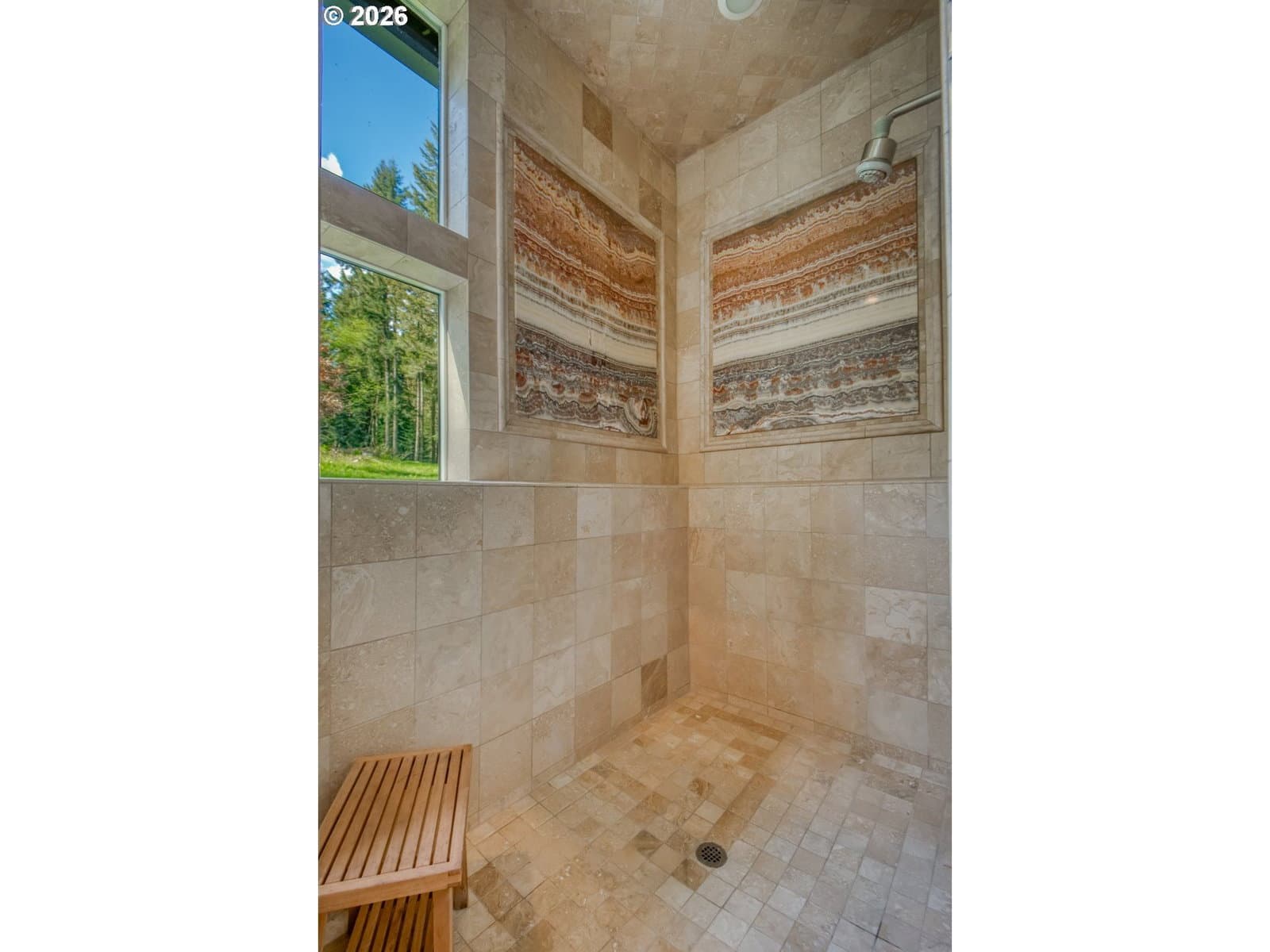 Set on 29.5 private, wooded acres, this cedar and brick estate offers a perfect blend of luxury and rural tranquility. The open-concept interior is anchored by a massive architectural beam and high ceilings, creating an inviting space for both daily living and formal entertaining, all set atop elegant travertine flooring that flows throughout the main living area. The gourmet kitchen is a true centerpiece, featuring durable ceramic tile, custom Brazilian mahogany cabinets, a built-in Sub-Zero refrigerator, and a professional-grade Wolf 6-burner stove with a griddle and double oven. Finished with leather-textured granite and a large island with storage on both sides, the kitchen flows into a great room highlighted by custom built-ins and a magnificent stacked stone fireplace. Large windows throughout provide peaceful views of the 3-acre pond and meadow. The thoughtful split floor plan ensures maximum privacy. The primary suite sits on its own wing, boasting a massive walk-in closet with a hidden bonus storage room and a spa-like ensuite. This private retreat features heated travertine floors, onyx countertops, and a walk-in shower. On the opposite side of the home, is a second primary suite, complete with a jetted tub and walk-in shower. A grand study with chair rail accents provides a sophisticated space for a home office. The exterior is designed to embrace the natural surroundings. Relax on the two-level deck accessible from the great room and secondary bedroom or the covered patio featuring a large skylight. The grounds are a nature lover’s dream, with lush landscaping, walking paths for viewing deer and elk, and a productive orchard of apple, pear, peach, and plum trees. The property is fully equipped for hobbies and utility with a barn, greenhouse, storage shed, gazebo, and fenced raised-bed garden. Modern essentials like a whole-house generator, two-car garage, and additional carport complete this exceptional private retreat.