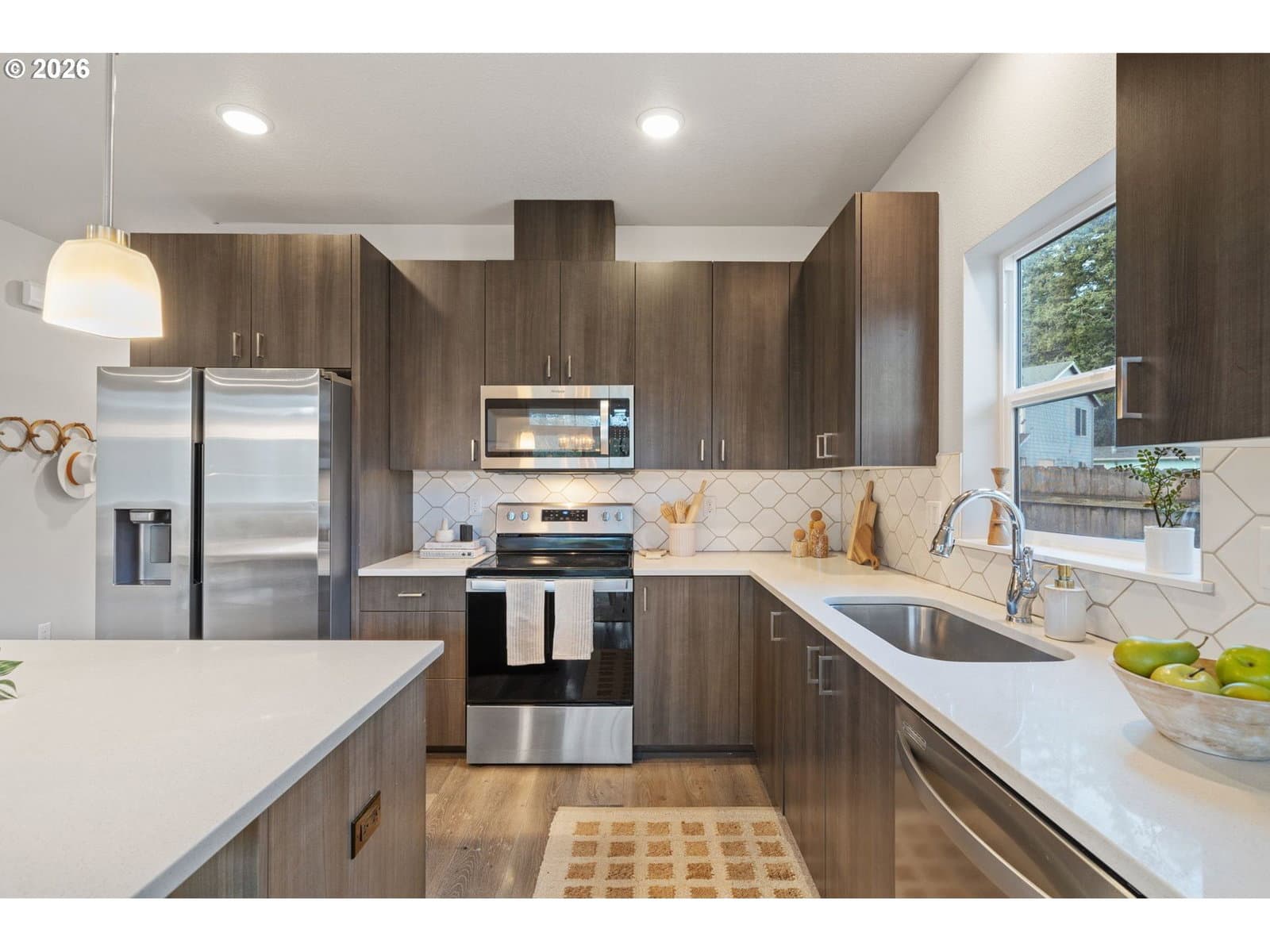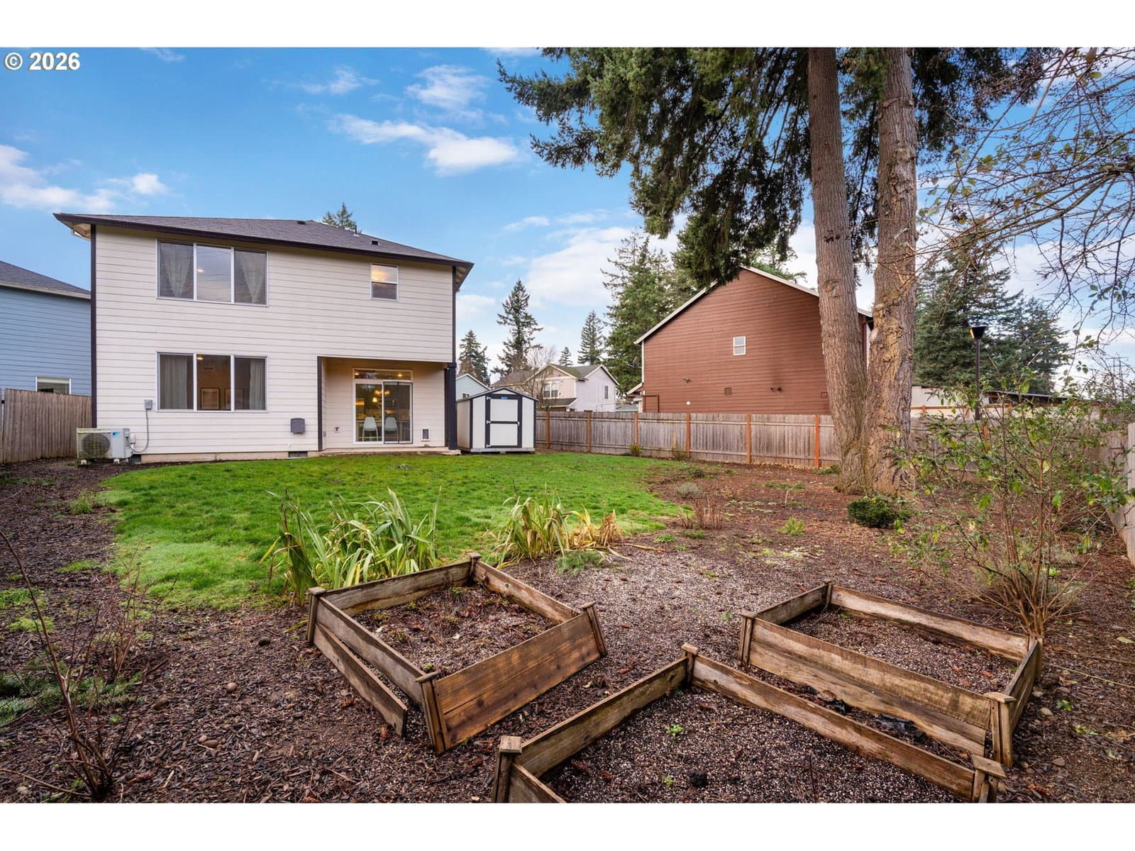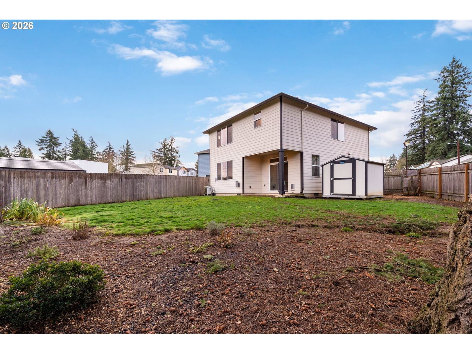2020 build on the largest lot of a sweet cul-de-sac in Pleasant Valley/Powellhurst. Sitting at the end of the cul-de-sac, this property backs to the greenspace of the Springwater Corridor with miles of pathway. Open concept floorplan with modern finishes. LVP flooring throughout, flat front cabinets, quartz counters, huge closet spaces, freshly painted trim work, covered back patio, shed, chicken coop and garden beds in back. Large side yards in addition to the backyard are great for outdoor storage. This home is low maintenance, energy efficient and centrally located near Powell Butte, Happy Valley and the redeveloped Lents shopping, dining and parks! [Home Energy Score = 7. HES Report at https://rpt.greenbuildingregistry.com/hes/OR10182316]