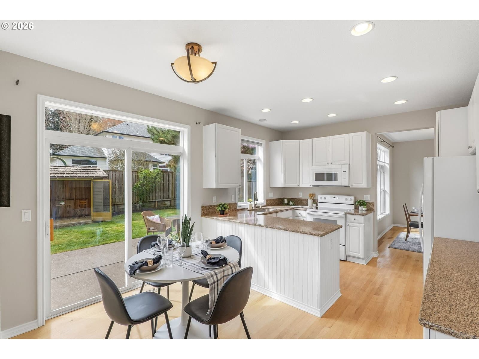 Welcome to this inviting Woodhaven home, where charm and comfort come together in one of Sherwood’s most beloved neighborhoods. Nestled along a peaceful, tree-lined street, the front porch sets the tone—perfect for slow mornings with coffee or unwinding at the end of the day. Step inside to soaring vaulted ceilings in the entry and living room, where natural light pours in and creates an airy, uplifting feel. The home offers both a formal living room and a separate family room featuring gorgeous natural light and an abundance of windows that create a bright, welcoming space to gather and relax. A formal dining room adds an elegant touch for hosting everything from intimate dinners to larger celebrations. The kitchen is both functional and inviting, complete with a breakfast nook for casual meals and sliding doors that open to the backyard—making indoor-outdoor living feel effortless. Upstairs, the primary suite offers a true retreat—spacious and serene, with a spa-like ensuite featuring a deep soaking tub perfect for unwinding, a separate walk-in shower and a generous walk-in closet that provides ample storage and organization. Throughout the home, you’ll find meaningful updates including newer hardwood floors, fresh interior and exterior paint, new carpet, a new stove, a newer roof, a brand new furnace, brand new AC system and a newer water heater—providing style and peace of mind. Outside, the fully fenced backyard is ready for entertaining or quiet evenings, featuring a patio and a convenient storage shed. Ideally located just 1/2 mile from Woodhaven Park, walking distance to the YMCA, with trails woven throughout the neighborhood, this home offers the perfect blend of nature, convenience and everyday livability.