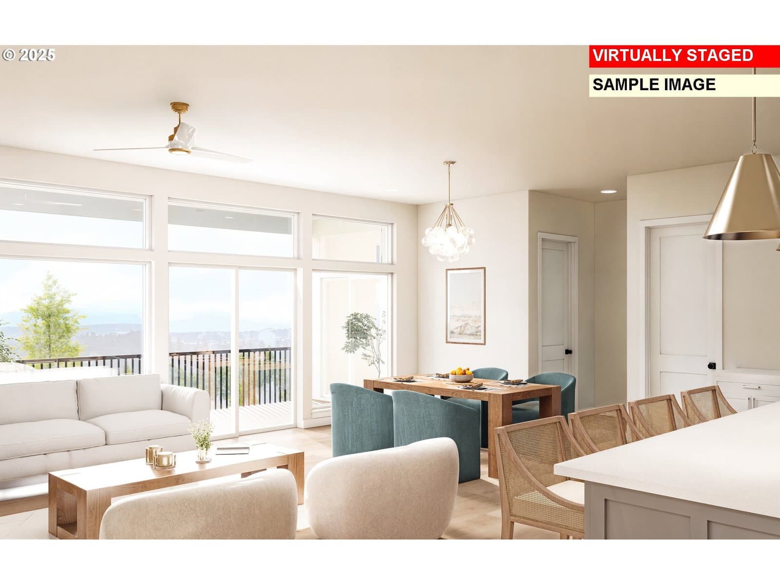 Introducing this stunning new construction - a modern 4-bedroom, 3.1-bath masterpiece offering luxurious living. What truly sets this home apart is the breathtaking view! Imagine waking up every morning to both river and mountain vistas, a rare find in new construction! Step into an open-concept kitchen designed to impress, featuring a massive island, sleek quartz countertops, premium stainless steel appliances and pantry. The spacious living room with a gas fireplace invites you to relax and soak in the ever-changing scenery of the sparkling water and majestic Mt. Hood. The primary suite is conveniently located on the main floor. Whether you're sipping coffee at sunrise or hosting friends on the covered deck, this home brings the outdoors in with abundant natural light and picturesque sightlines. The main living space has gorgeous luxury vinyl plank flooring throughout. Downstairs is a family room with sliders to a covered deck, a 2nd primary suite with private bath, two more bedrooms, a full guest bath and a laundry room. Located in a well-maintained neighborhood, you’re minutes from top-rated schools, dining, shopping, and the beloved Glendoveer Golf Course, and just a 20-minute drive to PDX. Embrace a lifestyle of balance with golfing, swimming and walking or biking through scenic trails in the evening. Store your RV or boat in your very own attached RV garage.