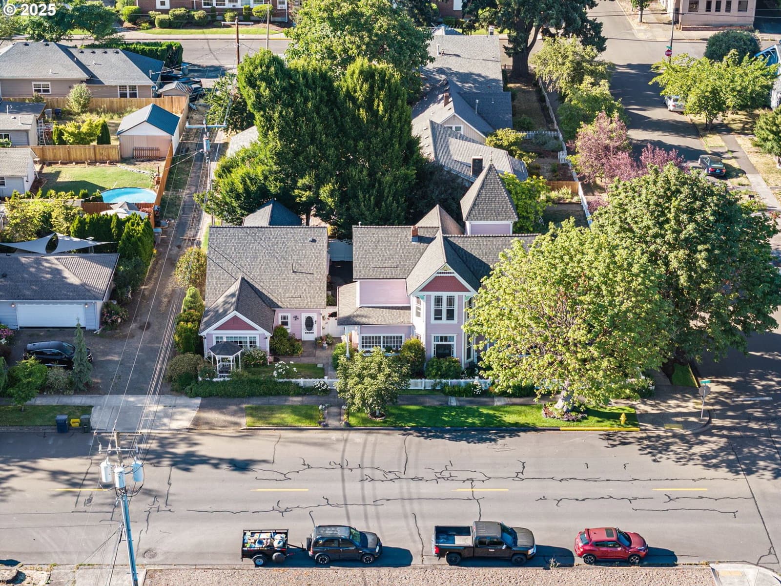 2 houses, Income Potential! ($31894 gross per VRBO records for 2021) Queen Anne Victorian, plus second home/ADU/Air B and B. Framed by towering trees that give it a truly majestic presence. Main house 2046 Sq fit and carriage house/cottage/ADU 1282sq.ft equals 3328. Step inside to an elegant parlor, living, and dining room. Ornate brass chandeliers, original leaded stained glass windows, evoke the charm of a bygone Victorian era. Sellers will consider leaving much of the the furniture. They have carefully and lovingly retained the features and charm of the original home in every way. Kitchen features Elmira gas stove with 6 burners. (Looks just like the period correct wood burning stoves.) Built in breakfast nook with storage and modern conveniences. Tile floors. Granite counter tops. Upstairs features tongue-and-groove flooring, high ceilings, wainscoting, crown moldings, plus a tower room or Cupola (solid cedar paneling, vaulted ceiling with views.) Your getaway for creative enjoyment. The ADU (Accessory Dwelling Unit) is far more than you’d expect—featuring 2 bedrooms, 2 bathrooms, and a spacious living area and kitchen ideal for a weekend getaway or extended stay. 3 laundry areas (1 in house, 1 in ADU and 1 in garage area), each with its own included washer and dryer for maximum convenience. The second home is ideal for bed and breakfast business or separate family. The garage includes an additional bonus room and a half bath, offering flexible space for a studio, office, or guest suite. The lovingly groomed yard is a master gardeners dream featuring sprinklers, flowers, shrubs, grass and an irrigation well. Kitchen cupboards hide the microwave and TV. Wow, you must come and see this beautifully loved and maintained Victorian with wrap around front porch with original gingerbread woodwork. Rare Opportunity! Same family owned and loved for many decades. 3328 sq ft is for both homes. The heated garage has a half bath.