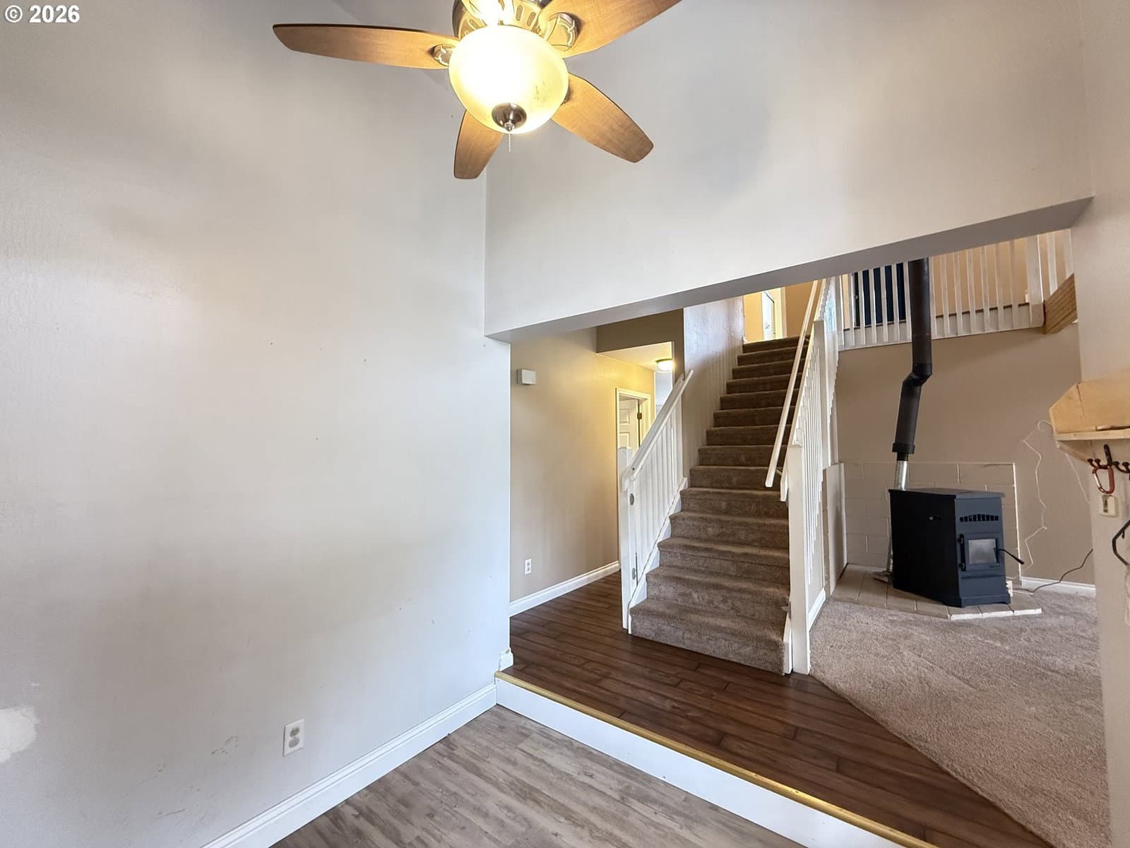 This beautiful custom 3-bedroom, 2-bath home offers natural light, soaring vaulted ceilings, and thoughtful design throughout. The main living area features two-story ceilings with decorative beams, nearly floor-to-ceiling windows framing mountain views, and dual doors opening to the front deck. The first-floor primary suite includes a private en suite, while upstairs has 2 bedrooms and a versatile loft provides more mountain views. Enjoy two living spaces: a family room with built-in office, pellet stove, and patio access, plus a formal dining room for gatherings. The kitchen boasts granite tile counters, Jenn-Air oven, breakfast bar, and built-in pantry. Energy-efficient updates include vinyl siding, double-pane windows, LED lighting, and insulated blinds. Outdoors, mature trees, low-maintenance landscaping, underground sprinklers with drip system, and a private fenced yard create a relaxing retreat