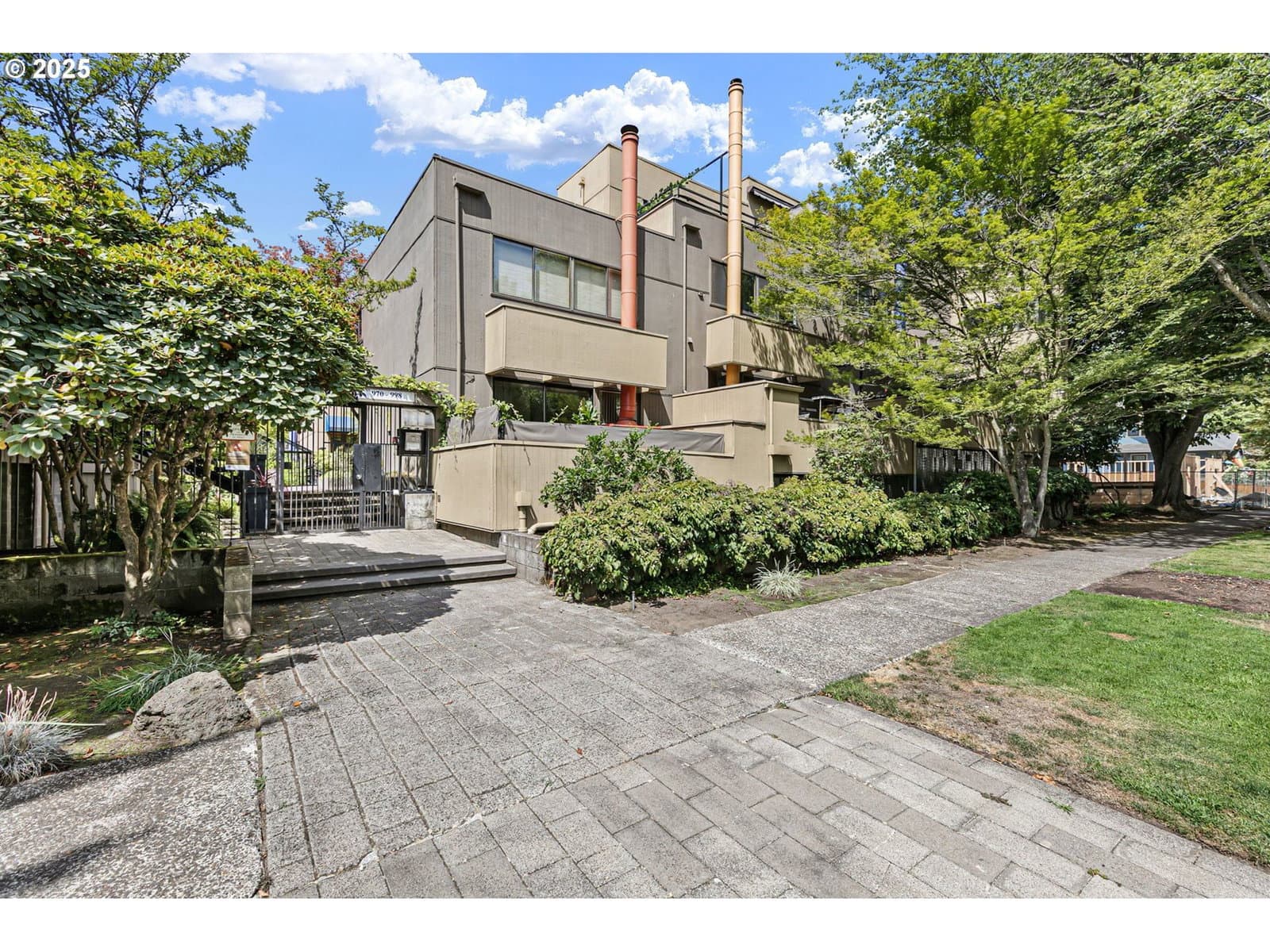 Sophisticated urban living meets timeless architectural design in this exceptional residence by acclaimed firm Unthank, Ceder & Poticha. While the unit retains its original finishes, it offers a rare opportunity for a designer’s touch—an ideal canvas for those looking to create a personalized, elevated space within a beautifully crafted framework. Impeccably designed, this tri-level spacious condo showcases natural cork flooring, an abundance of expansive windows, and a flowing open-concept layout that seamlessly connects the kitchen, dining, and living areas. A wood-burning fireplace adds character, while two private decks offer the perfect retreat for morning coffee or evening relaxation. All bedrooms offer generous proportions, custom built-in shelving, and ample closet space. The unit is complete with in-unit laundry and abundant storage throughout. Step outside and immerse yourself in the lush, tranquil beauty of the inner courtyard—an elegant urban sanctuary with mature landscaping and peaceful water features. Ideally situated just moments from the University of Oregon, the Eugene Public Library, and the cultural heart of downtown. Enjoy the convenience of two secured underground parking spaces and secure bike storage—all within a quiet, well-maintained, gated community designed for comfort and style.