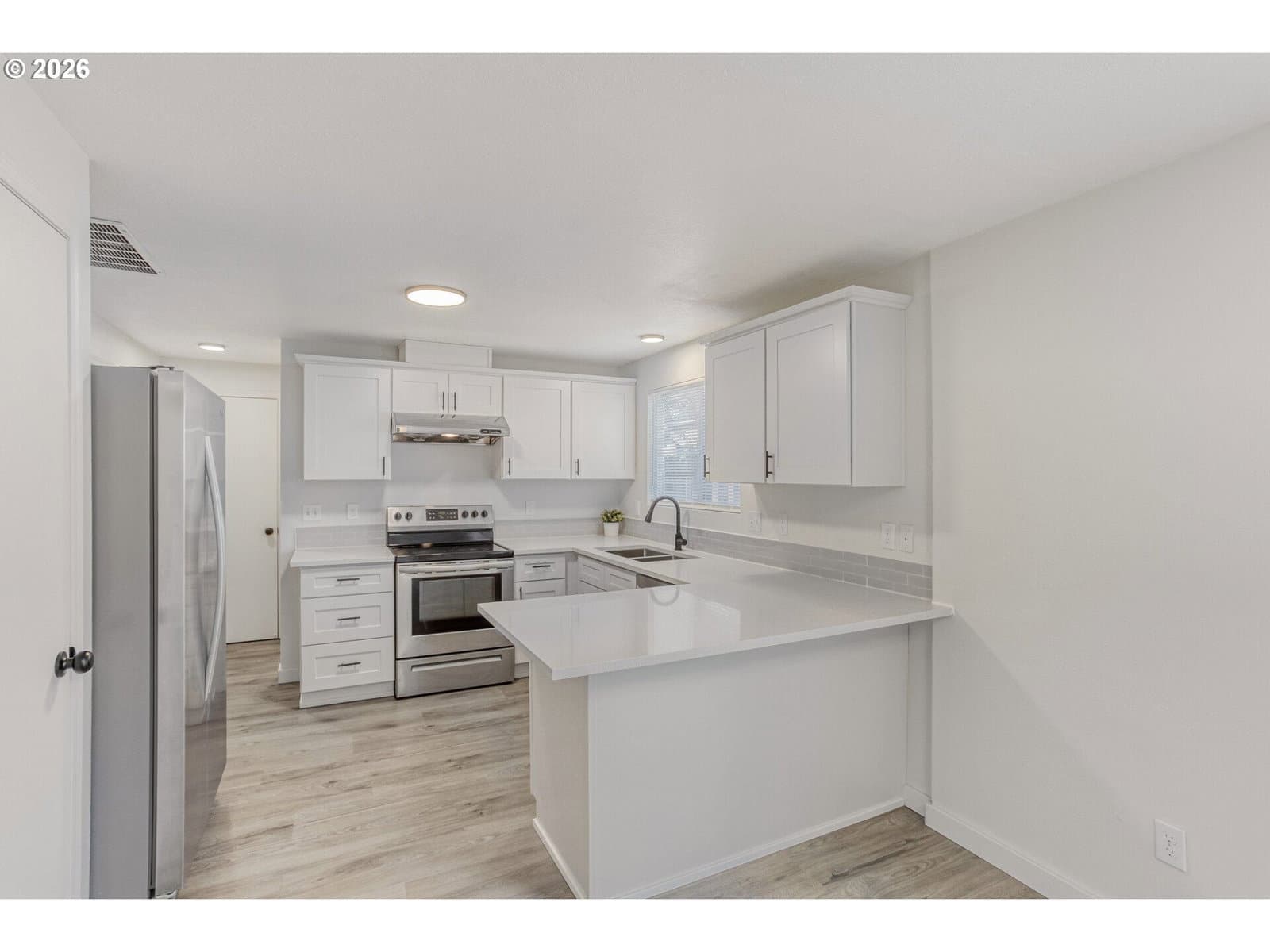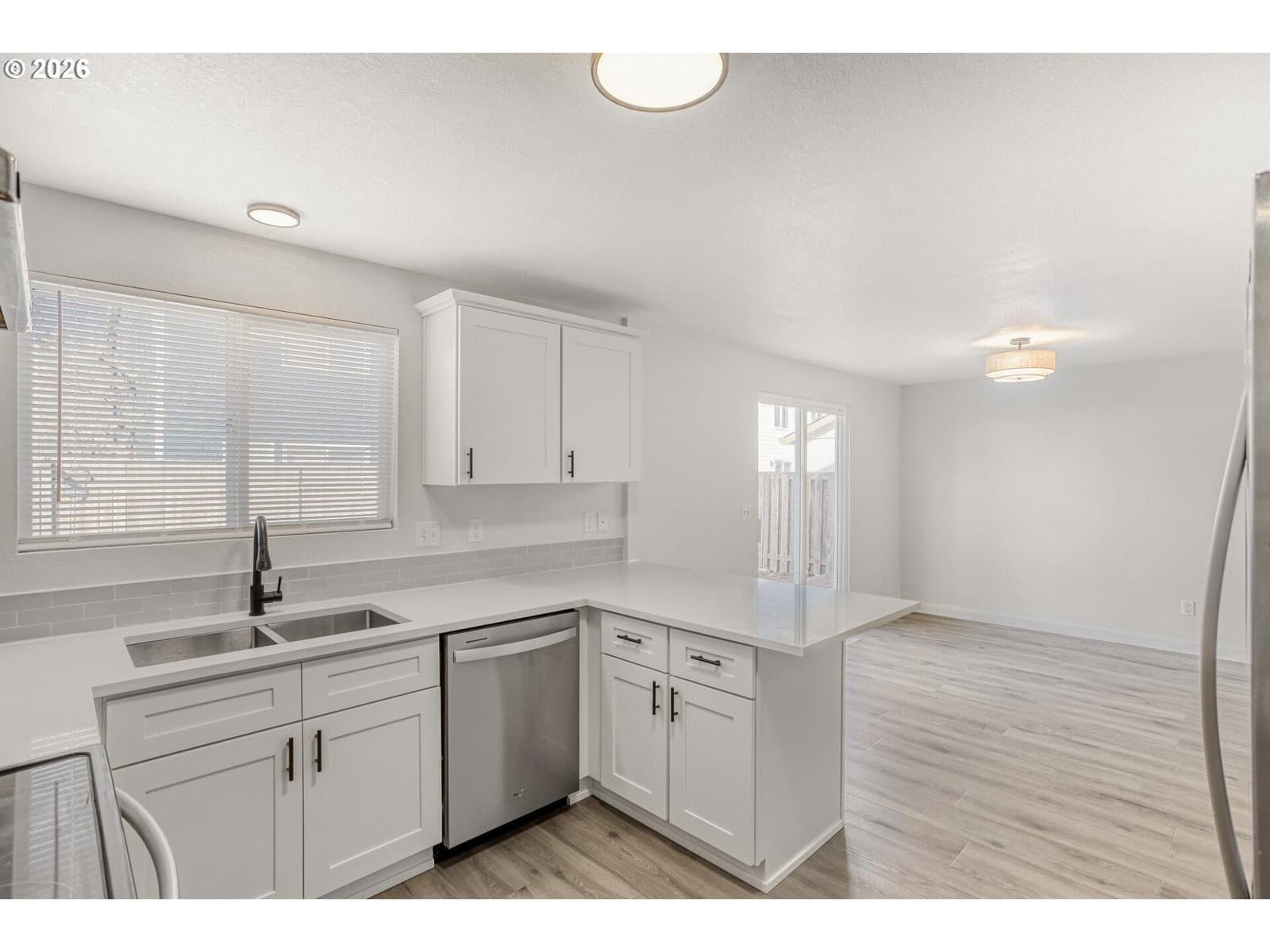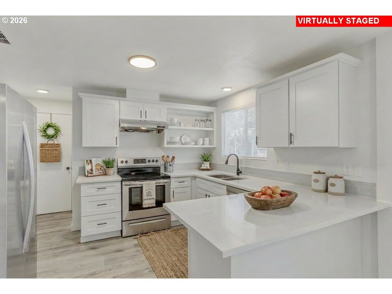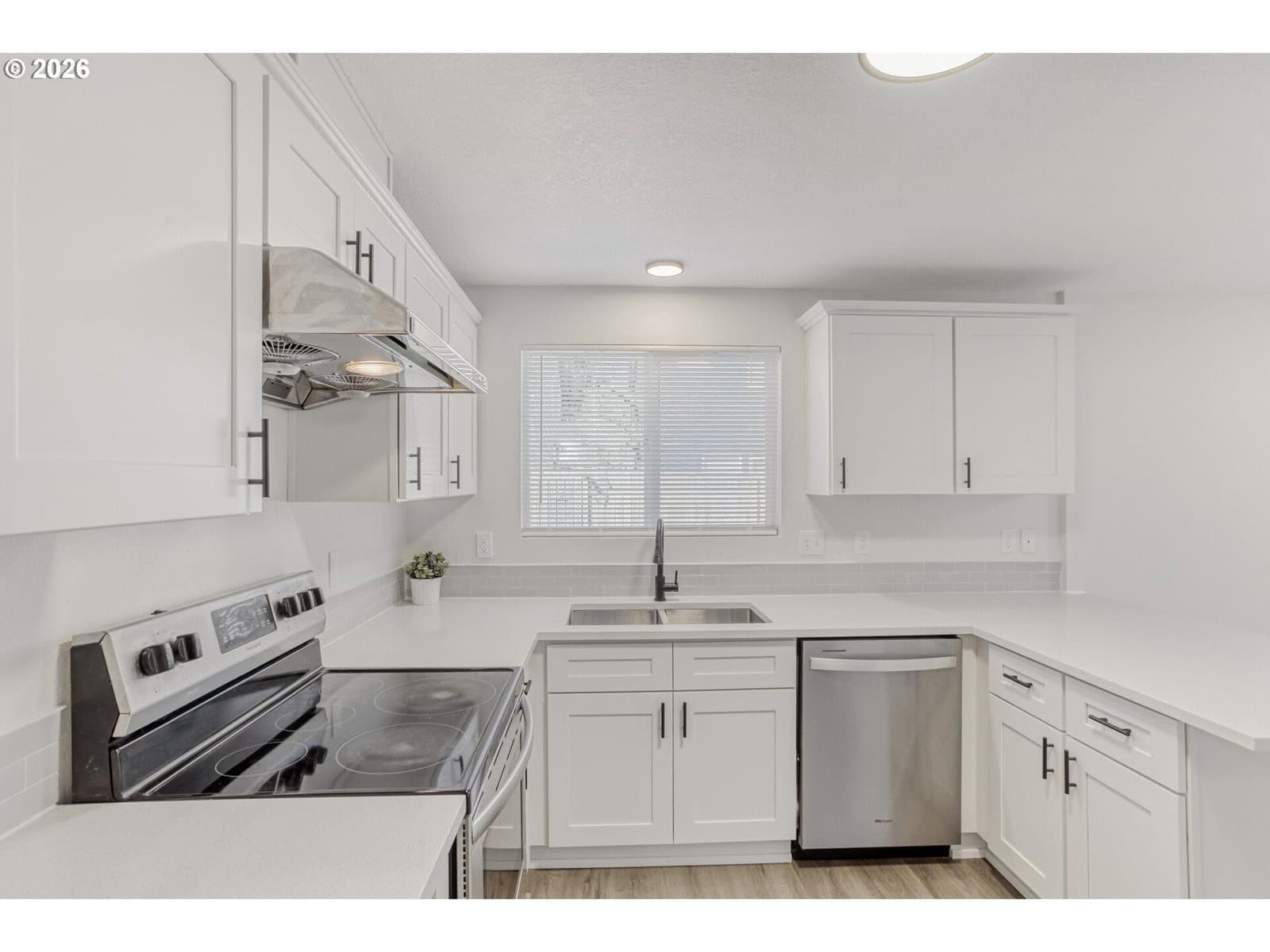 Welcome to a newly remodeled home where you can enjoy the sparkling finishes from day one. Step onto brand-new Luxury Vinyl Plank (LVP) flooring that flows throughout the main level. The open-concept living room has a gas fireplace, perfect for hosting friends and family. The kitchen offers both a small and large pantry with shelving, stainless steel appliances, a high-end range hood and has been completely remodeled to include: brand-new white cabinets, new sleek quartz countertops, a stunning new tile backsplash that pops, and a new under-mounted deep sink. Just off the kitchen is a half bathroom that shares the space with the laundry, and the washer and dryer both stay. Upstairs, comfort abounds with brand-new carpet throughout the three spacious bedrooms. The primary bedroom offers a true retreat with a window seat bathed in natural light, a huge walk-in closet, and en-suite bathroom with skylight. Every bathroom features new lighting and vanities topped with quartz. Attached is a two-car garage, and extra room for parking in the driveway. The fully fenced backyard is grassy and flat, and provides a blank canvas. You will have peace of mind for years to come knowing the expensive items are already handled:Roof: Replaced in 2017—solid and seasoned. Water Heater: Installed in 2017. Furnace: Installed in 2020. House Repipe: A complete re-pipe of the plumbing throughout the whole house, with a transferable warranty, completed in September 2025. Insulation: New insulation throughout the crawlspace completed in January 2026.
