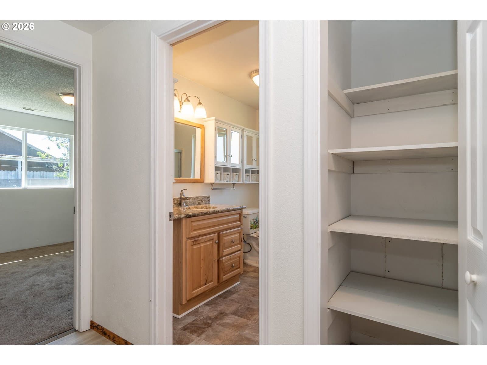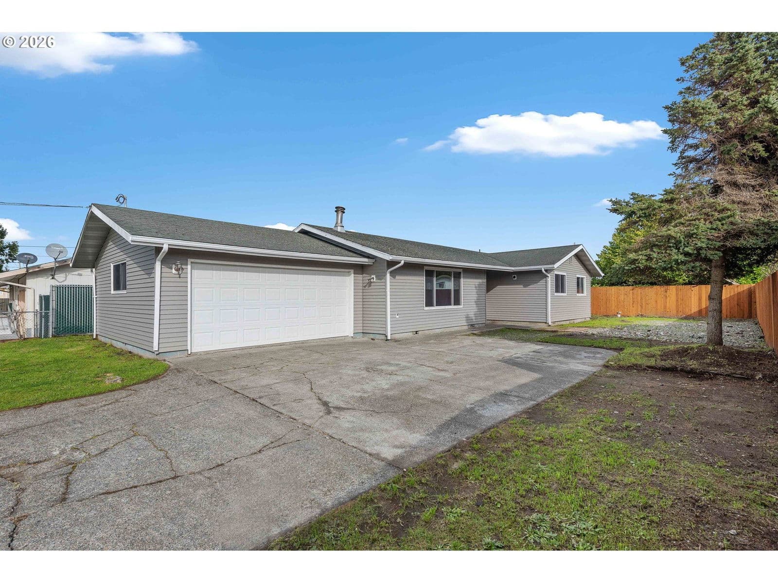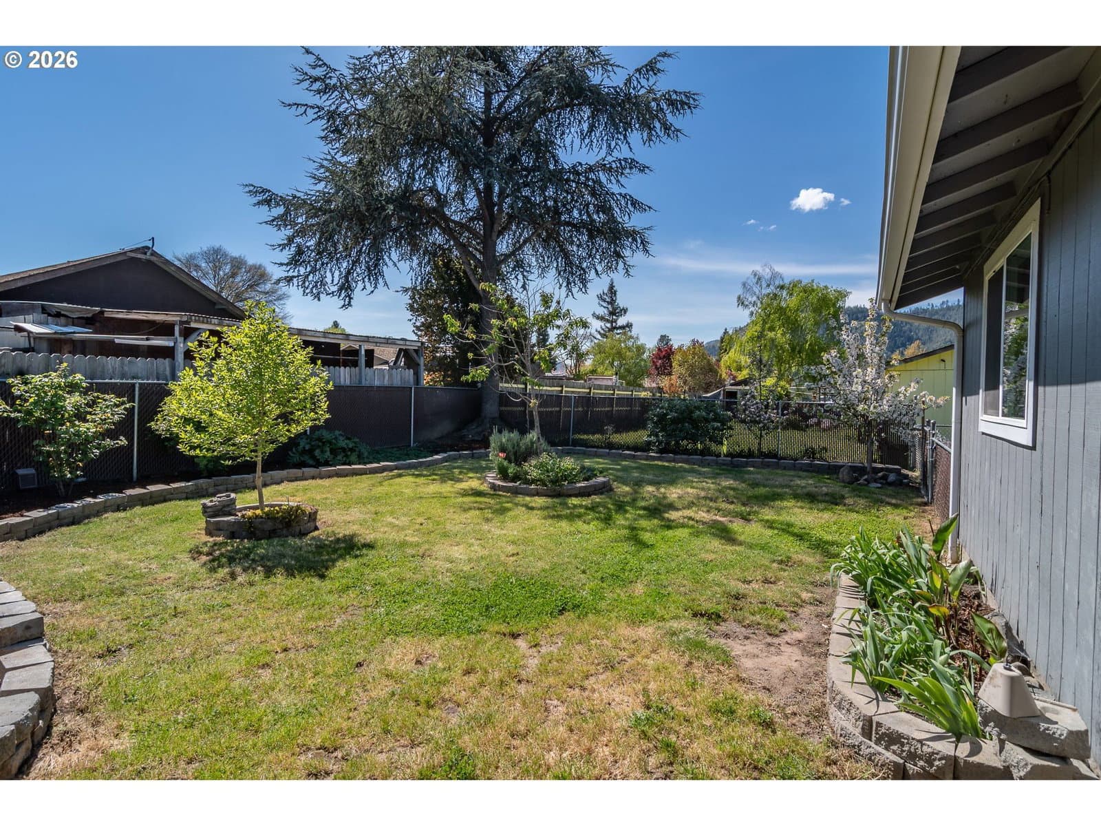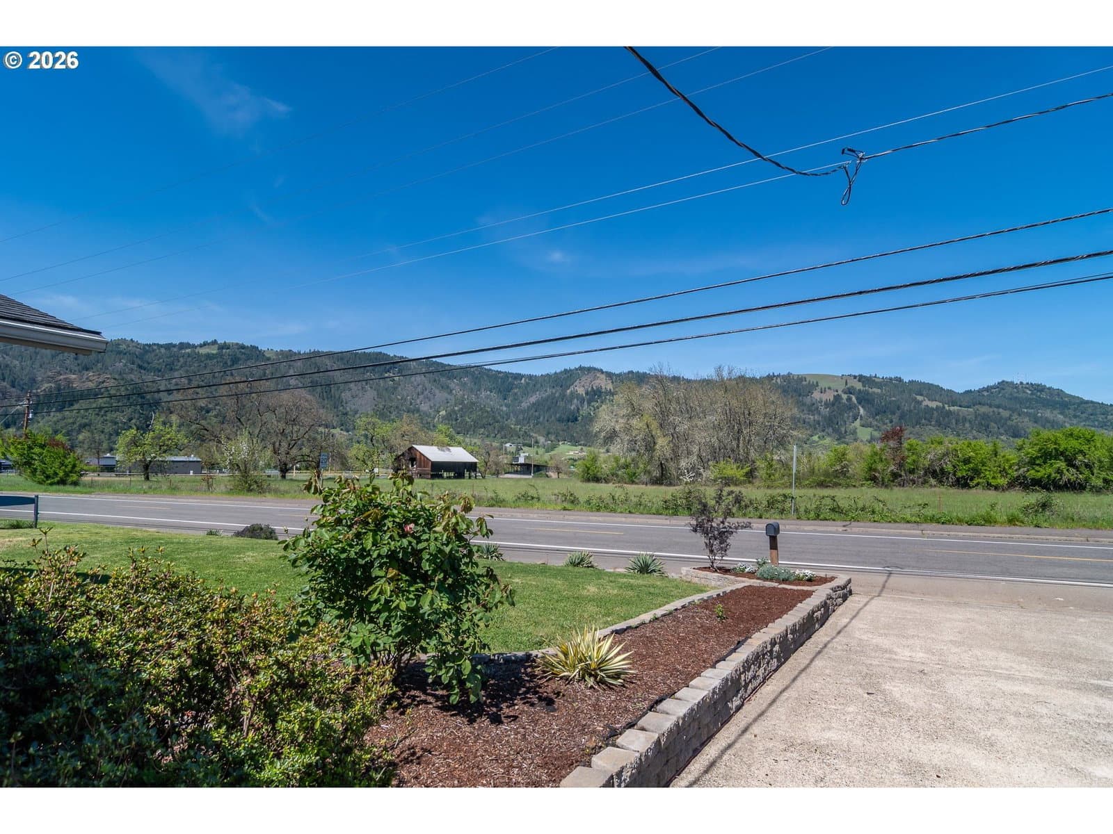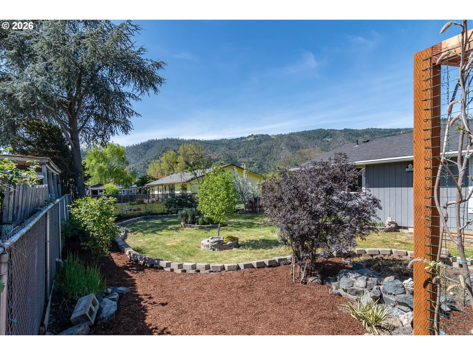 Beautifully maintained home on a spacious corner lot in an established Myrtle Creek neighborhood with mountain views, close-in amenities, and minutes to I-5. Inside, the home is filled with natural light and features double-pane vinyl windows throughout. The front entry opens to a large great room offering flexible living and family space, anchored by a cozy woodstove and complemented by ductless heating/cooling units throughout for efficient year-round comfort.The fully remodeled kitchen is a standout, featuring granite countertops, beautiful custom hardwood cabinetry, a cook island with glass-top stove, custom hood vent, double oven, stainless steel appliances, abundant storage, and a large pantry. The dining area offers a peek-a-boo opening to the living space, creating a wonderful balance of openness and separation. A bathroom with custom barn-style door adds charm and convenience. The home includes 3 bedrooms plus an attached exterior bedroom ideal for guests, extended family, office, or hobby use. Custom trim throughout completes this inviting and versatile home.Outside, the property continues to impress with well-landscaped front and back yards, fruit trees, gardening space, and a fully fenced backyard designed for privacy and enjoyment. The living room opens to a covered patio oasis featuring a porch swing, brick patio, fire pit area, and access to a an enclosed windowed hot tub room. A small fenced border creates excellent separation of space while opening to the expansive backyard beyond.