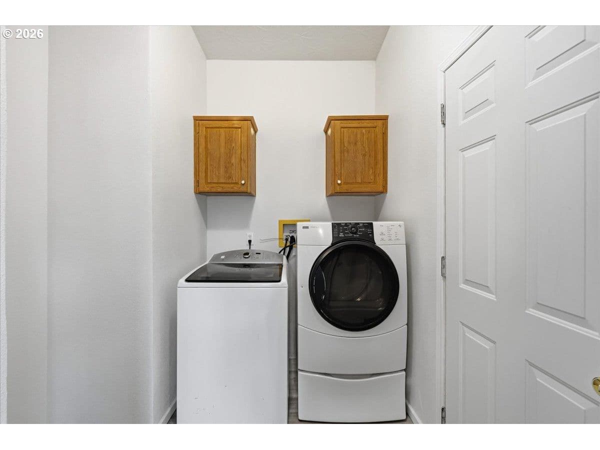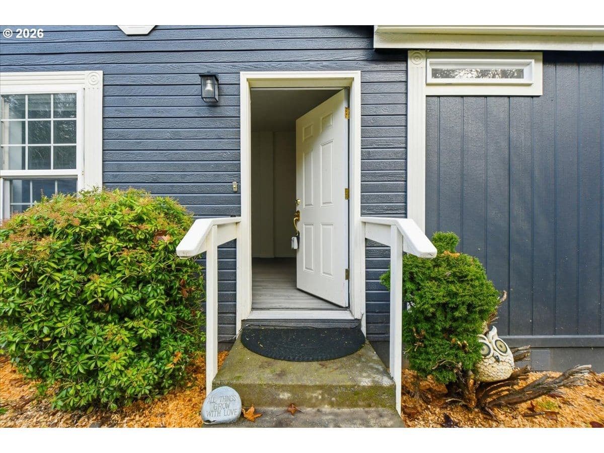 Desirable Ridgefield location just minutes to shopping, restaurants, Costco, and easy freeway access. This spacious ranch-style home, built in 1995 with recent updates, offers 3 bedrooms, 2 baths, and two bonus rooms providing flexible living space. Situated on a hard-to-find, nearly quarter-acre owned fenced lot—no space rent and no HOA dues. From the moment you enter, you’ll appreciate the open, spacious feel. The vaulted living room flows into the formal dining room and kitchen and features new laminate flooring. The light and bright kitchen offers a vaulted ceiling with skylight, abundant cabinet and counter space, a pantry, and a casual eating area. Updated stainless steel appliances are included, along with the refrigerator. The king-sized primary bedroom features newer laminate flooring and an ensuite bath with a soaking tub and separate shower. The conveniently located utility room includes storage cabinets and a washer and dryer are both included. The oversized, extra-deep two-car garage includes two bonus rooms—ideal for hobbies, a workshop, or flex space—or remove them to enjoy approximately 700 square feet of garage space. An additional parking pad provides extra parking. A wheelchair ramp from the garage to the home enhances accessibility. The private, fenced backyard includes a storage shed and ample room for gardening or outdoor activities. Backyard decks have covered outdoor enclosures for dogs or cats with access to pet doors inside the home. A quiet, low-traffic loop adds to the neighborhood’s privacy. Don't miss out on this great opportunity to call home. OPEN HOUSE TODAY (1/23) 3-5PM