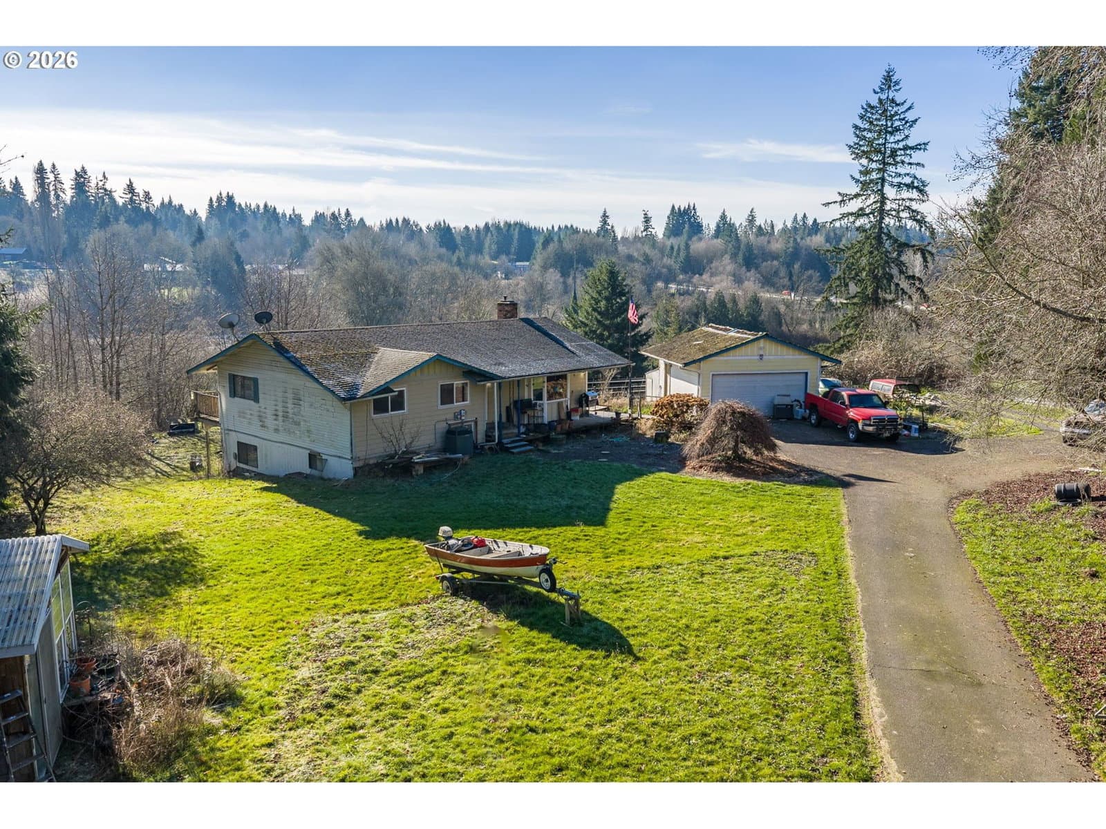 Private Acreage with Valley Views & Endless Potential. Set on 4.21 acres overlooking Salmon Creek below, this 2,508 sq ft home offers sweeping valley views and a peaceful, natural setting. Built in 1973, the property features 4 bedrooms and 2.5 bathrooms. The home is distressed and in need of TLC, offering an opportunity to restore and refresh over time. Outside, you’ll find a detached 2-car garage, huge 2160 sq. ft shop, greenhouse/studio, and solar panels, providing space and versatility rarely found together. With acreage, privacy, and scenic surroundings, this property offers a unique chance to enjoy country living with room to grow. The roof on the house is approx. 10 Years old. Cash or ReHab Loan ONLY! SEPTIC AND WELL INSPECTION COMPLETED AND PASSED!