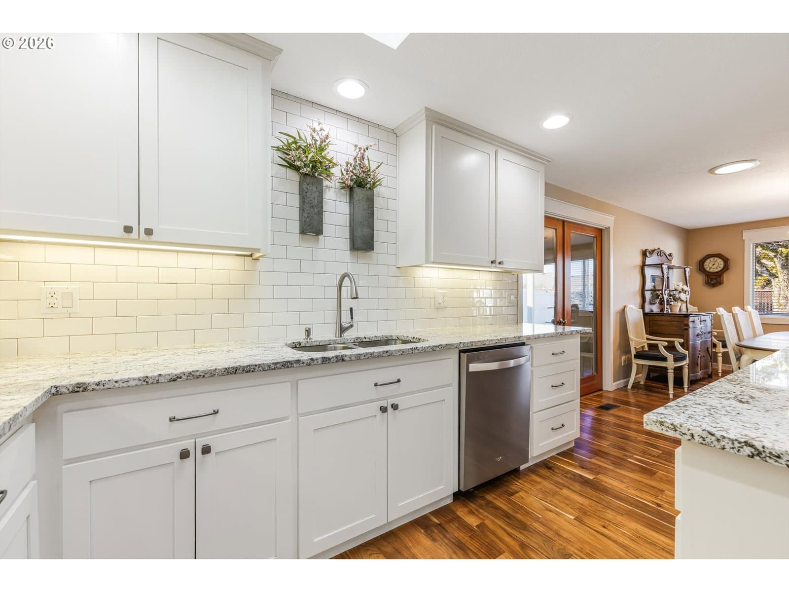 Welcome to easy living in this incredibly updated 2-bedroom, 2-bath, single level home in Woodburn Estates, a premier Golf & Country Club in Oregon's mid-Willamette Valley. The kitchen was fully remodeled in 2017 and features custom cabinetry, granite countertops, stainless steel appliances and a new layout that includes an oversized island. Beautiful acacia engineered hardwoods adorn the main living areas. Both bathrooms have been fully updated and were designed with accessibility in mind, including walk-in showers and wider door frames. The 2-car garage has an additional bump-out area perfect for parking your golf cart. A large and peaceful backyard with covered and open patio spaces make entertaining a breeze. Be sure to refer to the upgrades list for the many recent updates! Residents in this 55+ community enjoy an active and connected lifestyle with amenities including golf, pickleball, swimming pool, hot tub, fitness room, clubhouse events, social clubs and more. Come see why this could be home to your next chapter!