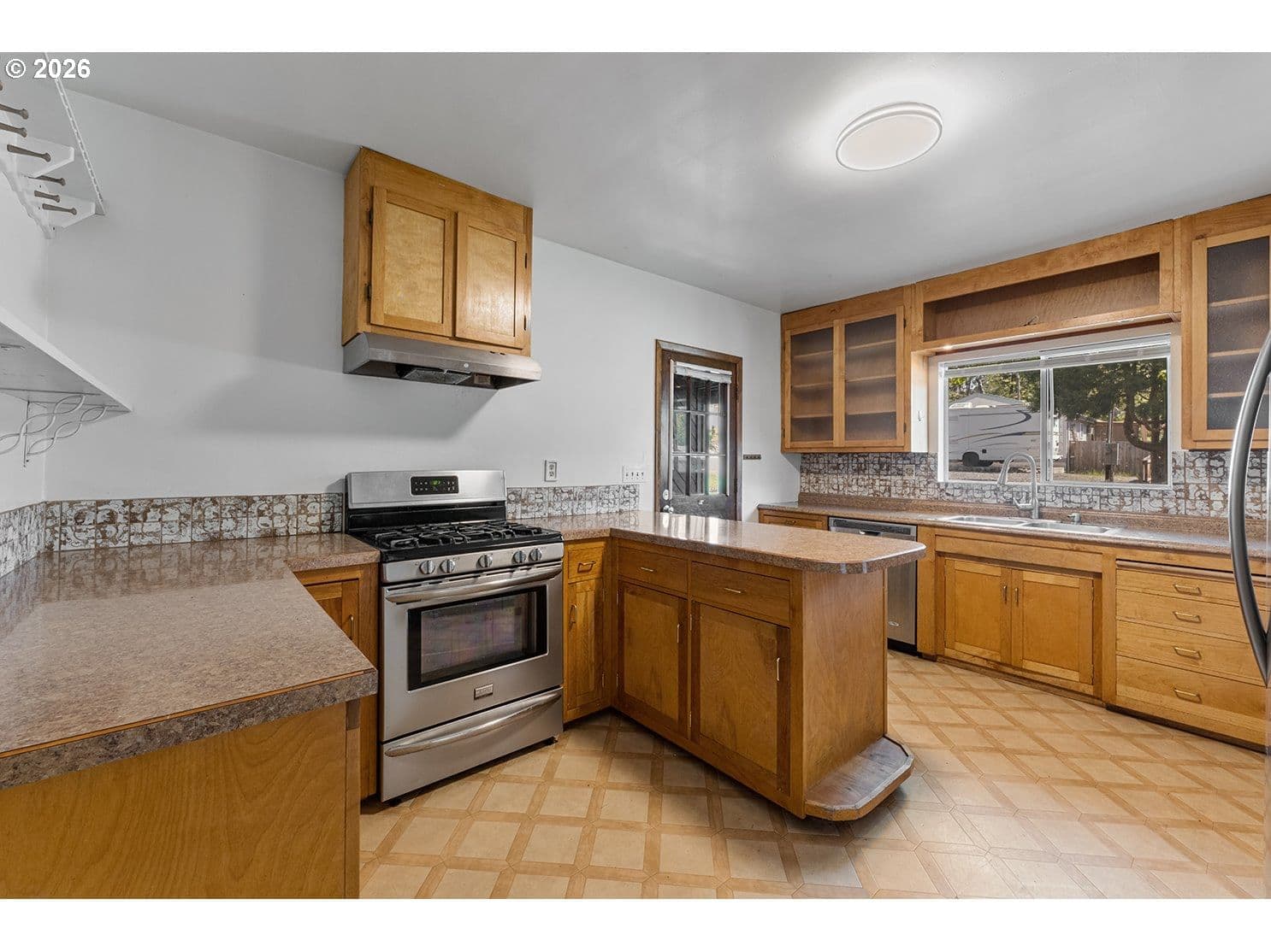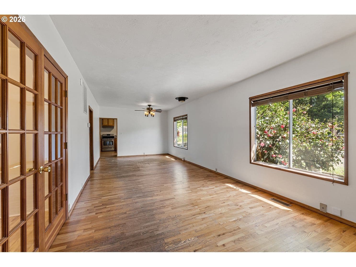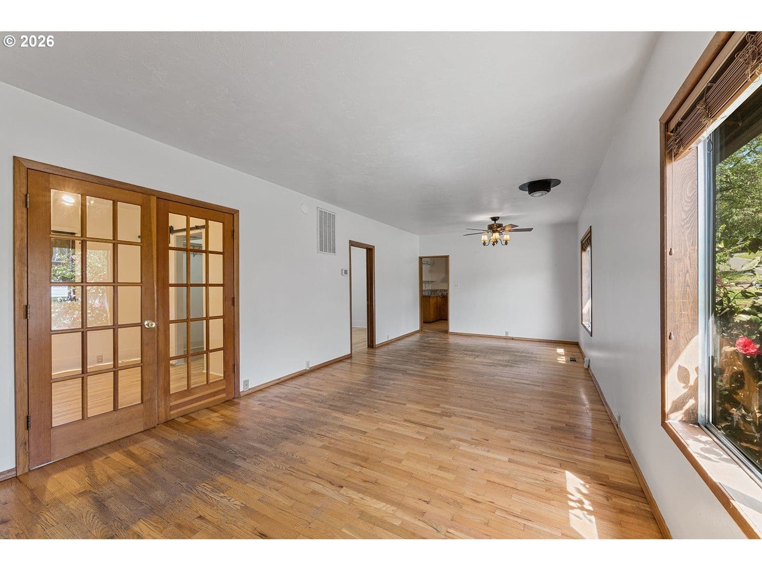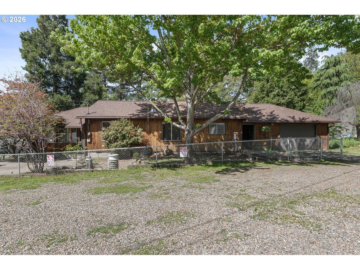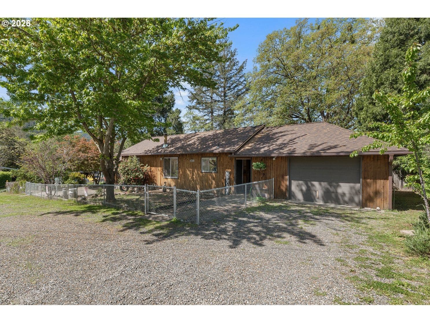 Discover this charming 1,300 sq. ft. home perfectly situated near downtown Gold Hill. This 2-bedroom, 1-bath residence features an expansive living and dining area highlighted by original oak flooring and large windows that bathe the interior in natural light. The spacious kitchen is equipped with a gas range, stainless steel appliances, and a dedicated pantry.A versatile bonus room provides the perfect space for a family room or an optional third bedroom. Major recent upgrades offer peace of mind, including a new 50-year roof and gutters (2026), a new fence, updated ventilation, new interior paint. Complete with an oversized one-car garage featuring a built-in workshop and cabinetry, this home is an exceptional value for first-time buyers and investors alike.