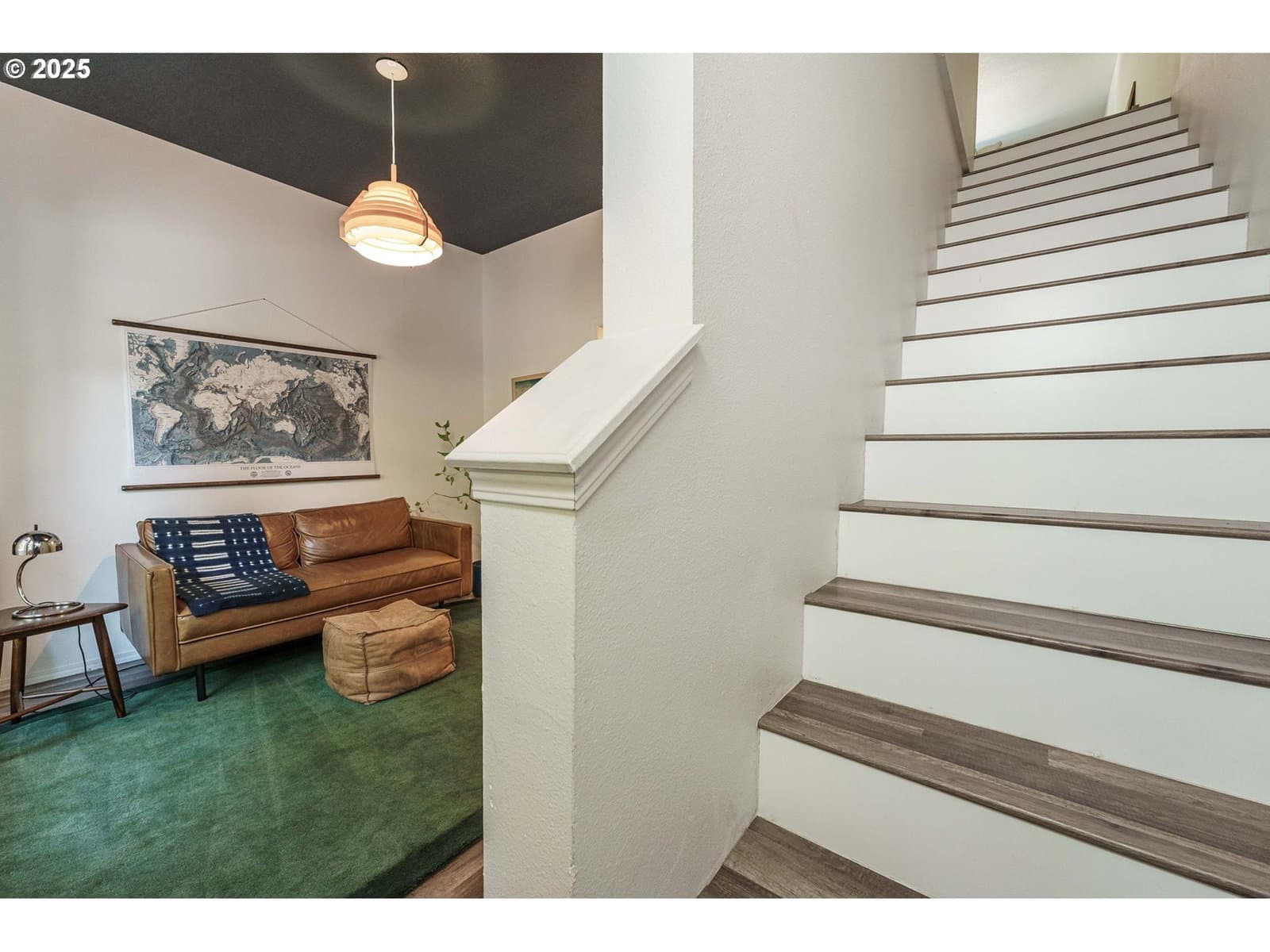 GREAT VALUE...Discover the perfect blend of style, flexibility, and convenience in Townhome-style three story condo with private entrance, garage, and balcony. This 2-bedroom, 3-bath townhouse with a versatile bonus den/office. Just steps from Cathedral Park and the vibrant shops and eateries of St. Johns, this home puts you at the center of one of Portland’s most beloved neighborhoods.On the entry level, a bright den with soaring ceilings and a full bath offers endless options—ideal for a home office, private guest suite, or creative studio. Brand-new luxury vinyl plank flooring adds a modern touch.The main floor welcomes you with an airy open layout, cozy gas fireplace, and large windows that flood the space with natural light. The spacious kitchen boasts abundant counter space and cabinetry, flowing seamlessly into the dining area. Step outside to your private deck and take in sweeping territorial views of the iconic St. Johns Bridge and the lush expanse of Forest Park—the perfect setting for morning coffee, evening wine, or summer barbecues. [Home Energy Score = 8. HES Report at https://rpt.greenbuildingregistry.com/hes/OR10010522] no rental cap, pet friendly policies Cats, dogs, birds up to 2 each
