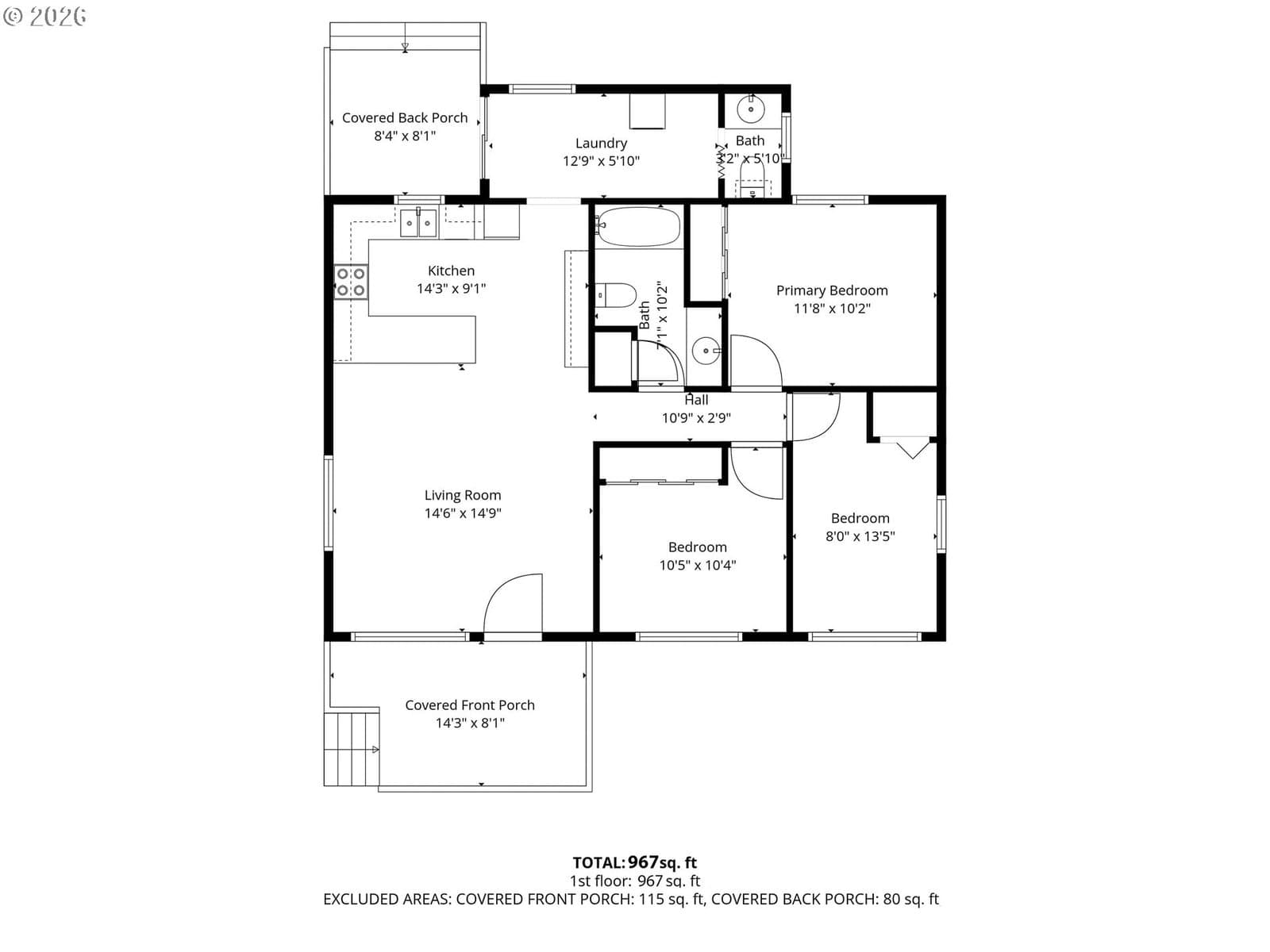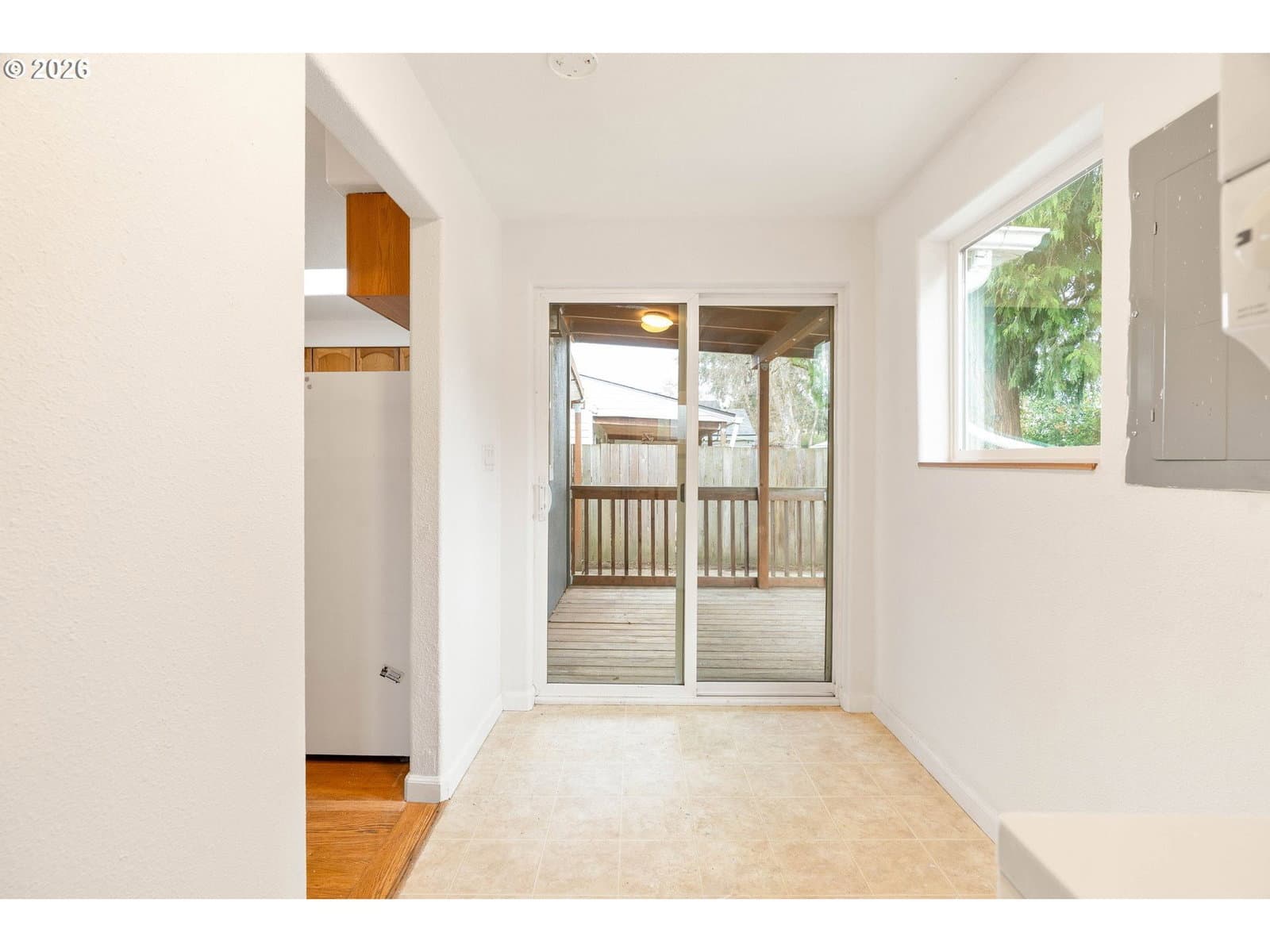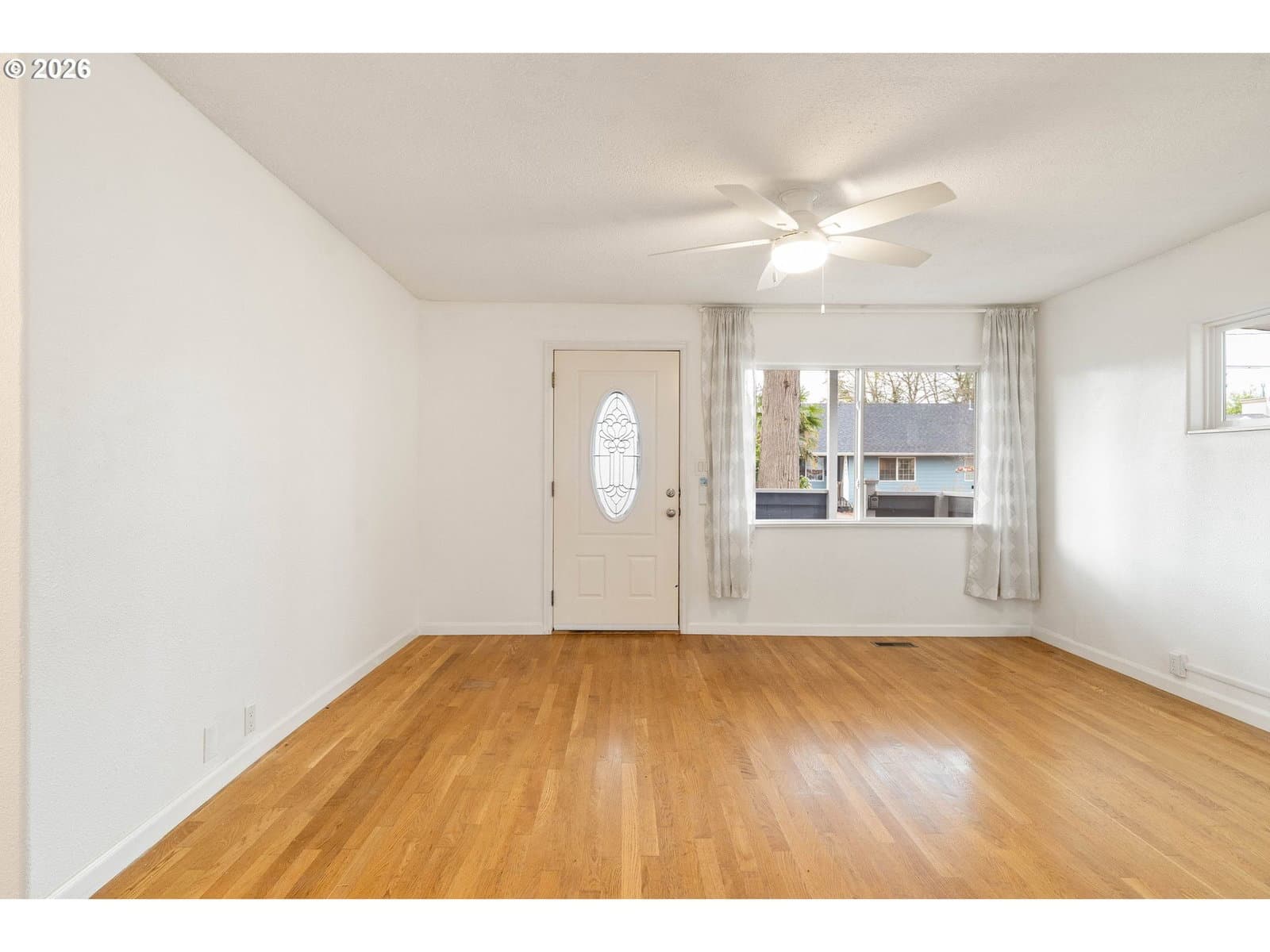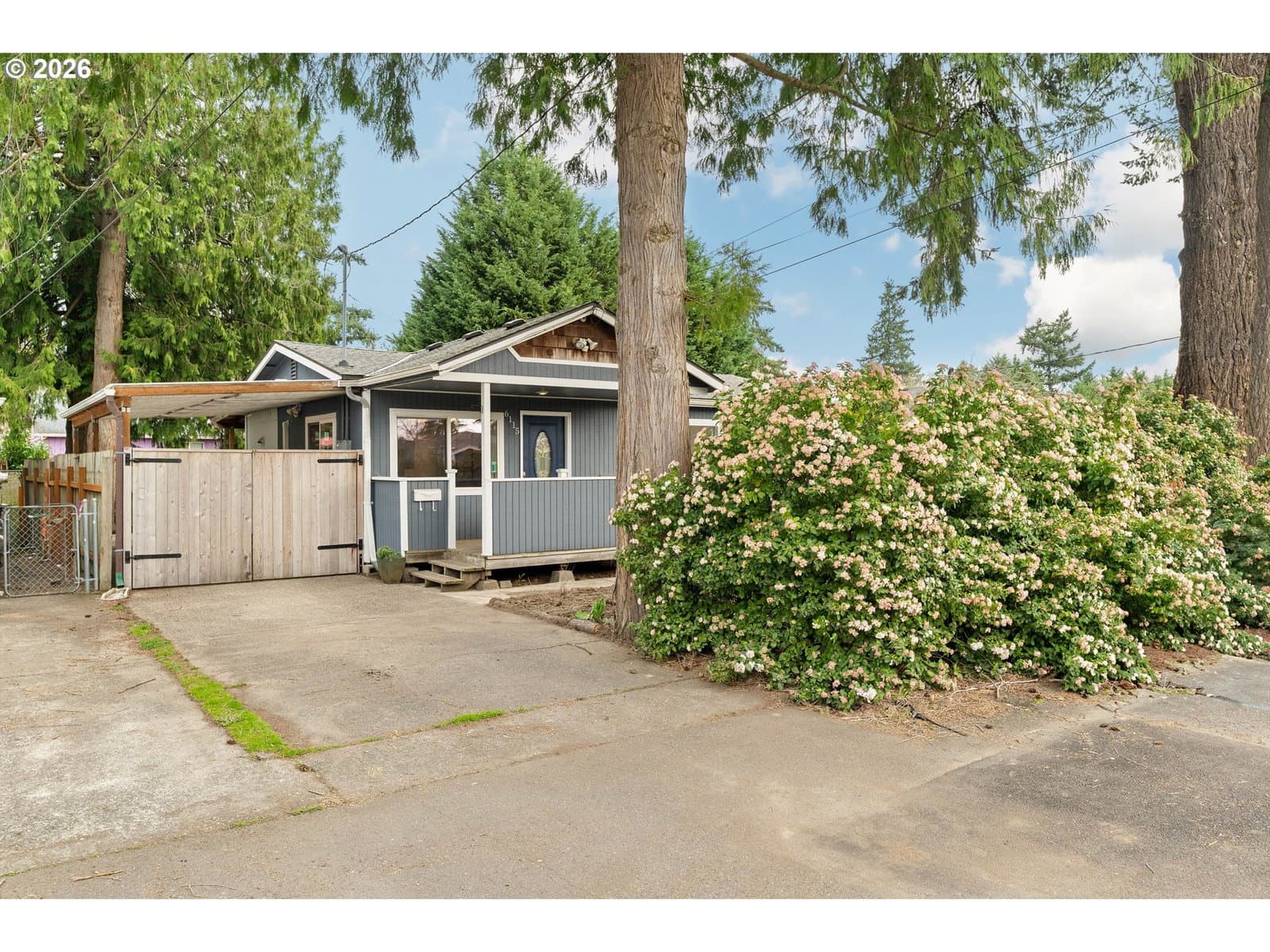 This 1942 Brentwood Darlington Ranch offers a functional layout and a mix of original character and practical updates. Hardwood floors run through the main living areas and the open floor plan provides good flow between the living room and kitchen. The kitchen includes butcher block counters, a dishwasher, disposal and a skylight for added natural light. All three bedrooms feature newer cork flooring. A separate laundry room has a sliding door leading to a fully fenced backyard. The outdoor space includes raised garden beds, mature cedar trees and fruit trees, offering both privacy and room to garden or relax. Located near Brentwood City Park, TriMet and the Woodstock neighborhood, with easy access to shops, parks and everyday amenities. [Home Energy Score = 8. HES Report at https://rpt.greenbuildingregistry.com/hes/OR10245896]