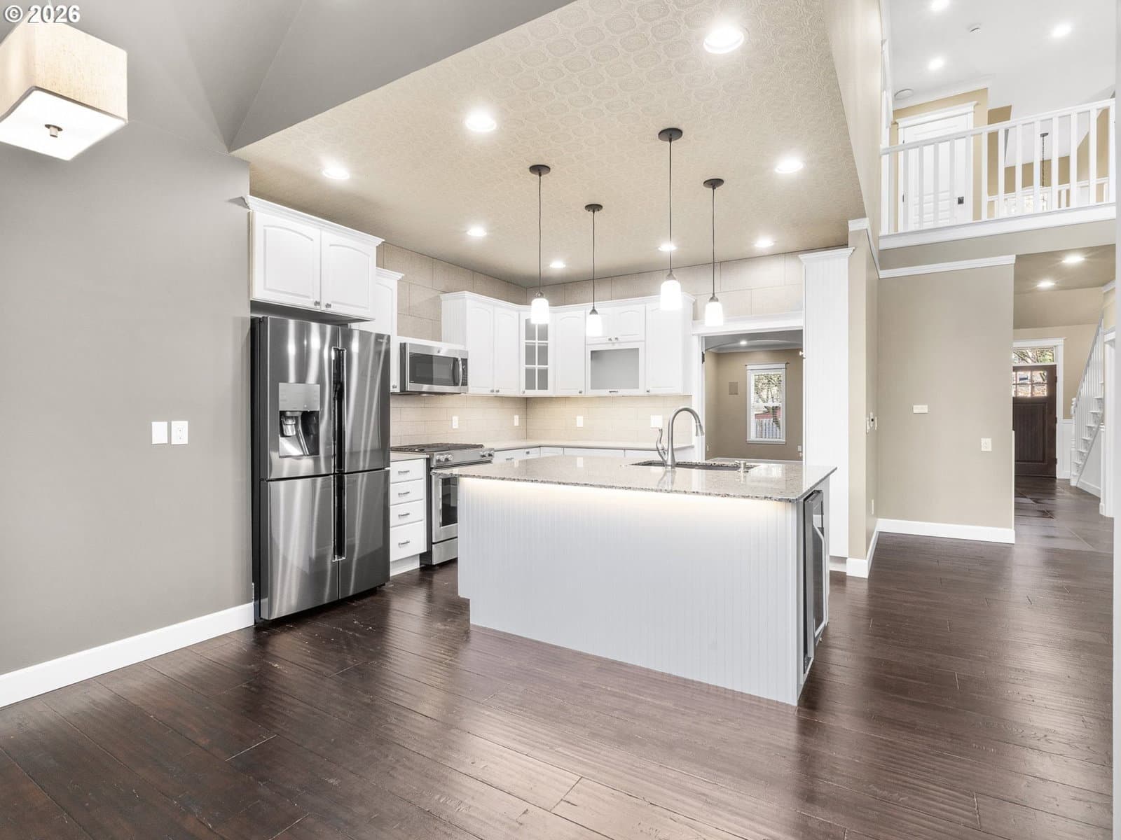 Hello from NE Going Street! I’m a meticulously maintained Storybook English–inspired home, set quietly back from the street and accessed by a private drive, offering privacy on a generous 10,000 square foot lot. With 2,764 square feet across two levels, I support long-term living, work-from-home needs, and flexible lifestyles. A highly desirable feature, I offer a true primary suite on the main level for single-level living if desired. This retreat includes a fully tiled walk-in shower, walk-in closet, and nearby half bath. A centrally located full laundry room with built-in cabinetry adds everyday convenience. My kitchen features stainless steel appliances, a gas range, generous cabinetry, and a large island with eat bar, complemented by both a casual dining nook and a separate formal dining area. Toward the back of the home, the family room opens with high vaulted ceilings for a true great room feel, anchored by a gas fireplace and enhanced by an integrated sound system, ideal for everyday living and entertaining. Upstairs are three additional bedrooms and one full bathroom, offering flexibility for guests, home offices, or hobbies. I’ve been refreshed with new interior paint, updated lighting, new electrical, Ecobee smart thermostat, and a recently refreshed exterior fence stain, reinforcing my move-in-ready condition. Outdoor living stands out with an expansive deck, a fully enclosed three-season patio with heater, oscillating fan, and adjustable lighting, and a three-year-old Clearwater spa included. The yard is designed for low-maintenance living with stamped concrete, composite decking, synthetic turf, and a separate storage shed. I also offer an oversized attached two-car garage with built-ins and RV parking or potential ADU space, buyer to verify. Thoughtfully updated, meticulously maintained, and intentionally priced to reflect location while delivering exceptional overall value, I’m ready to welcome you home. [Home Energy Score = 5. HES Report at https://rpt.greenbuildingregistry.com/hes/OR10237653]