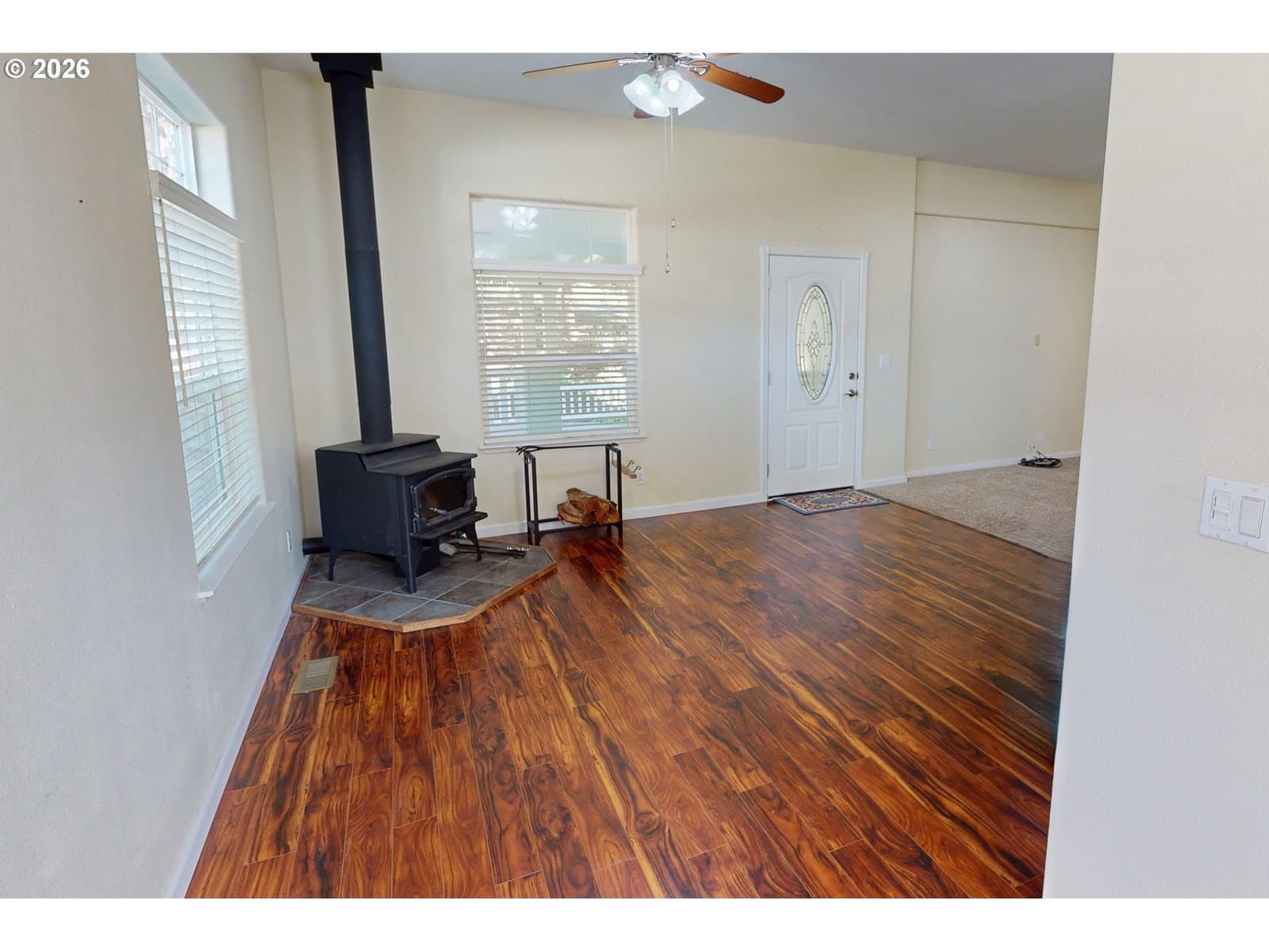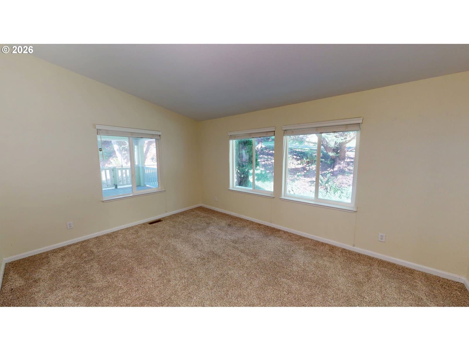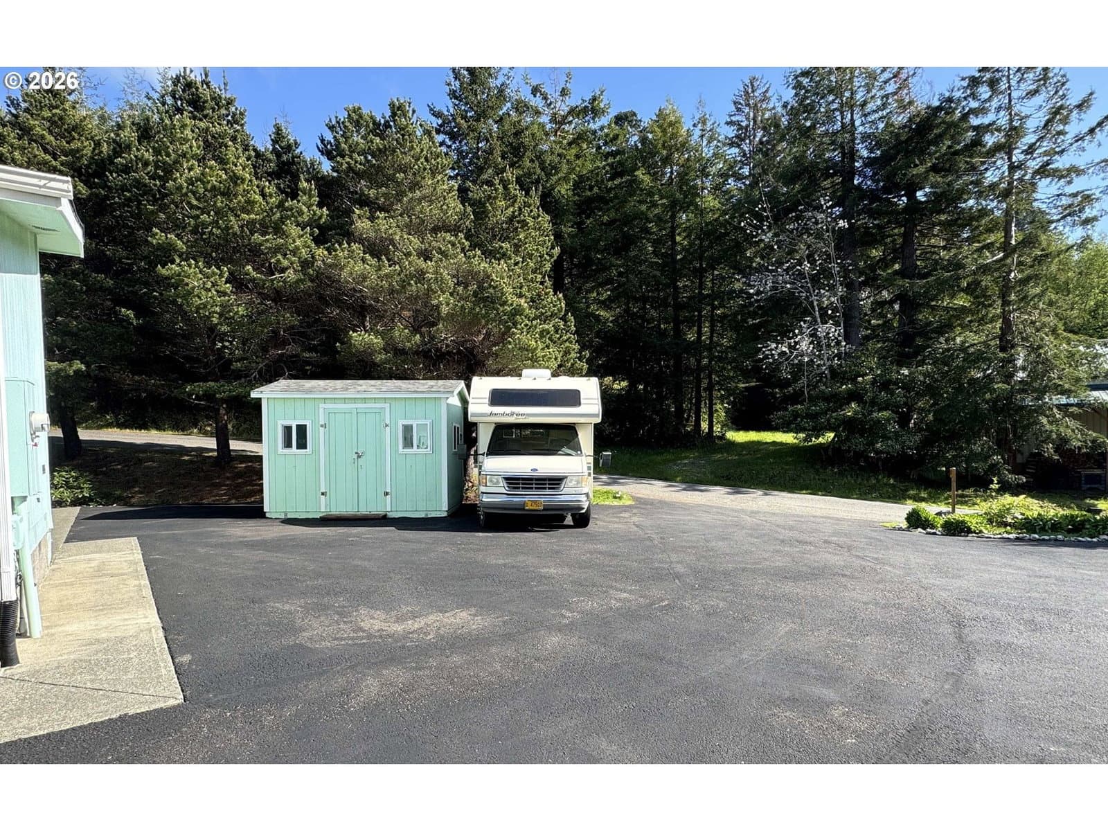 ROOM GALORE!! Discover comfortable living and abundant versatility with this TRIPLEWIDE home. Located in desirable Melody Lane Estates, this home is part of a friendly park with a quiet neighborhood environment. Enjoy the privacy of living across from an expansive forested area and having a fenced backyard / garden bordered by mature landscaping. Privacy extends to the sizable covered front porch accessed by a sidewalk with a built-in ramp. Two spacious primary bedrooms have roomy ensuites and extra-large closets. The larger primary boasts a double door and entry area while the second bedroom affords further privacy and convenience of an exterior door – perfect for company. Both ensuites have double sinks and additional natural light from solar tubes; one bathroom offers a walk-in shower while the other has a tub-shower combo. In the open kitchen you’ll find generous cabinet space, a pantry, and an eat bar as well as ample natural light. Enjoy morning coffee in the breakfast nook and meals around the table in the adjacent dining area. An expansive living room can easily accommodate comfortable seating arrangements for entertaining, and a Lopi woodstove offers extra warmth on chilly evenings. Off the living room is a third room that can be used as an office, hobby room, or third bedroom since an extensive closet is just outside the door. Further adding to the home’s comfort and convenience are ceiling fans throughout and a half bath off the laundry room. The attached two-car garage has extra space for work areas, and additional storage is available in the 8x12 shed situated at the edge of the spacious asphalt parking area. Monthly lot rent is currently $479, and homeowners pay their own utilities. Buyer must be approved by the park. Don’t miss out of this rare opportunity to own a triplewide in an attractive park near world-class fishing and beautiful Southern Oregon beaches. Call today to schedule a tour!
