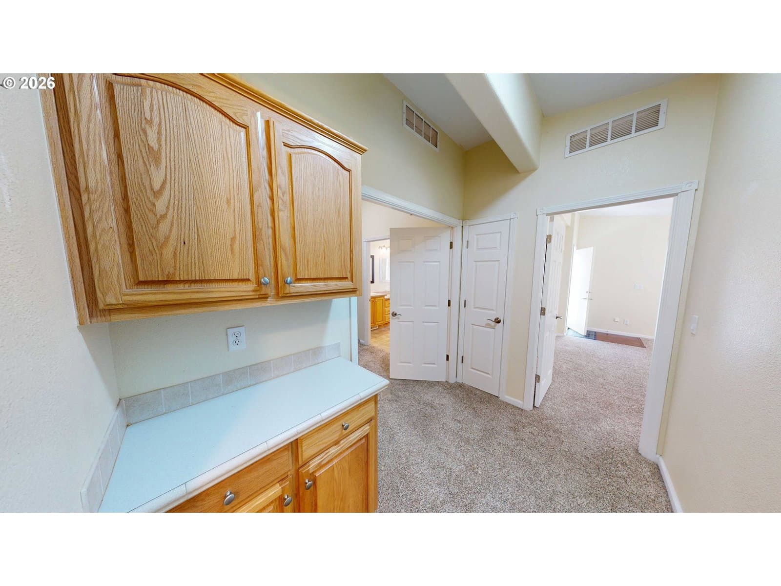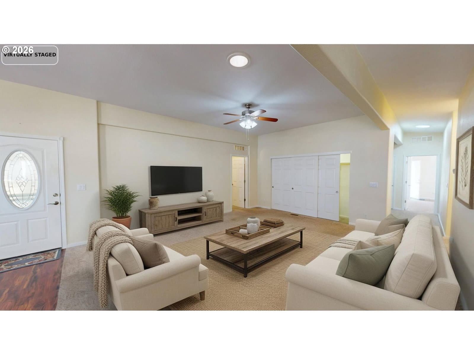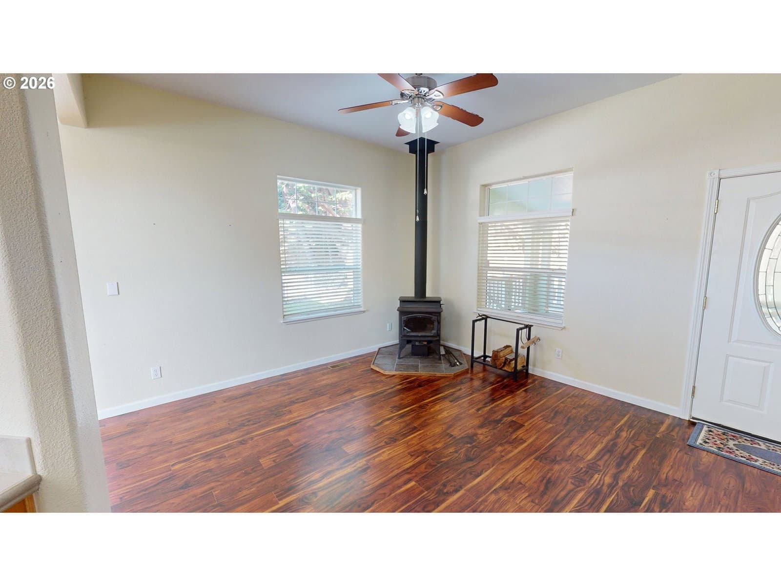 ROOM GALORE!! Discover comfortable living and abundant versatility with this TRIPLEWIDE home. Located in desirable Melody Lane Estates, this home is part of a friendly park with a quiet neighborhood environment. Enjoy the privacy of living across from an expansive forested area and having a fenced backyard / garden bordered by mature landscaping. Privacy extends to the sizable covered front porch accessed by a sidewalk with a built-in ramp. Two spacious primary bedrooms have roomy ensuites and extra-large closets. The larger primary boasts a double door and entry area while the second bedroom affords further privacy and convenience of an exterior door – perfect for company. Both ensuites have double sinks and additional natural light from solar tubes; one bathroom offers a walk-in shower while the other has a tub-shower combo. In the open kitchen you’ll find generous cabinet space, a pantry, and an eat bar as well as ample natural light. Enjoy morning coffee in the breakfast nook and meals around the table in the adjacent dining area. An expansive living room can easily accommodate comfortable seating arrangements for entertaining, and a Lopi woodstove offers extra warmth on chilly evenings. Off the living room is a third room that can be used as an office, hobby room, or third bedroom since an extensive closet is just outside the door. Further adding to the home’s comfort and convenience are ceiling fans throughout and a half bath off the laundry room. The attached two-car garage has extra space for work areas, and additional storage is available in the 8x12 shed situated at the edge of the spacious asphalt parking area. Monthly lot rent is currently $479, and homeowners pay their own utilities. Buyer must be approved by the park. Don’t miss out of this rare opportunity to own a triplewide in an attractive park near world-class fishing and beautiful Southern Oregon beaches. Call today to schedule a tour!