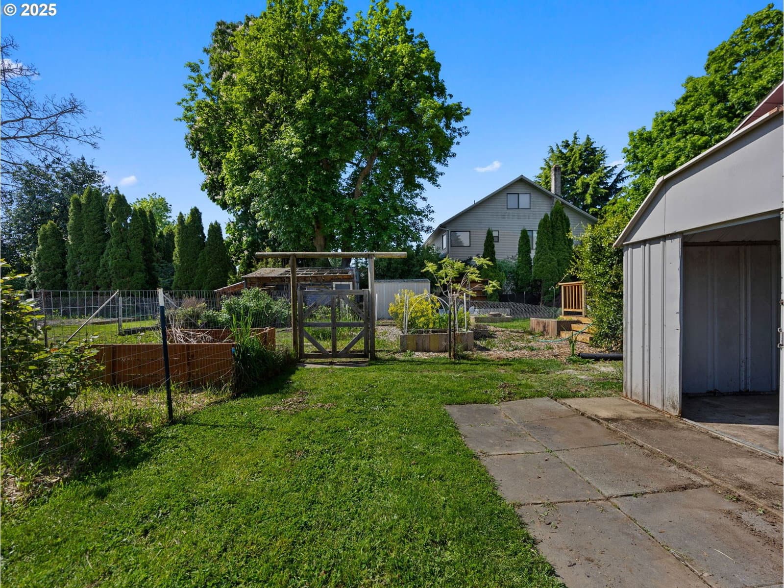 Step onto the wide covered porch of this classic 1913 Craftsman in Woodburn’s historic district and discover timeless charm blended with smart updates. Original wood floors, built-ins, and a pass-through from the kitchen to the living room add warmth and functionality, while a secret upstairs room offers a fun twist. The 4-bedroom, 1.1-bath layout includes a half bath off the primary, skylight, solar tubes, and ceiling fan for year-round comfort. Mature landscaping surrounds both covered and uncovered portions of the expansive deck—ideal for entertaining or relaxing.