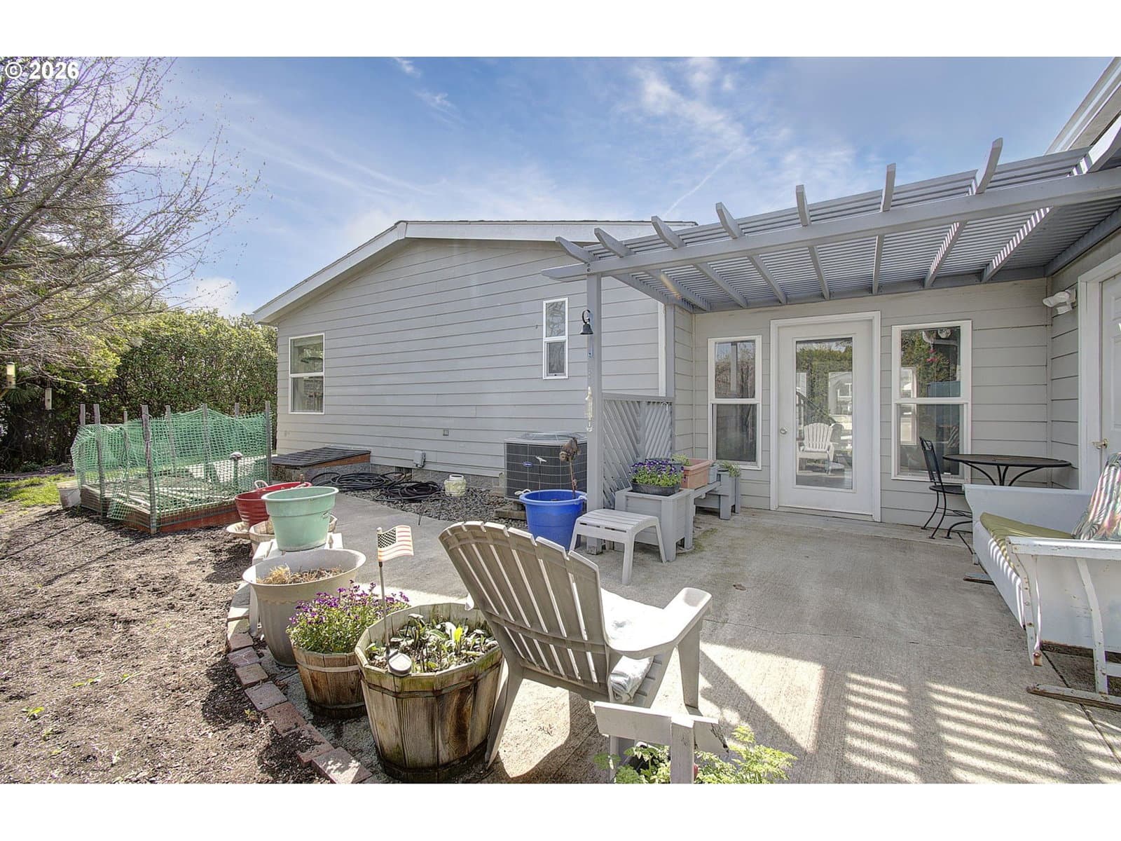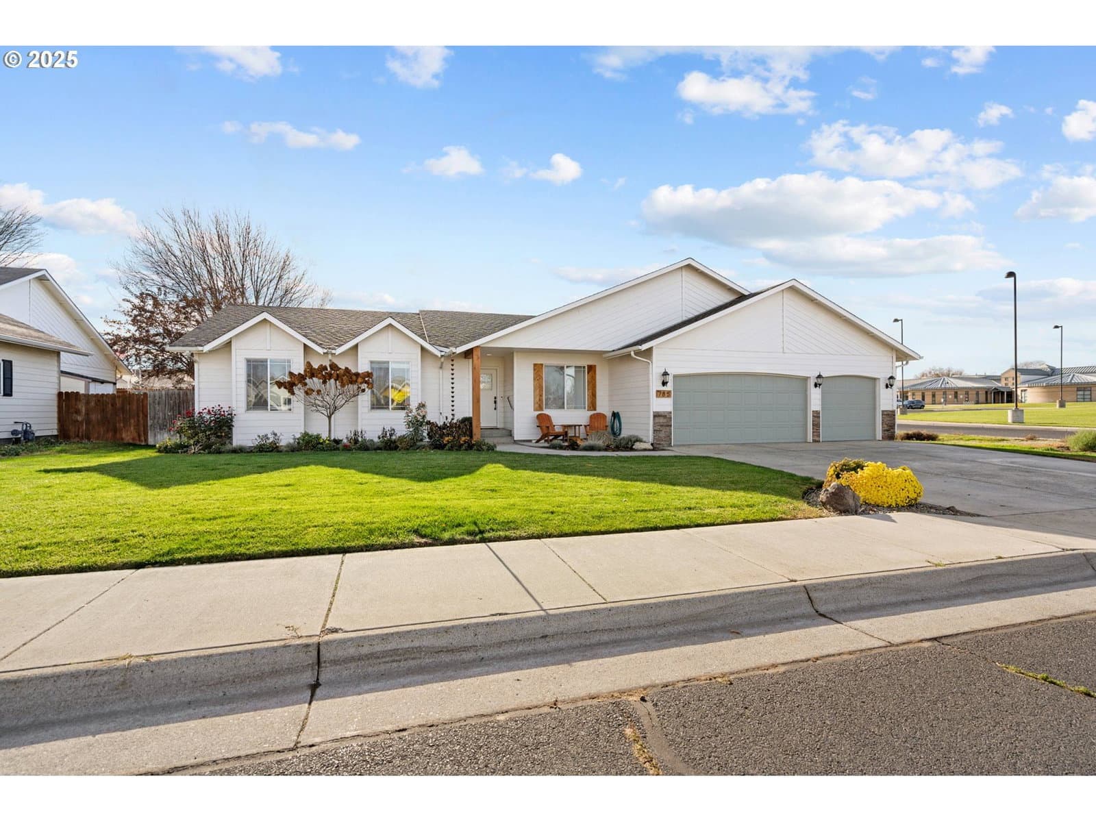Immaculate 2005 MH home in the heart of Wasco, OR situated on two tax lots offering space, privacy, and versatility! This well-maintained property features a 2-car garage, covered outdoor sitting area perfect for year-round enjoyment, and a powered shed complete with electricity and sink—ideal for hobbies, projects, or extra workspace. The beautifully groomed yard is framed by trees providing seclusion and privacy. Inside, you’ll find three spacious bedrooms and two bathrooms, along with a comfortable living room, formal dining room, and separate family room offering flexible living options. The kitchen is well-appointed with a pantry, double sinks, island, eating bar, and all appliances included—washer and dryer too! Stay comfortable year-round with A/C. Pride of ownership shines throughout—don’t miss this one!
