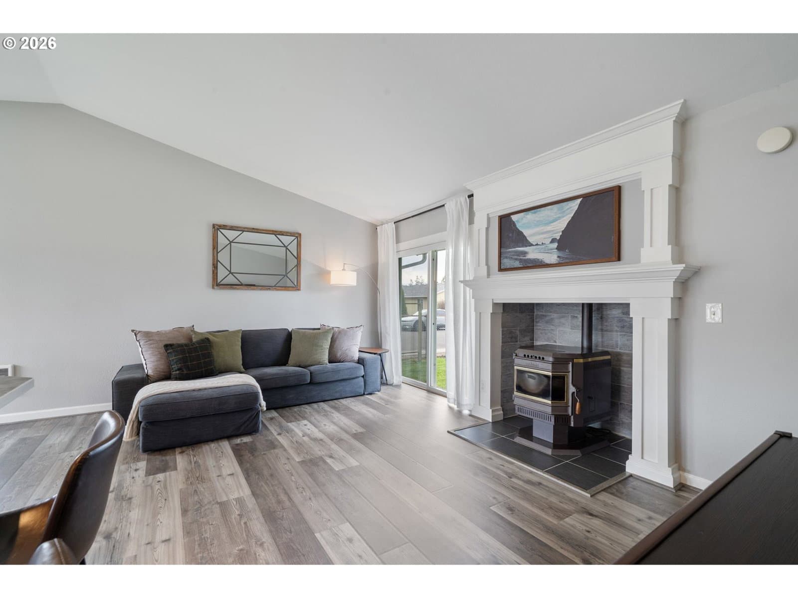 Modern Comfort Meets Coastal Convenience! This beautifully remodeled 3 bedroom, 2 full bath gem featuring a unique floor plan full of character & charm! Step inside to vaulted ceilings and inviting open concept living space designed for both comfort & entertaining. The stunning modern kitchen showcases stainless appliances, updated flooring, a stylish neutral palette and a spacious breakfast bar island that flows seamlessly into the living area - perfect for gatherings. The spacious primary suite offers a private retreat complete with a full en-suite bath. Two additional bedrooms provide flexibility for family, guests or home office. Enjoy the convenience of an attached garage plus fenced backyard that is ideal for pets, play or weekend barbecues. Situated on corner lot in a quiet cul-de-sac, this home offers added privacy and curb appeal. Located by schools, everyday amenities and just 8 miles to the beaches. You'll love the perfect blend of neighborhood living and coastal access. This one has it all and is move-in ready! Check out the photos and video here too!