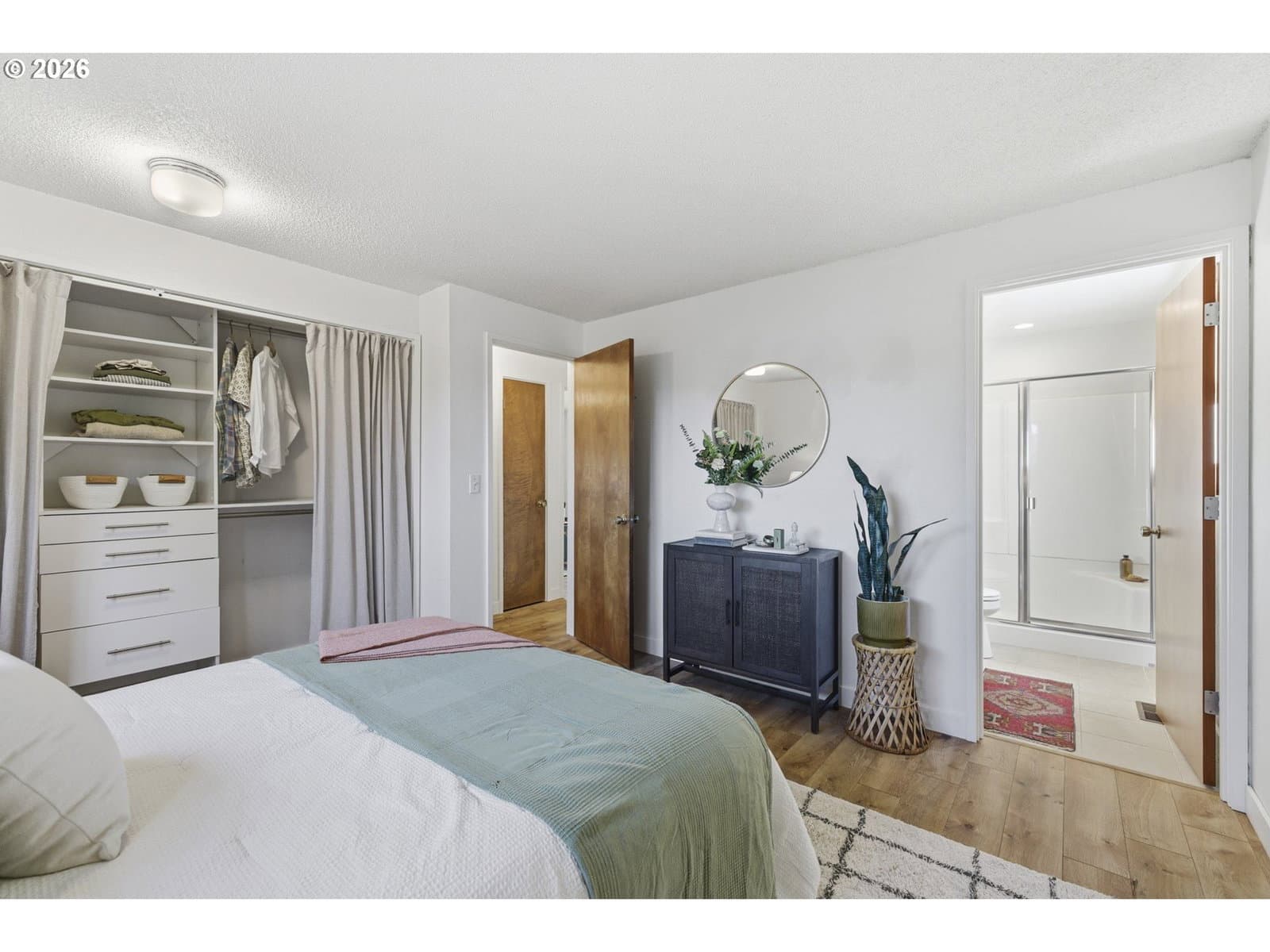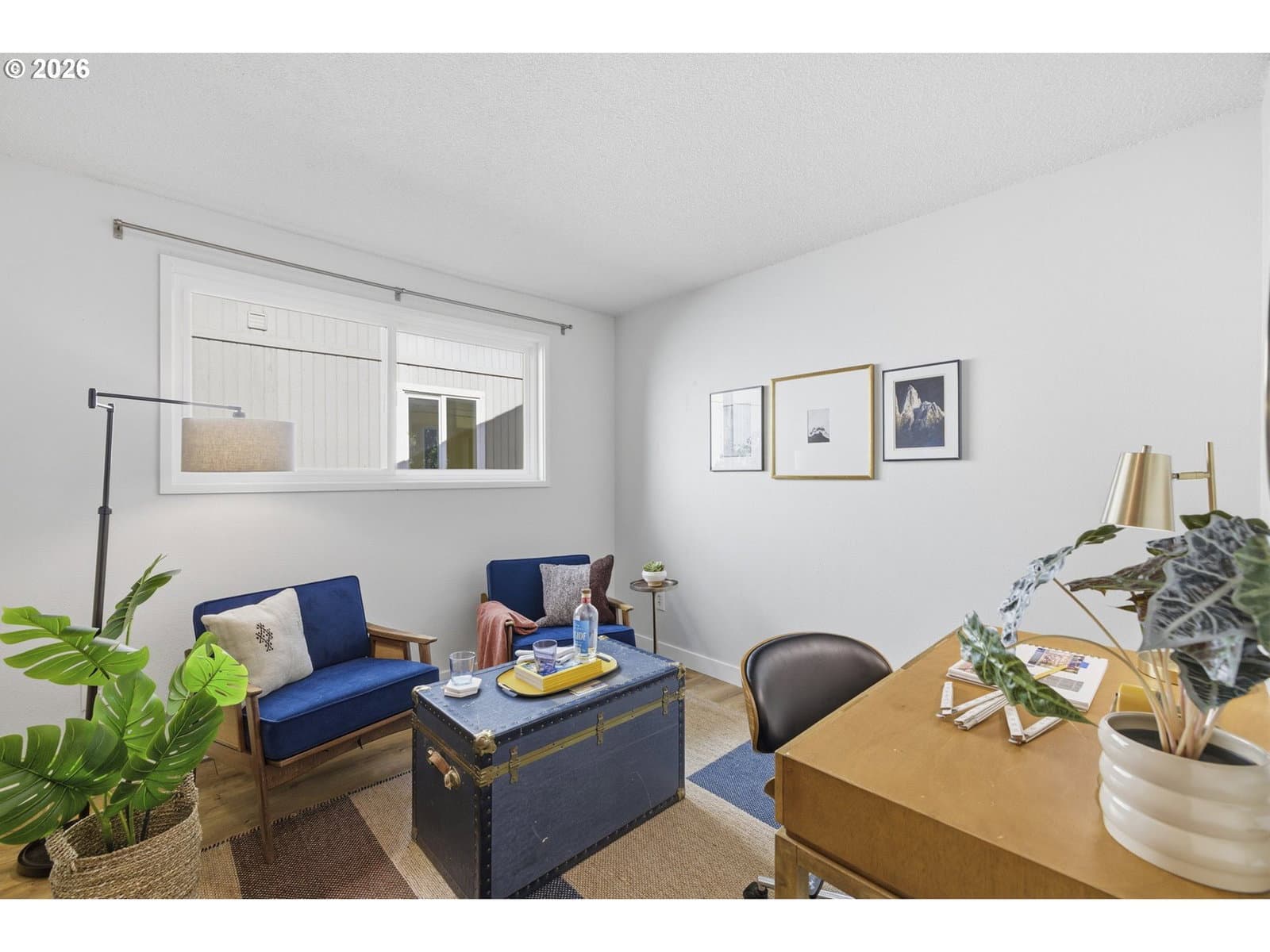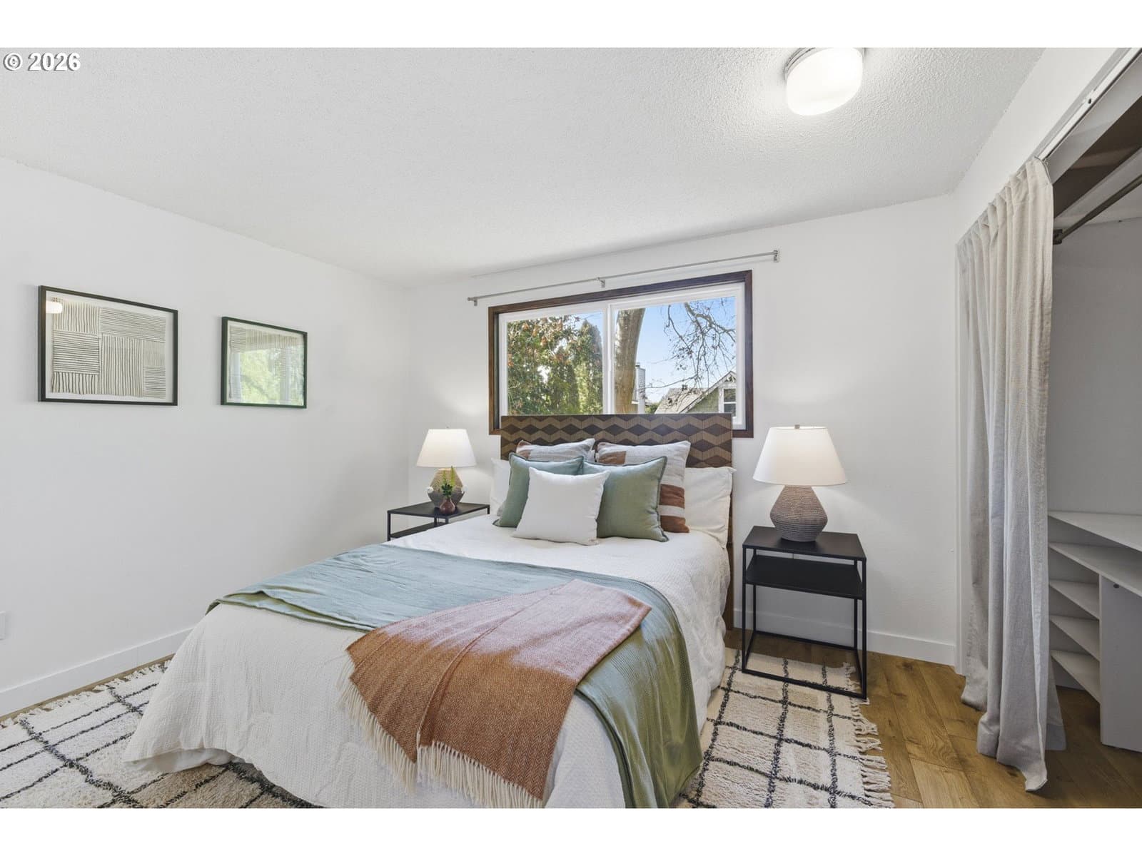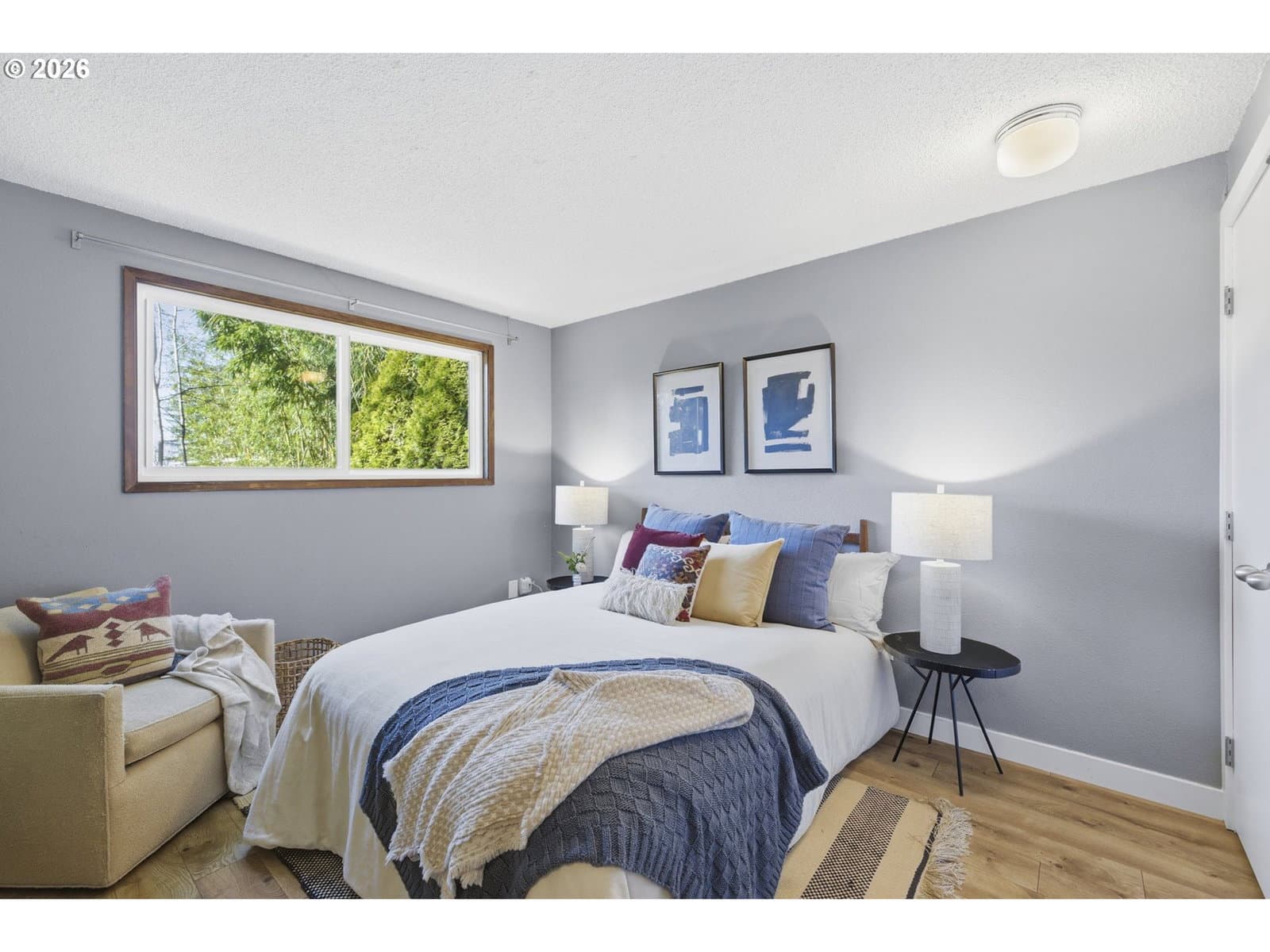 This thoughtfully updated 1979 ranch blends classic one-level living with standout curb appeal and modern upgrades. The home welcomes you with a charming front deck, beautifully planted yard, and a unique vestibule-style entry that sets it apart. Inside, the spacious living room features vaulted ceilings and a wood-burning fireplace, creating a warm and inviting space filled with natural light. The home offers 3 bedrooms and 2 bathrooms, including an ensuite primary, all on a highly accessible single level—ideal for easy, everyday living. The beautifully updated kitchen opens seamlessly to the light and bright dining area, where French doors lead to the back deck, creating a natural flow for entertaining or enjoying the private backyard. Fun architectural windows throughout bring in great natural light and add character you don’t often find in a ranch-style home. Major updates include vinyl windows, a new roof (2023), new HVAC system (2024), and fresh exterior paint (2023), providing both comfort and peace of mind. Additional features include a high crawlspace, two-car garage, and multiple outdoor living spaces with both front and back decks. Located just blocks from Dickinson Park and nearby walking trails, fresh air becomes part of the daily routine. With excellent proximity to Washington Square, Multnomah Village, Gabriel Park, and easy access to I-5, this home offers the perfect balance of quiet neighborhood living, everyday convenience, and commuter access. [Home Energy Score = 4. HES Report at https://rpt.greenbuildingregistry.com/hes/OR10105859]