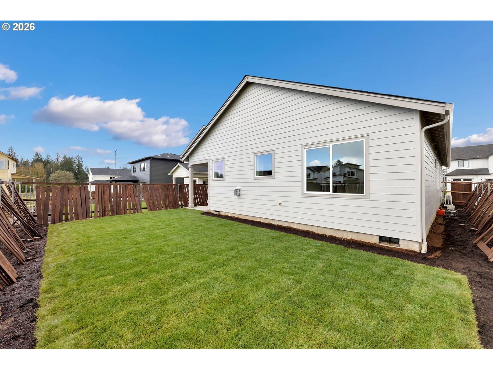 Discover this stunning 2026-built ranch home, nestled in a vibrant new community conveniently close to town and shopping. Boasting 1,490 square feet all on one level, this three-bedroom, two-bath residence is designed for effortless living and provides the perfect blend of style, comfort, and convenience.Step inside to a bright, open-concept layout that welcomes you with abundant natural light streaming through large windows. A vaulted ceiling enhances the airy feel of the main living area, creating a sense of spaciousness ideal for both relaxation and entertaining. The modern kitchen is a true highlight, featuring a refrigerator, a spacious eating island with additional storage and a dedicated prep area, and a garbage disposal for easy clean-up. Luxury vinyl plank flooring adds elegance and durability to the main living spaces, while plush, wall-to-wall carpeting ensures maximum comfort in each bedroom.The primary suite offers a serene retreat, complete with an en-suite bathroom and ample closet space. Two additional bedrooms provide flexibility for family, guests, or a home office. Enjoy the benefits of living in a thriving, friendly community with easy access to shopping, dining, and everyday conveniences. This ranch home is thoughtfully designed for today’s modern lifestyle. HOme isbnow completed-- occupancy permit is pending final inspection.