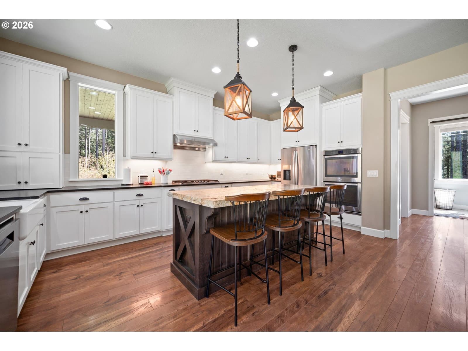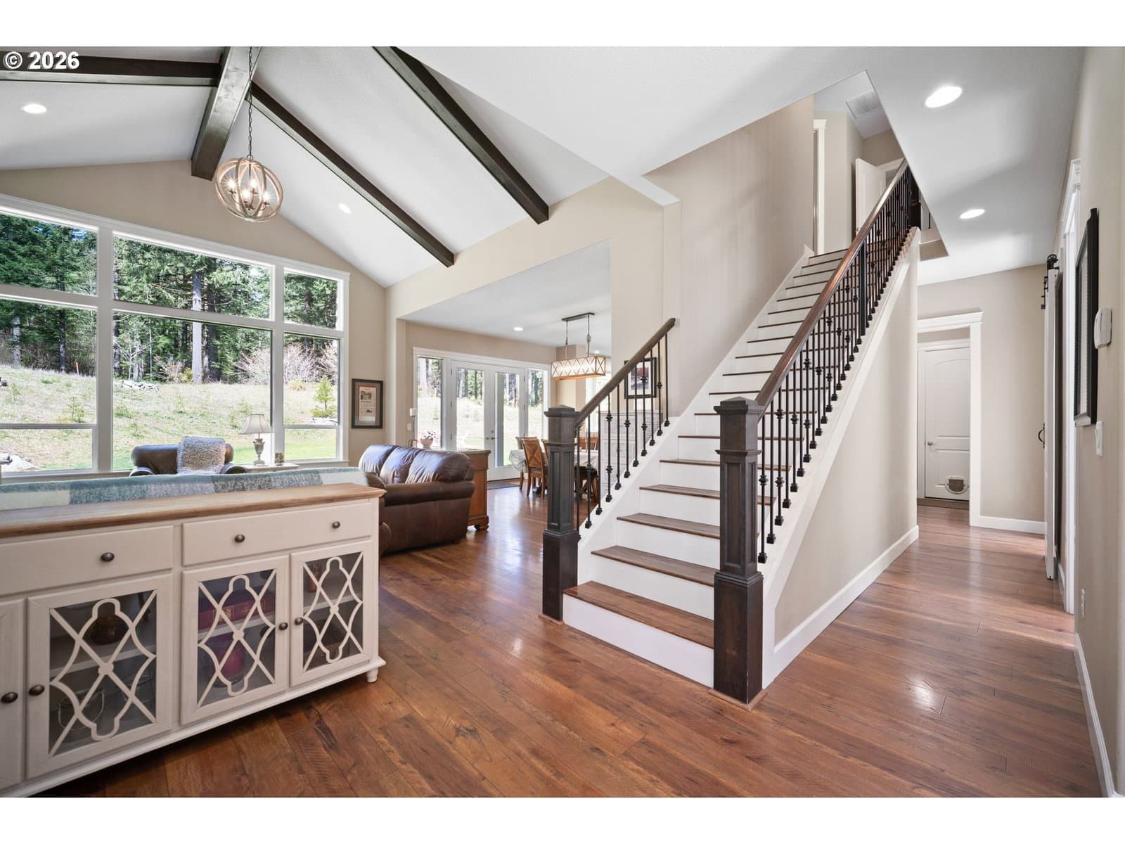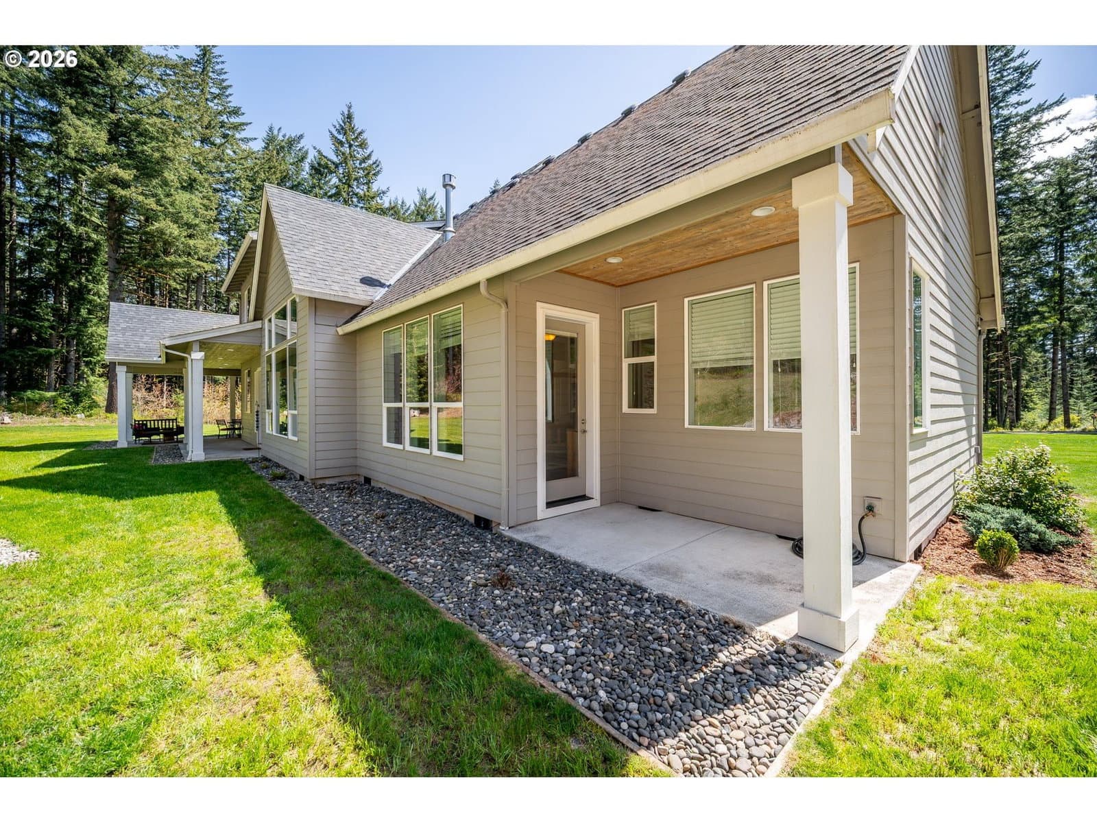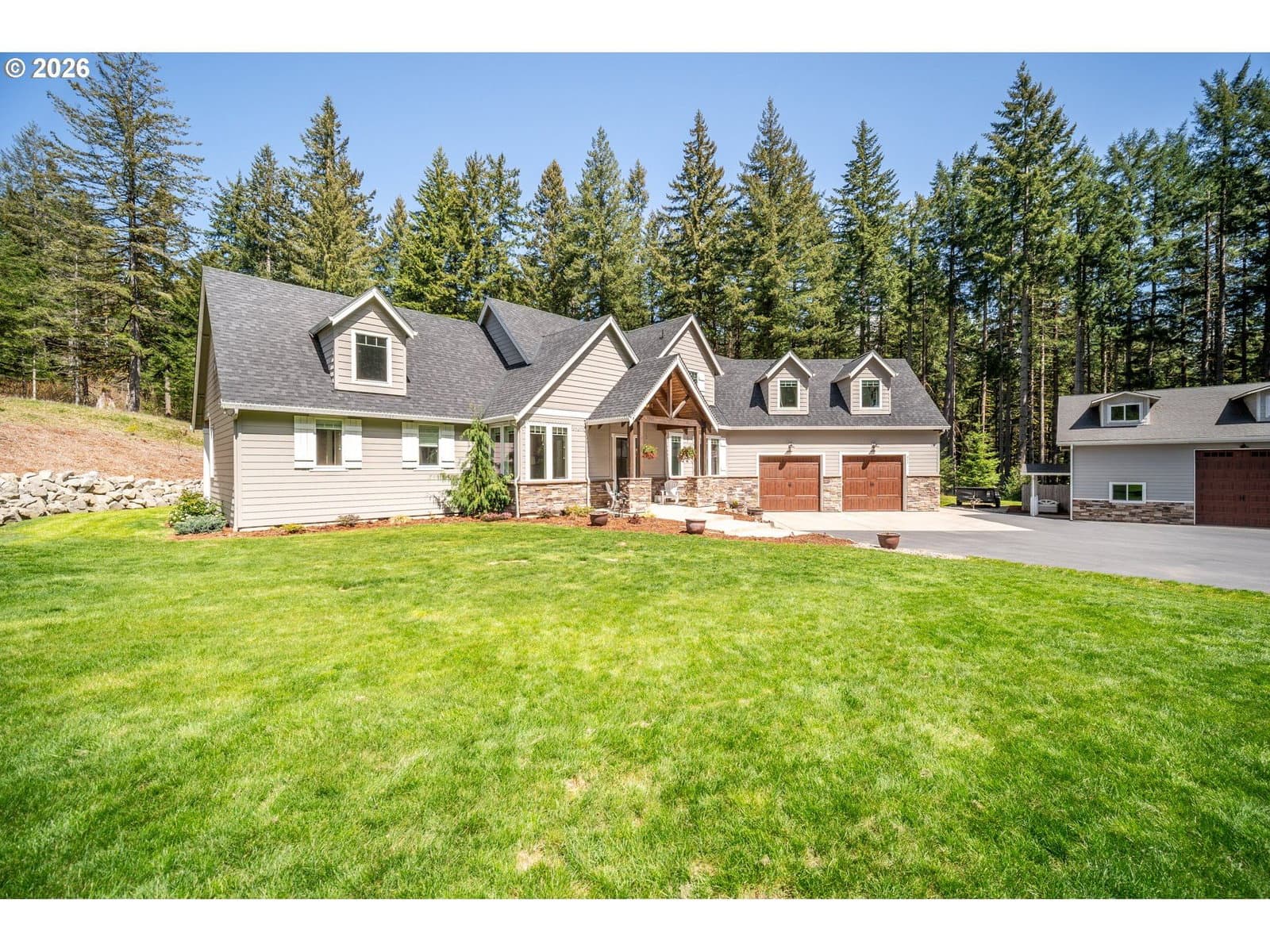 Set on 3.18 acres in a quiet, gated community, this 3,172 sq ft home offers the kind of space and privacy that’s getting harder to find, paired with a layout that just makes sense. With single-level living at its core, the main floor includes a spacious primary suite, dedicated office with custom built-ins, and open living areas designed for everyday comfort. Vaulted ceilings and large windows bring in natural light and frame the surrounding wooded setting, while the stone fireplace anchors the main living space. The kitchen is set up for both daily use and hosting, with a large island, double ovens, and plenty of storage. Outside, the property really opens up; over three acres to enjoy, with room to spread out and unwind. The shop adds serious flexibility for projects, storage, or hobbies, with potential for future ADU conversion depending on your needs. If you’re looking for privacy, usable acreage, and a home that lives comfortably day-to-day with room to grow, this one delivers.