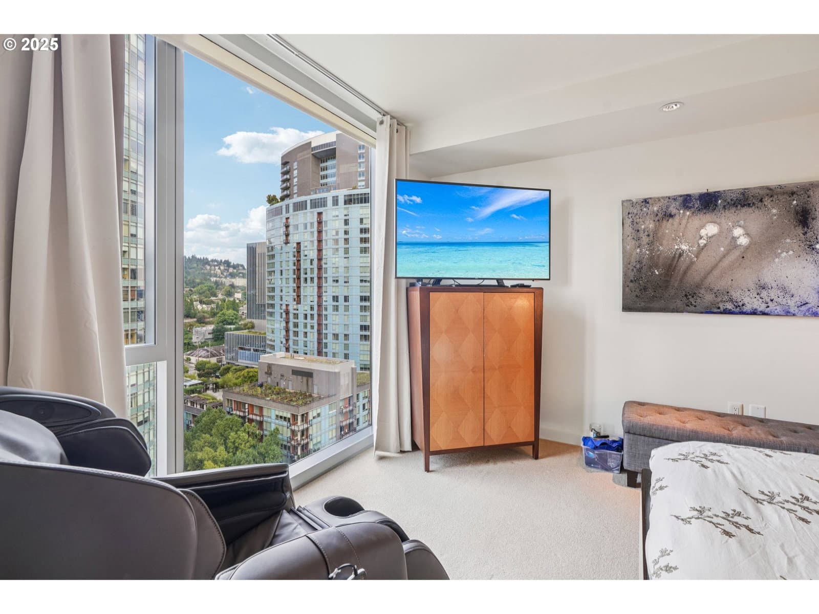 Experience elevated living in this coveted corner residence at Atwater, where floor-to-ceiling windows showcase sweeping city and river views to the west, north, and east. The home features a fully remodeled, custom-designed kitchen (approximately $150K investment) paired with wide-plank white oak flooring throughout the main living areas. Designed with entertaining in mind, the gourmet kitchen centers around an expansive quartz island with seating for six and is equipped with premium appliances, including a Dacor 6-burner gas range, Bosch refrigerator, Miele dishwasher, and drawer microwave. Thoughtful design ensures abundant storage throughout. Ideally situated along the Willamette River, Atwater offers immediate access to scenic walking and biking paths. The vibrant South Waterfront neighborhood places you just blocks from everyday conveniences, dining, and transit, including the streetcar with direct connections to downtown, as well as nearby OHSU and tram access.Additional highlights include a dedicated storage unit, deeded parking in a secure garage, and a concierge-serviced, secure building. Seller is open to discussing owner-carried financing—please inquire for details. Private showings available by appointment.
