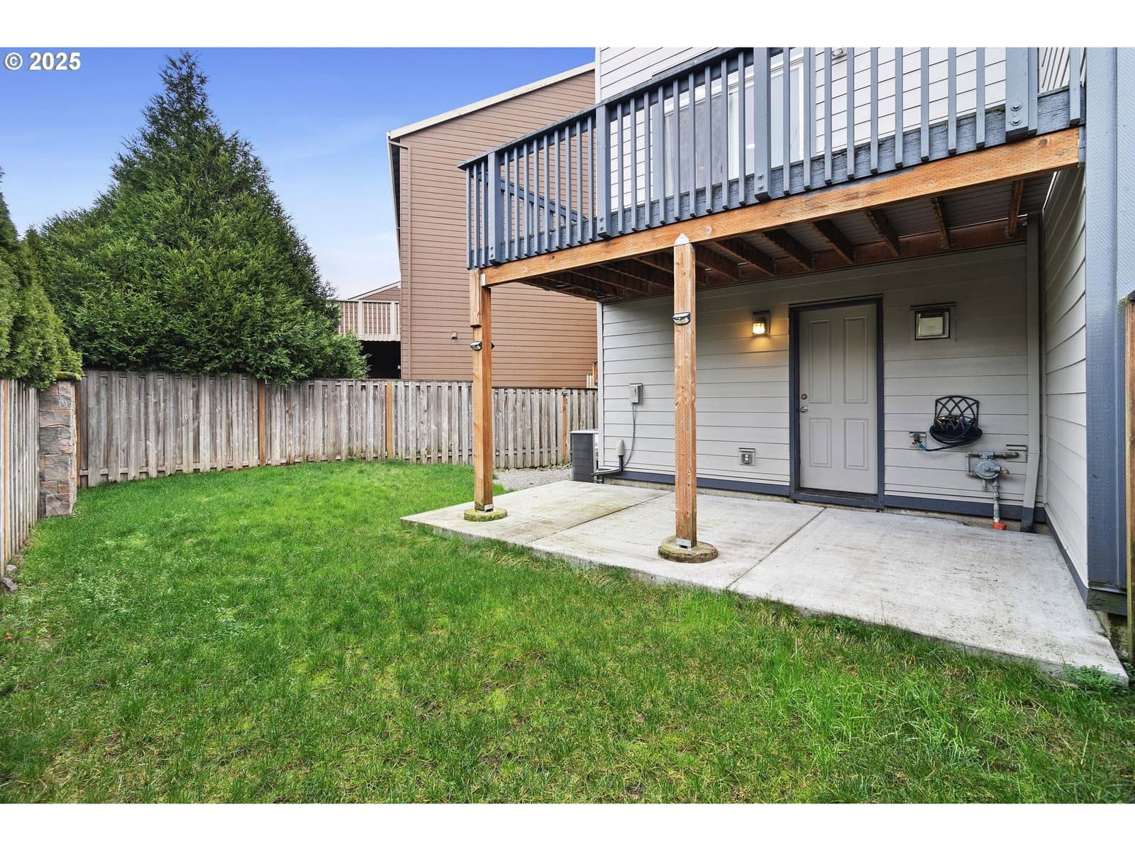Welcome to Village at Summer Creek, a beautifully maintained end-unit townhome offering abundant natural light and high ceilings. Feels like-new with freshly touched up interior paint and gorgeous engineered wood flooring throughout! Enjoy indoor and outdoor living with a composite deck located off the kitchen and an oversized patio in the large fenced yard, creating ideal spaces for relaxing or entertaining.The open-concept main level includes a dining area and a kitchen featuring stainless steel appliances and granite countertops. A convenient half bath and laundry are located on the main floor as well.Upstairs, a versatile loft provides a great space for work or hobbies. The attached 2 car tandem garage offers ample storage and access to the large yard! This home is located just minutes from Summer Lake Park, Progress Ridge, and Washington Square, with quick and easy freeway access. This townhome combines style, comfort, and exceptional convenience.