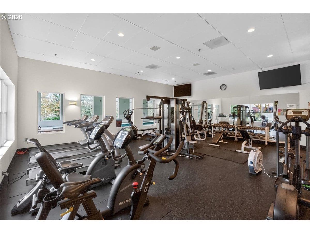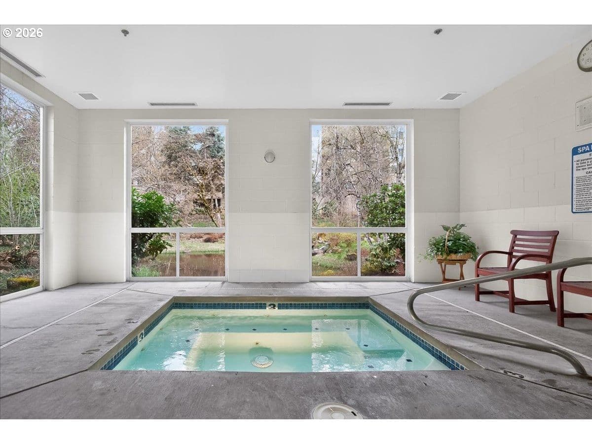 Welcome to The Quintet, a private gated community tucked into the beautifully landscaped West Hills of Portland. This well maintained 1 bedroom, 1 bathroom condo offers comfort, functionality, and a peaceful setting with a beautiful private view that truly sets it apart.Inside, you will find a bright and inviting layout featuring a gas fireplace that creates a warm focal point in the living space. Large windows bring in natural light while framing the serene, tree-lined outlook, enhancing the home’s sense of privacy and calm. The kitchen and living areas flow seamlessly, creating an open yet comfortable feel. Full laundry in the unit adds everyday convenience.Step outside to your private patio, perfect for morning coffee or relaxing evenings while taking in the quiet surroundings. This unit also includes two deeded parking spaces, one secured and one conveniently located just outside the building, offering flexibility rarely found in condo living.Enjoy easy, stair-free access with an elevator, making daily living convenient and accessible. Residents of The Quintet also have access to resort-style amenities including beautifully maintained grounds with walking paths, ponds, and water features, a clubhouse, indoor pool, fitness center, sauna, and hot tub, creating a true retreat-like environment.Ideally located near Burnside and Barnes, this home offers quick access to Highway 26 and Highway 217, with downtown Portland just minutes away. A bus stop is located at the entrance, and the Sunset Transit Center nearby provides MAX light rail access for easy commuting to downtown, Beaverton, Hillsboro, and the airport. Shopping, dining, and St. Vincent Hospital are all close by.A rare opportunity to enjoy low maintenance living with privacy, natural beauty, and exceptional convenience in one of Portland’s most unique communities. HOA includes water, sewer, garbage, recycling, cable, internet, gated entry, elevator access, clubhouse, indoor pool, hot tub, sauna, fitness center, tennis courts, and beautifully maintained park like grounds.