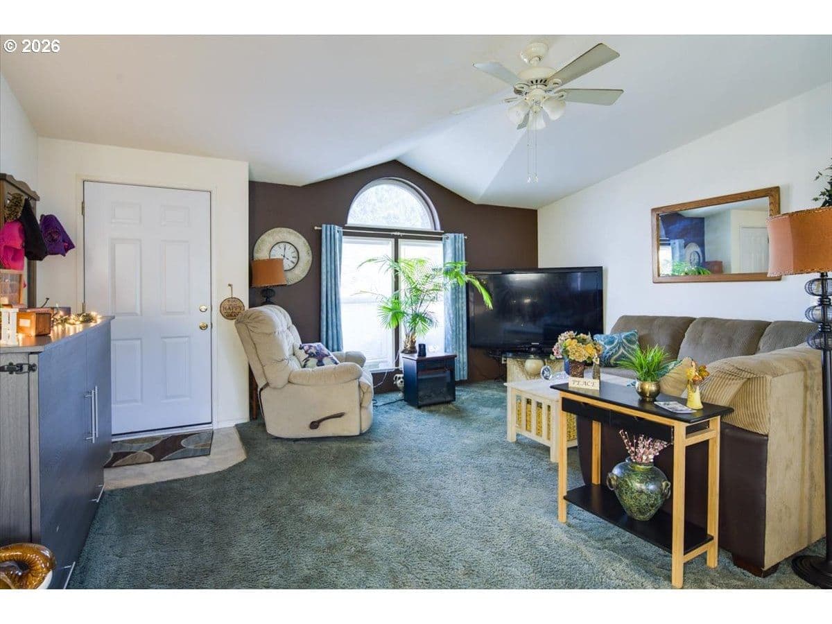 Welcome to Aspen Creek! This well-maintained 1996 manufactured home offers 3 bedrooms and 2 full bathrooms, with 1,296 square feet of comfortable living space on a .14-acre lot. The open floor plan welcomes you in, featuring a spacious kitchen with vinyl flooring, skylight, pantry, and included appliances—dishwasher, refrigerator, washer, and dryer. The vaulted living room adds a bright, airy feel and includes a ceiling fan for added comfort. A convenient laundry room is located just off the kitchen. The home also features a single attached garage and an easy-care fenced backyard. Enjoy the peaceful setting with the community pond located directly across the street and the clubhouse just steps away. Additional updates include a roof replacement in 2018. Aspen Creek Mobile Home Park bills every month with water, sewer and HOA included. Great location close to shopping, schools and access to Highland and downtown. Aspen Creek HOA is managed by Mile High Management