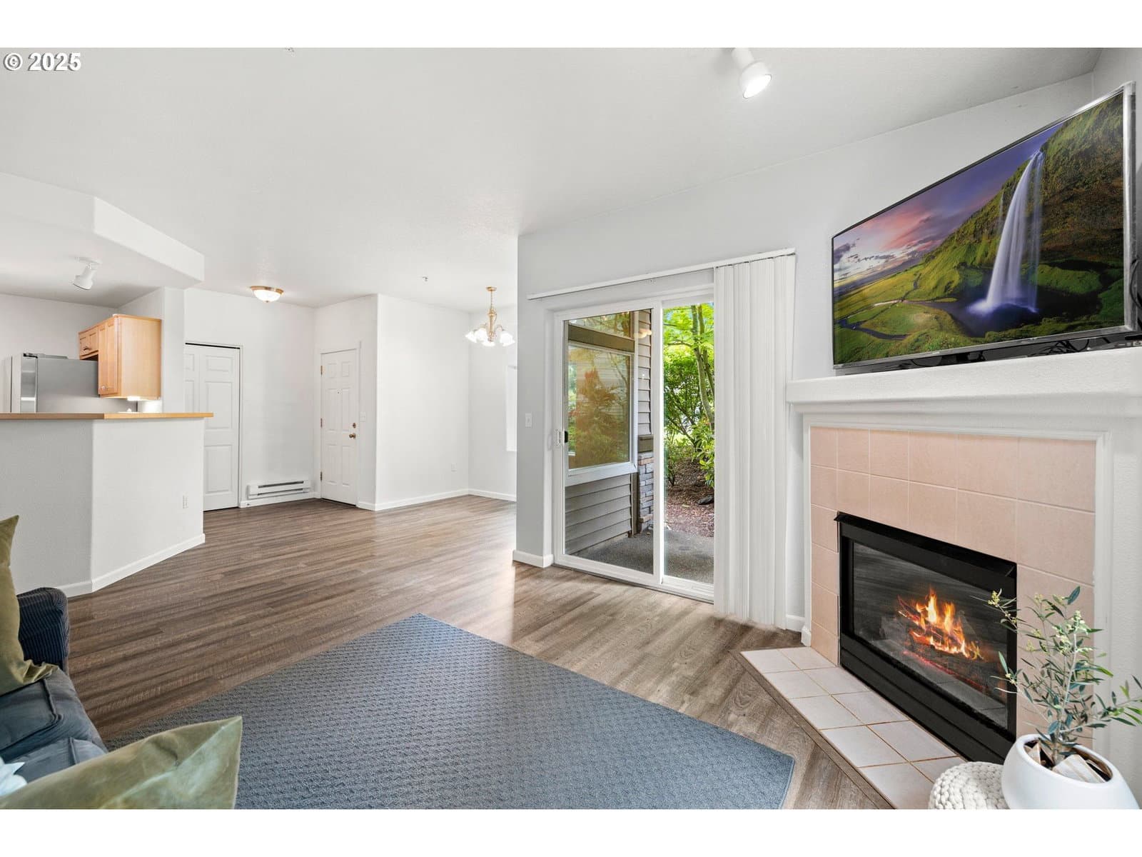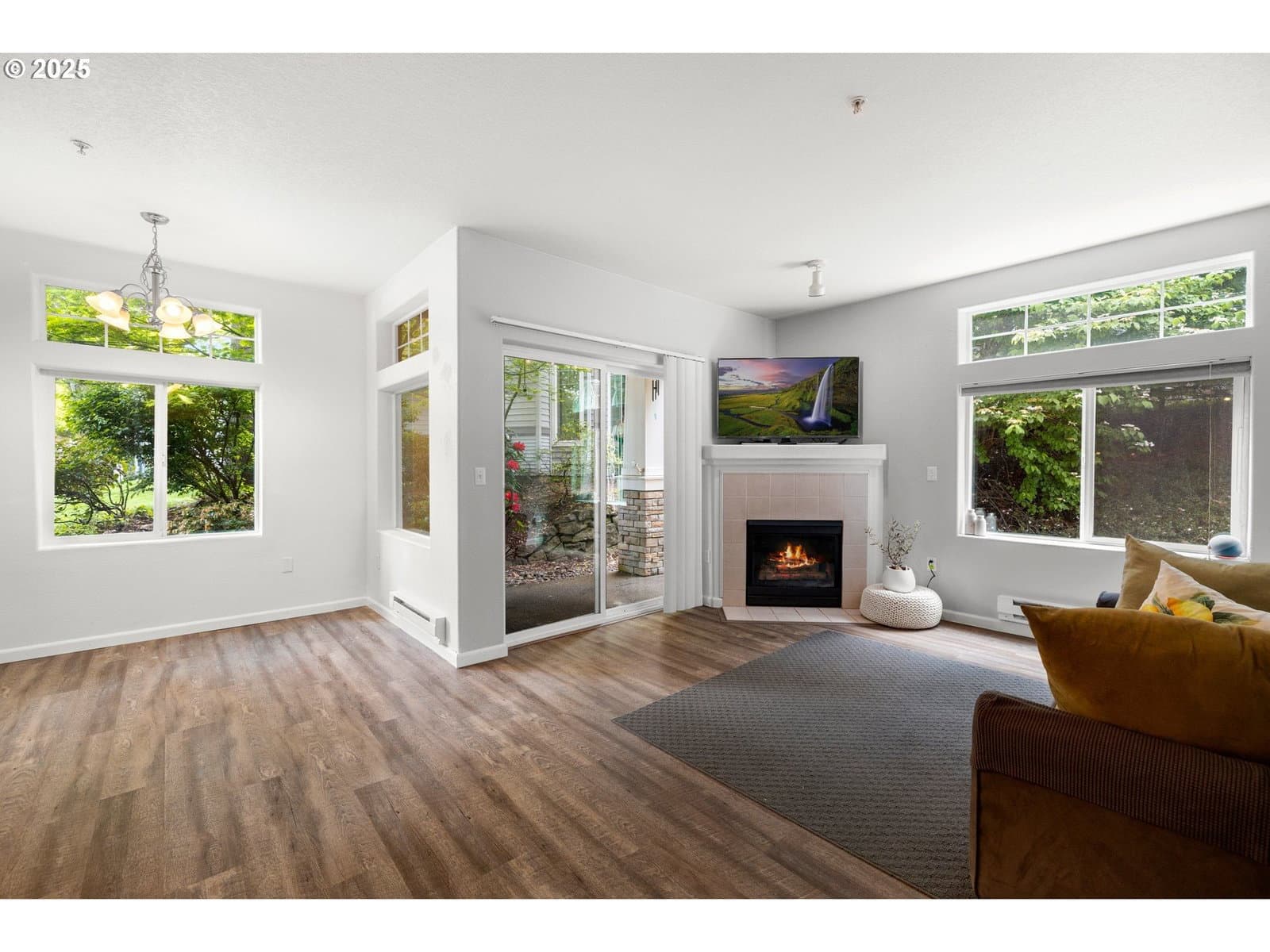NEW PRICE REDUCTION! This ground-level corner unit offers a bright and open-concept layout, featuring (2018) vinyl plank flooring throughout the main living areas and brand-new carpet (2025) in both bedrooms. Enjoy abundant natural light, a cozy gas fireplace, and a private covered patio—perfect for peaceful afternoon tea. The kitchen provides ample cabinetry and a charming dining nook, while the primary suite includes a walk-in closet and en suite bath. A second full bathroom offers added convenience for guests. Set in a beautifully maintained community surrounded by lush greenery, this home offers a prime location near Progress Ridge Plaza with easy access to top-rated schools, diverse dining options, and popular retailers like New Seasons, Whole Foods, Trader Joe’s, and Costco. Enjoy nearby entertainment at AMC Cinema and convenient commutes to major employers including Nike and Intel. Experience the ideal blend of comfort, convenience, and lifestyle in the heart of Beaverton!