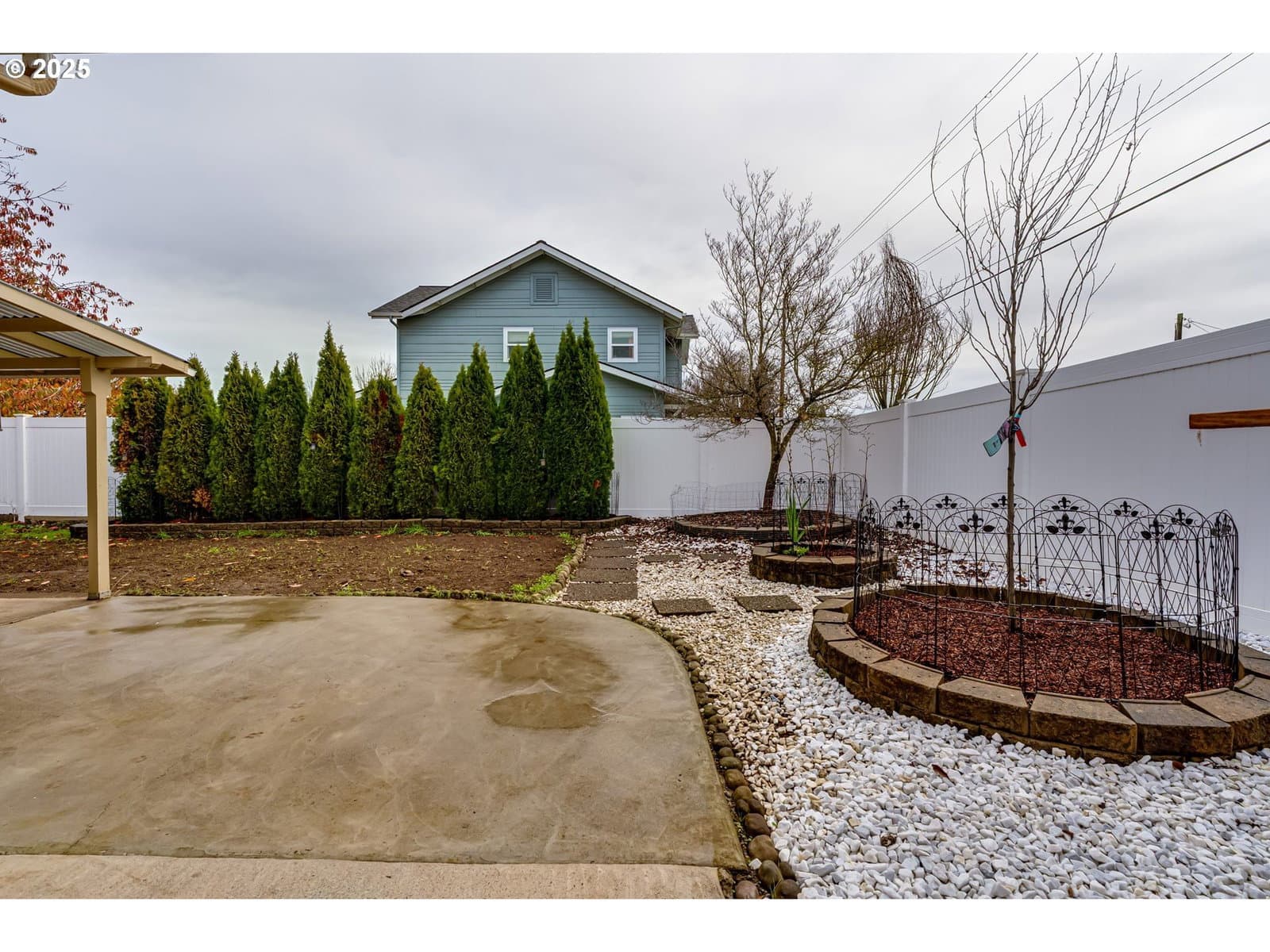 Price Improvement!! Don't miss this corner lot culdesac beauty!! It has been thoughtfully updated and has so much to offer. As soon as you arrive you notice the newly added covered front porch with composite decking and stunning white vinyl fencing with large gated RV parking and newly poured driveway. Inside we have a remodeled kitchen with Hickory cabinets, built in buffet, eating bar, ss appliances, pantry with pull outs and tons of counterspace. Cozy living room complete with electric fireplace and lots of windows that bring in the natural light. Primary bedroom has newly finished remodeled bathroom that boasts a tile walk-in shower and new vanity with tile backsplash. The backyard has large covered patio for entertaining or extra outdoor living space, raised garden beds, and gated concrete pad for additional toys and new HVAC system for energy efficiency and comfort. Close to freeway access, restaurants and shopping! Make an appointment for your private viewing today!