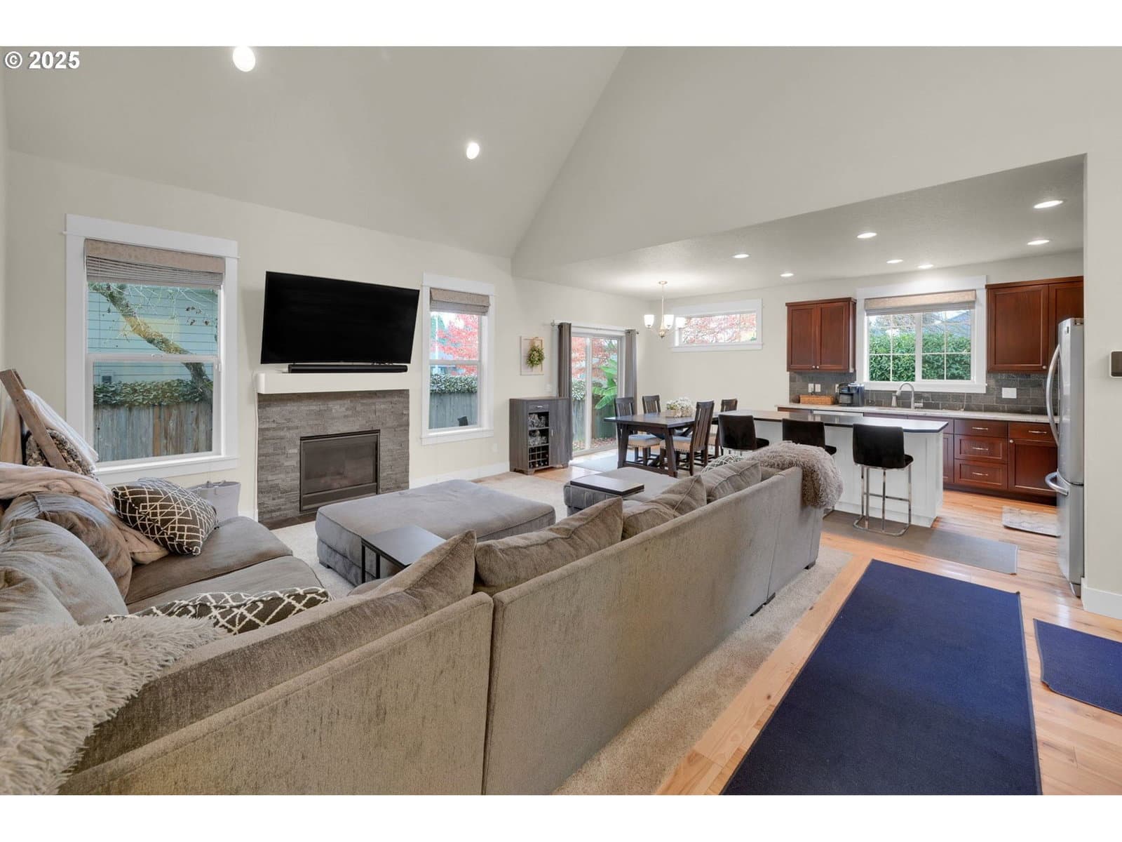 Welcome to this beautiful, move-in ready home offering the perfect blend of modern comfort and timeless style. Situated on a desirable corner lot with an open field across the street—ideal for kids to play or dogs to run—this property features a fully fenced yard for added privacy and peace of mind. Step inside to an open, light-filled floor plan featuring soaring ceilings, hardwood floors, and custom window treatments that create a warm, elegant atmosphere. The spacious kitchen is designed for both function and style, with abundant cabinetry, stainless steel appliances, a large island with seating, and plenty of counter space for cooking and entertaining. The adjoining living and dining areas flow together, anchored by a cozy gas fireplace and easy access to the covered back patio—ideal for year-round gatherings. The main level also includes a separate den/office room for remote work or quiet relaxation. Enjoy a spacious garage and interior utility room with a sink and tile flooring, adding everyday convenience and functionality.The primary suite is also conveniently located on the main level with 2 separate walk-in closets and its own bathroom including a tiled shower and double sinks, providing privacy and ease of living. Upstairs you’ll find two additional bedrooms, and a large and light-filled bonus room that can be used as a media room, home gym, or play area. With great separation of space, quality finishes, and thoughtful design throughout, this home is ready for you to move in and make it your own.