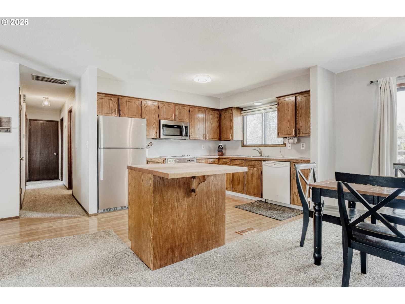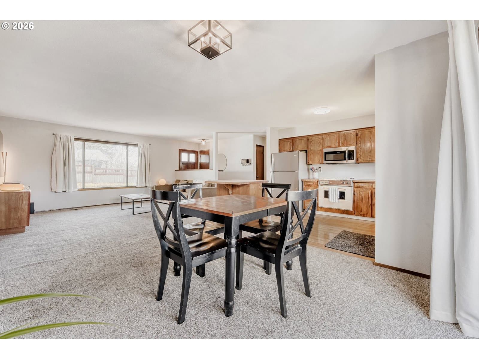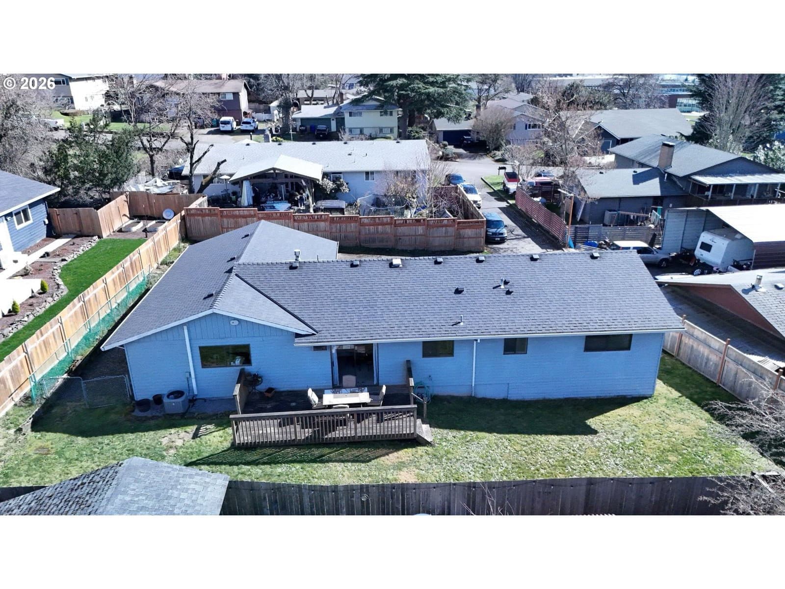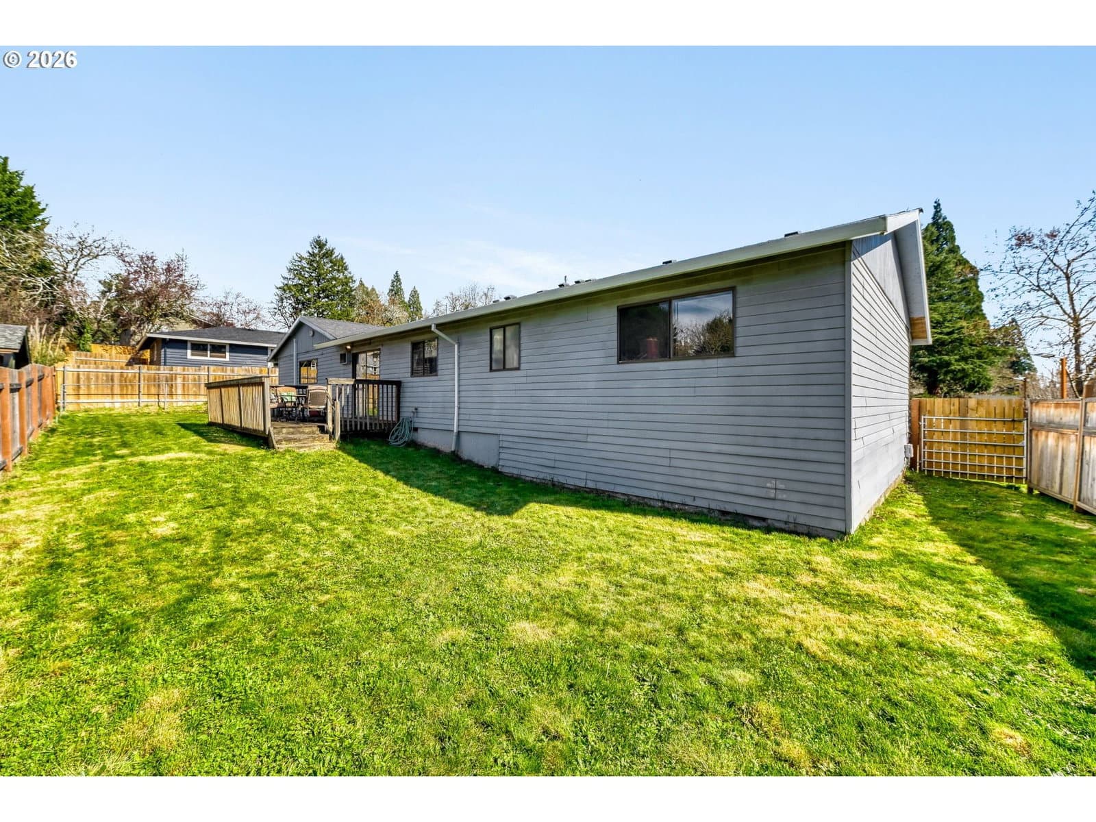 Welcome to this well-maintained one-level ranch home tucked away on a quiet flag lot in the desirable Sunset neighborhood. Offering an open and functional floor plan, this home provides comfortable everyday living with thoughtful updates and generous indoor and outdoor space. The light-filled living area flows seamlessly into the kitchen and dining space, creating an ideal setting for both relaxing and entertaining. The kitchen features an island workspace, durable laminate flooring and all appliances included, making it truly move-in ready. This home offers three bedrooms and two full bathrooms, including a primary suite with its own private bath. With everything conveniently located on one level, the layout offers excellent accessibility and practical living. Major system updates include a composition shingle roof installed in 2017, a high-efficiency forced air furnace and central air conditioning added in 2019, and a new gas hot water heater in 2024, providing peace of mind for years to come. Situated on a spacious 8,426 square foot lot, the property features a fully fenced yard, dedicated dog run and deck perfect for outdoor gatherings, gardening or simply enjoying the quiet setting. There is abundant off-street parking along with an oversized two-car garage offering approximately 844 square feet of space, ideal for storage, hobbies or workshop use. Conveniently located near parks, schools, shopping and commuter routes, this home offers a great combination of comfort, functionality and location. Open house cancelled.