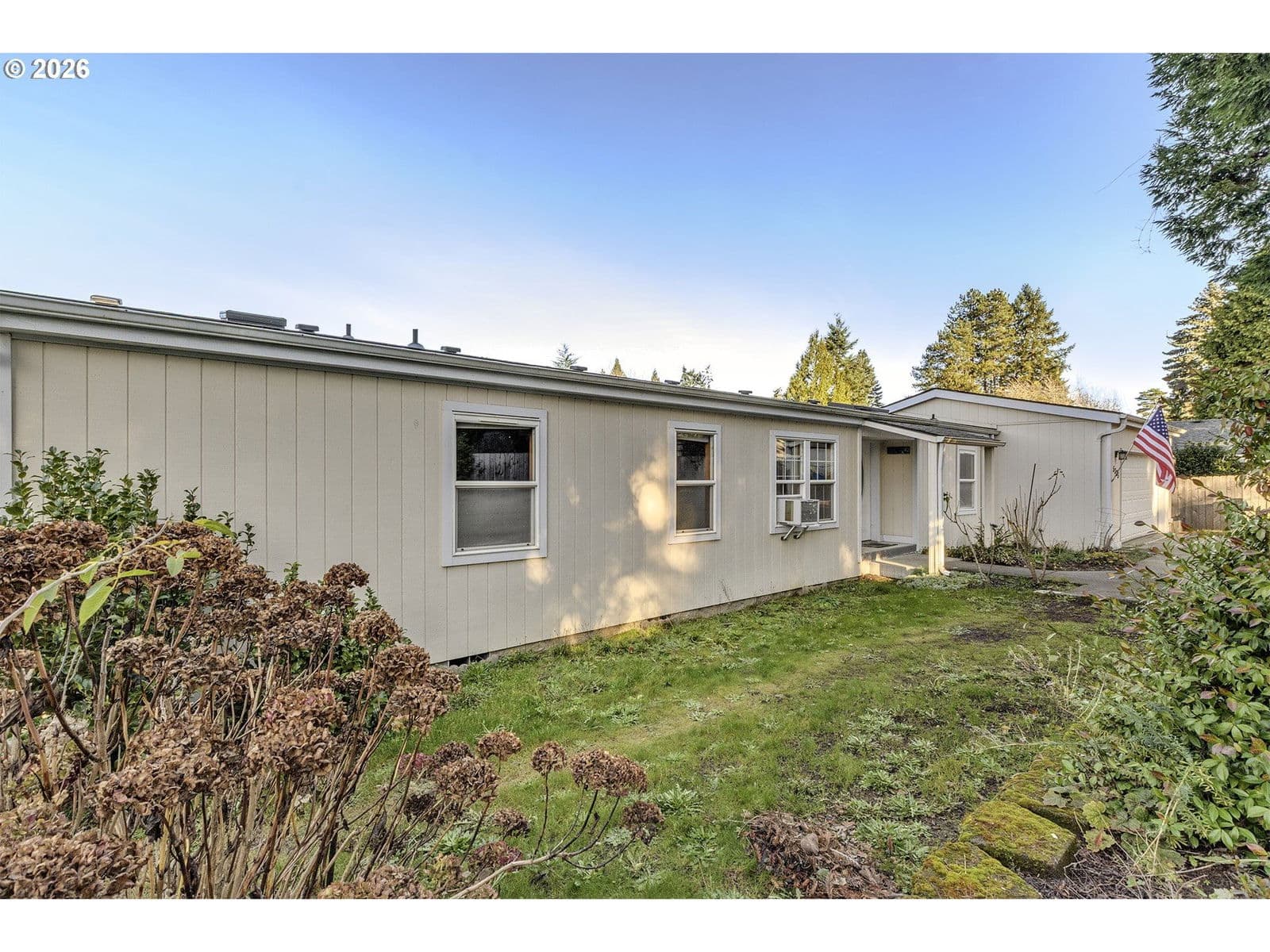 Beautiful single-level home in Beaverton, Oregon, offering the privacy and feel of a detached residence. This manufactured home sits on its own foundation with tie-downs and features 3 bedrooms and 2 bathrooms. The spacious primary suite includes an ADA-accessible shower and double sinks. Forced-air heating and numerous updates throughout the home, including the kitchen, primary bath, and guest bathroom.Enjoy the convenience of a full two-car attached garage, plus washer and dryer included. The outdoor space offers garden beds and plenty of room to create what you envision. Tucked away at the end of a quiet flag lot, this home provides a peaceful setting with great neighbors—an ideal combination of comfort, privacy, and functionality.