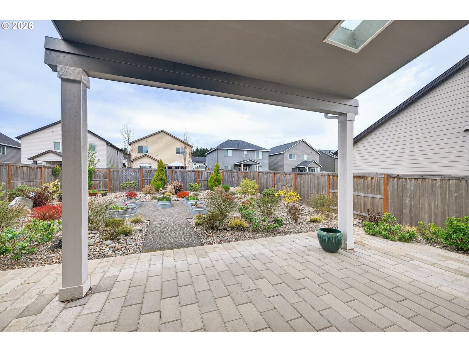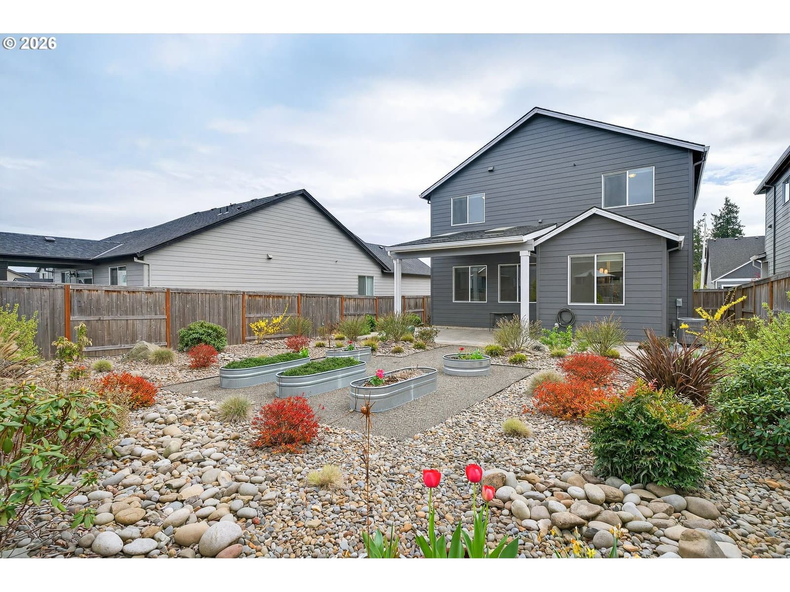 Welcome to this beautiful 2023 home, where thoughtful upgrades make it a standout in the community! Featuring 3 bedrooms and 2.5 bathrooms, this move-in ready property shines with enhancements throughout. The main level is finished with durable luxury vinyl plank flooring, making things look sharp without all the upkeep. The kitchen is equipped with gas appliances, quartz counters, and under-cabinet lighting. It opens into the living area, where a cozy gas fireplace adds both charm and comfort. Upstairs, you’ll find three light & bright bedrooms and a functional layout including an upstairs laundry room. Washer and dryer included! Outside, the low-maintenance backyard is truly a standout feature. Enjoy beautifully planned landscaping with individual drip irrigation for each plant. The upgraded awning over the new paver patio is built to last, with a more substantial feel than standard options and two skylight-style openings for natural light. Located in a desirable new community by Holt Homes, this property offers the perks of new construction along with improvements you won’t find in comparable homes.