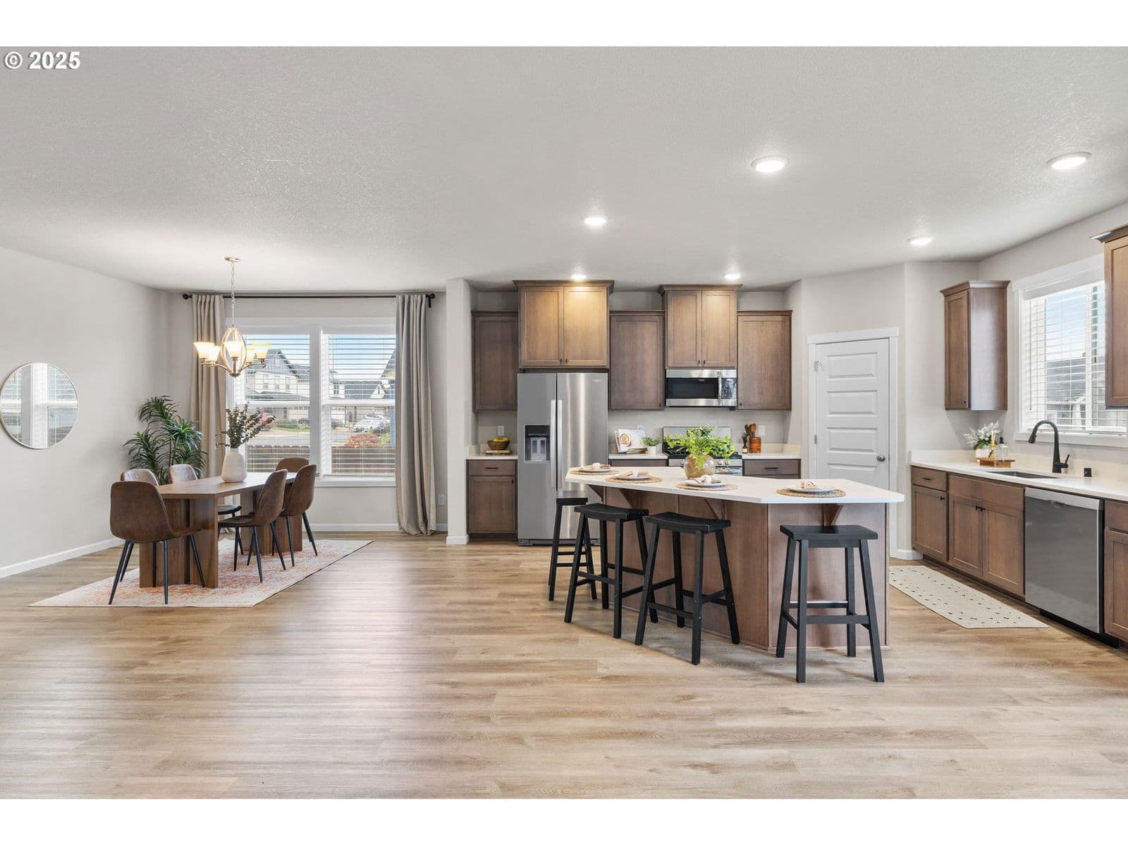 **Save yourself over $100K** Same model is being built down the street for over $775K. Instant equity!! This perfectly situated home on a desirable corner lot in Cody Estates offers immediate appeal with an open-concept design and high ceilings that create a wonderful sense of space and flow. Tons of space for a growing family! The kitchen features an eat-bar, quartz counters, and stainless steel-gas appliances. Luxury vinyl flooring throughout the main level ensures beauty and easy maintenance. A fresh, neutral palette is provided by the white trim package and neutral tones, and a private main floor office is conveniently tucked away for quiet productivity. Upstairs, the owner's suite serves as a true retreat with a spacious bedroom and a huge, spa-like bathroom, complemented by three additional bedrooms (one functioning as a bonus/media room) and a practical upstairs laundry room. Peekaboo views of Mount Hood & Mount Saint Helens upstairs. Outside, a sunny, south-facing patio is already engineered to accommodate the easy addition of an attached awning & already plumbed with a gas BBQ line. Sprinklers front and back. Storage sheds included. NO HOA!!