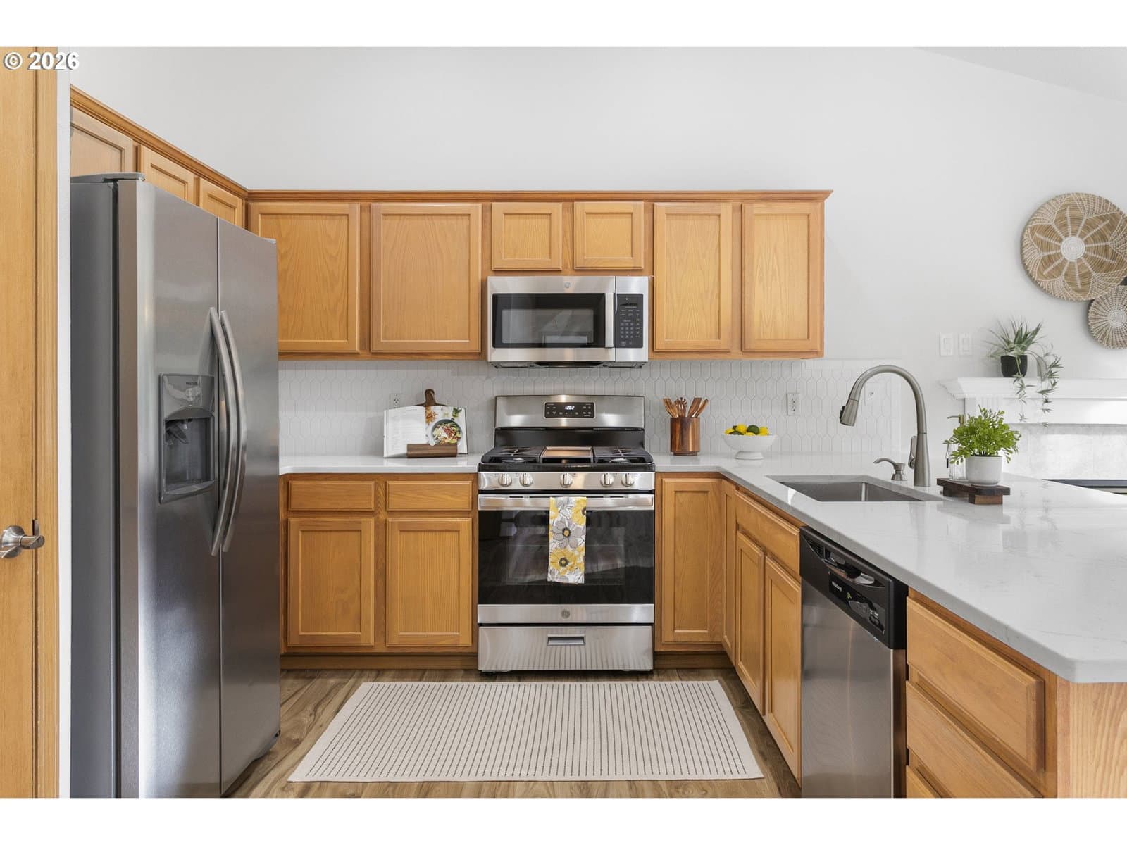 Gas Water Heater, Dishwasher, Disposal, Free-Standing Gas Range, Free-Standing Refrigerator, Microwave, Plumbed For Ice Maker
