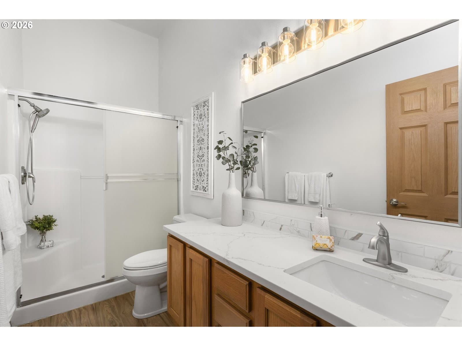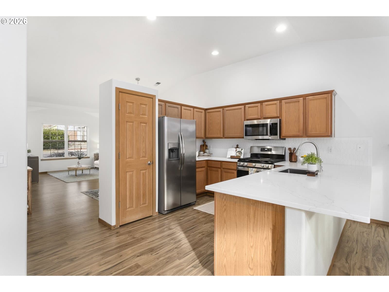Freshly Updated & Move-In Ready! Welcome home to this beautifully refreshed one-level home with a 3-car garage, offering comfort, style, and convenience. Step inside to discover abundant natural light streaming through large windows, highlighting the brand new wood laminate flooring and fresh interior paint throughout. All new light fixtures for a bright, welcoming feel. The recently updated kitchen features stunning quartz countertops, full tile backsplash, a new stainless steel gas range and new microwave, and a new sink and garbage disposal. Both bathrooms shine with new quartz counters, new fixtures and finishes. Two of the bedrooms feature brand new carpet, adding a cozy touch. Enjoy easy indoor-outdoor living — step out onto your spacious deck, perfect for entertaining or relaxing. The fenced backyard includes a dog run, a large shed, and a sprinkler system to keep everything lush and green. Plenty of room for your RV or boat storage, plus extra storage under the house. New roof in summer of 2023. Located close to the golf course, this turn-key home truly has it all. Don’t wait — this one won’t last long!