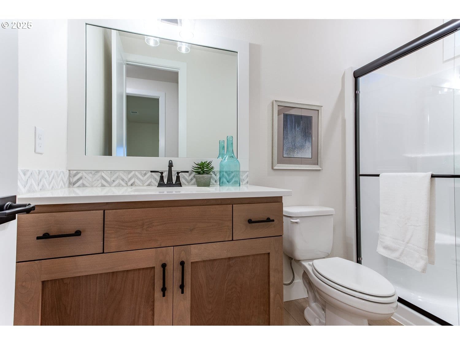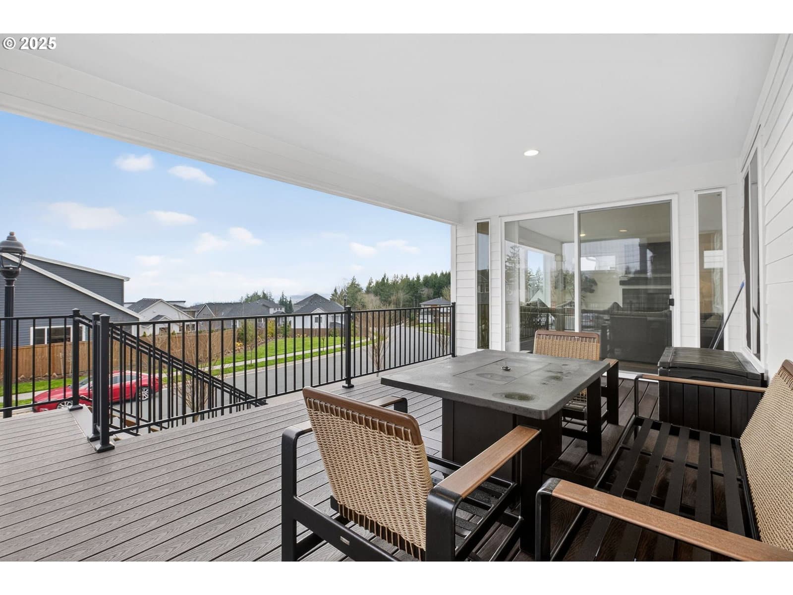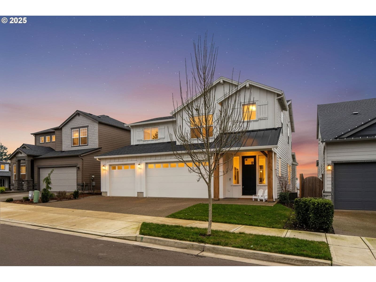 Incredible value and possibly the most spectacular and protected view of any luxury home in River Terrace Crossing! This was the model home for the development with too many upgrades to list! Built by award-winning Stonebridge Homes, this home offers a perfect blend of modern design with an open floor plan and feels brand new! The main level is light and bright with a cozy gas fireplace, luxury vinyl plank flooring, high ceilings and elevated finishes throughout including upgraded Mission shaker style cabinetry and more. The gourmet kitchen is a chef's dream with a premium Verona dual fuel free-standing range and other commercial-style appliances including a built-in microwave, upgraded chimney hood vent, quartz countertops, pantry, large island with eating bar and decorator lighting. There's also a full bedroom and bathroom on the main floor that's perfect for guests, multi-generational living, nursery or home office. Upstairs, the expansive primary suite with high ceilings is your own private oasis with an ensuite bath, luxurious soaking tub, walk-in closet, wall-to-wall carpet and spectacular view! 3 other spacious bedrooms mean there's space for everyone and make this home live large. Outdoor entertaining is effortless with a huge 21'x13' covered deck and a fully-landscaped, fenced backyard. This Earth Advantage-certified home is highly energy efficient with central A/C and nest thermostats, tankless hot water heater, Ring video doorbell system, plus an oversized 3-car garage with plenty of storage! And the 220V outlet on the lower patio is a major upgrade that can power a jacuzzi or swim spa. Located on a finished block with no more new construction on neighboring houses and multiple neighborhood parks and walking trails nearby, this one truly has it all and is priced to sell!