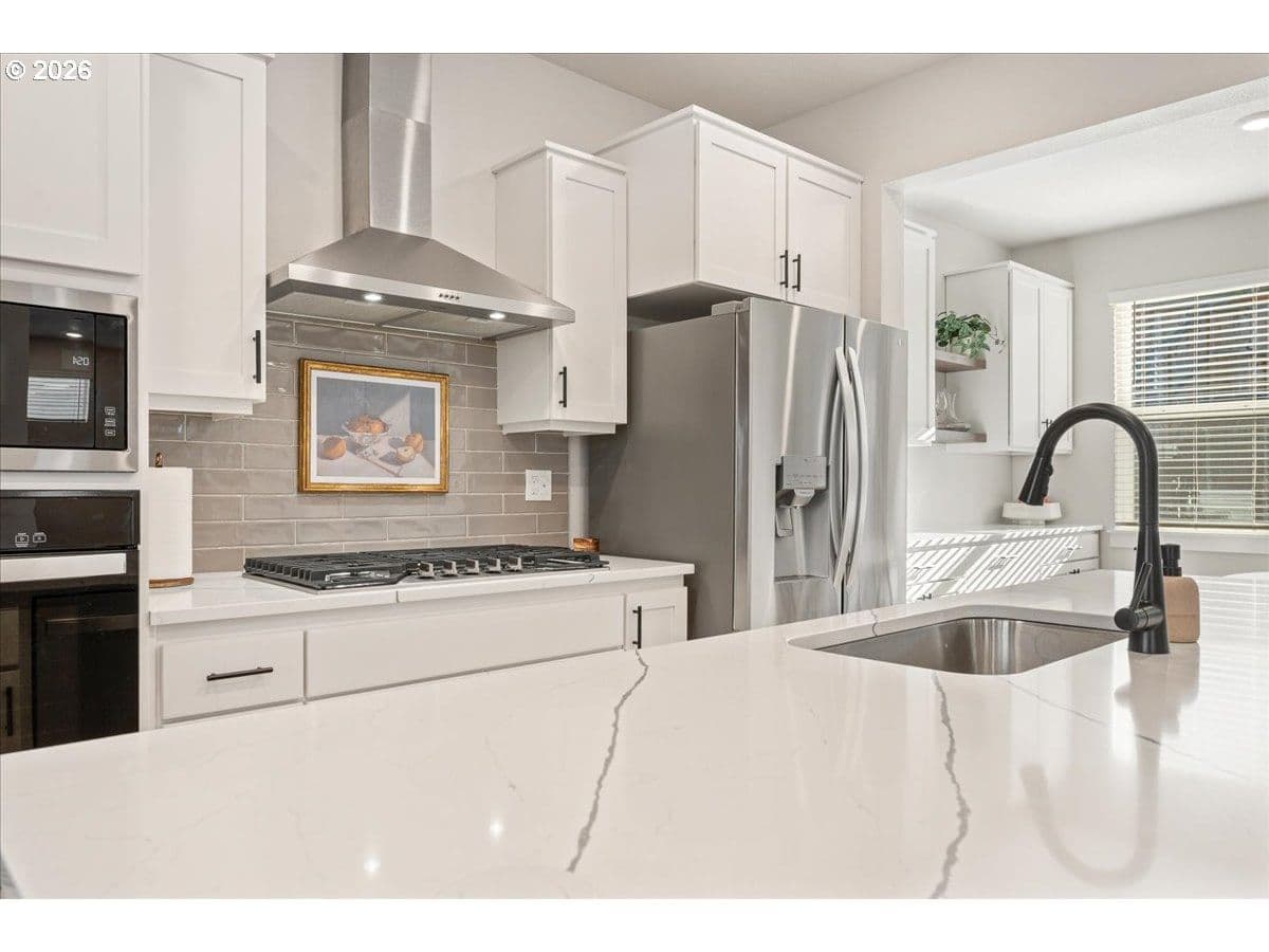 Oven, Gas Water Heater, Cooktop, Dishwasher, Disposal, Microwave, Plumbed For Ice Maker, Range Hood
