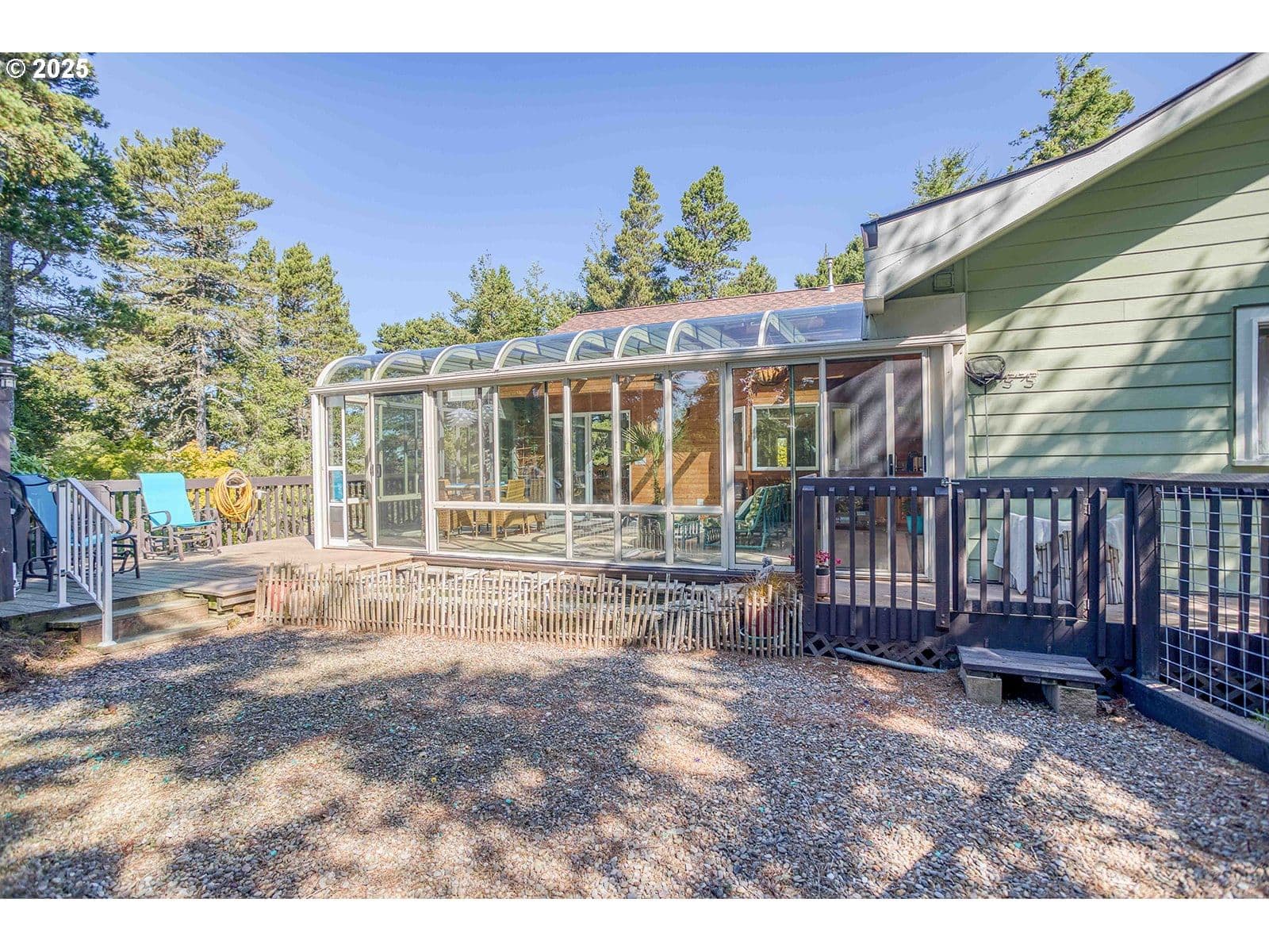 Private custom-built home in Heceta South just minutes to beach and ocean. Home features 4 beds, 3 baths, home office, upper living room, lower den, gourmet kitchen, huge thermostat-controlled sunroom and 3 car garage. Vaulted living room ceiling features 15'x8' Palladian windows to enjoy gorgeous sunsets and 40 acres of nature. Main level living plus lots of room to spread out on lower level. Terrific work-from- home environment if need be. Home is surrounded by multi-level decks, private hot tub, koi pond and fenced dog area. Many updates in last several years including roof, skylights, appliances, primary bath and garage doors. Nice landscaping and exterior lighting. Ask for amenities list. No drive-bys please; private driveway.