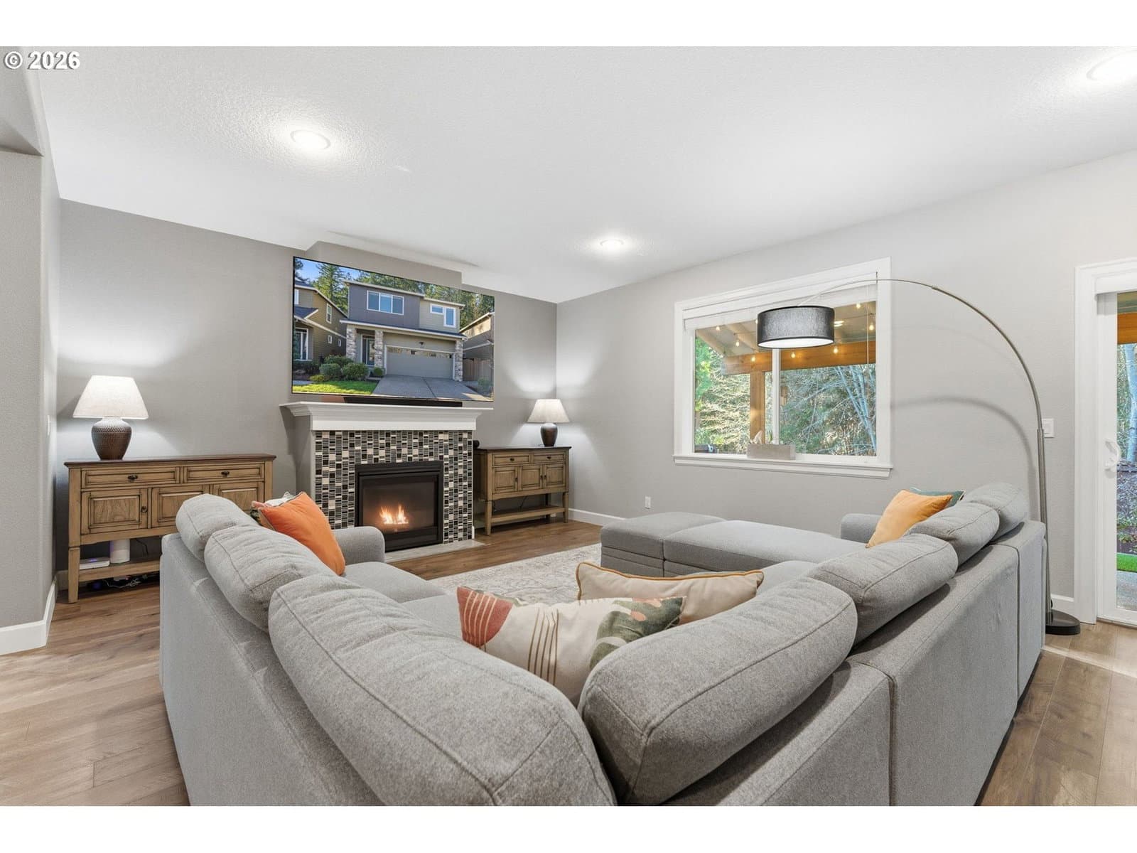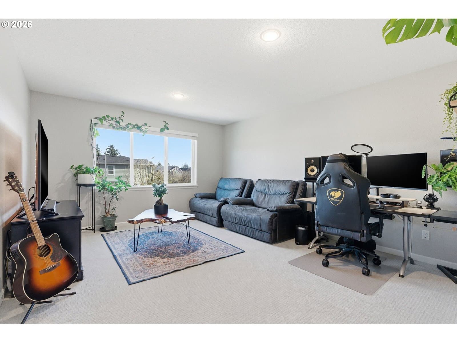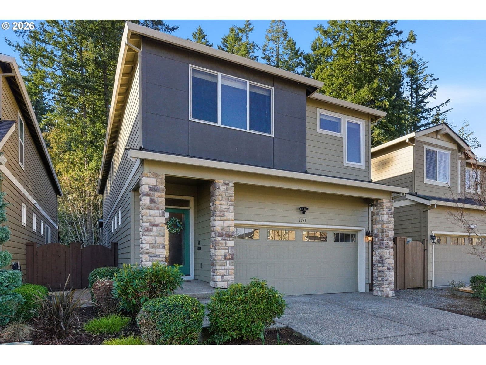 Set against peaceful greenspace with Rood Bridge Park just beyond the backyard, this 2,716 sq ft home offers a rare blend of privacy and connection to nature. Built in 2017, the great room concept creates a warm, welcoming space to gather, highlighted by a cozy gas fireplace and a spacious kitchen with a large island ideal for entertaining. The low-maintenance backyard features turf for effortless outdoor enjoyment, while the HOA maintains the front yard for added ease. Upstairs, generously sized bedrooms are thoughtfully spread out to provide privacy, complemented by a large bonus room and an additional loft reading nook. Modern conveniences include two EV chargers in the garage, making this home both functional and future-ready. Located in the Riverstone community, this home delivers comfort, space, and a true park-side lifestyle. Home is attached at the shed.