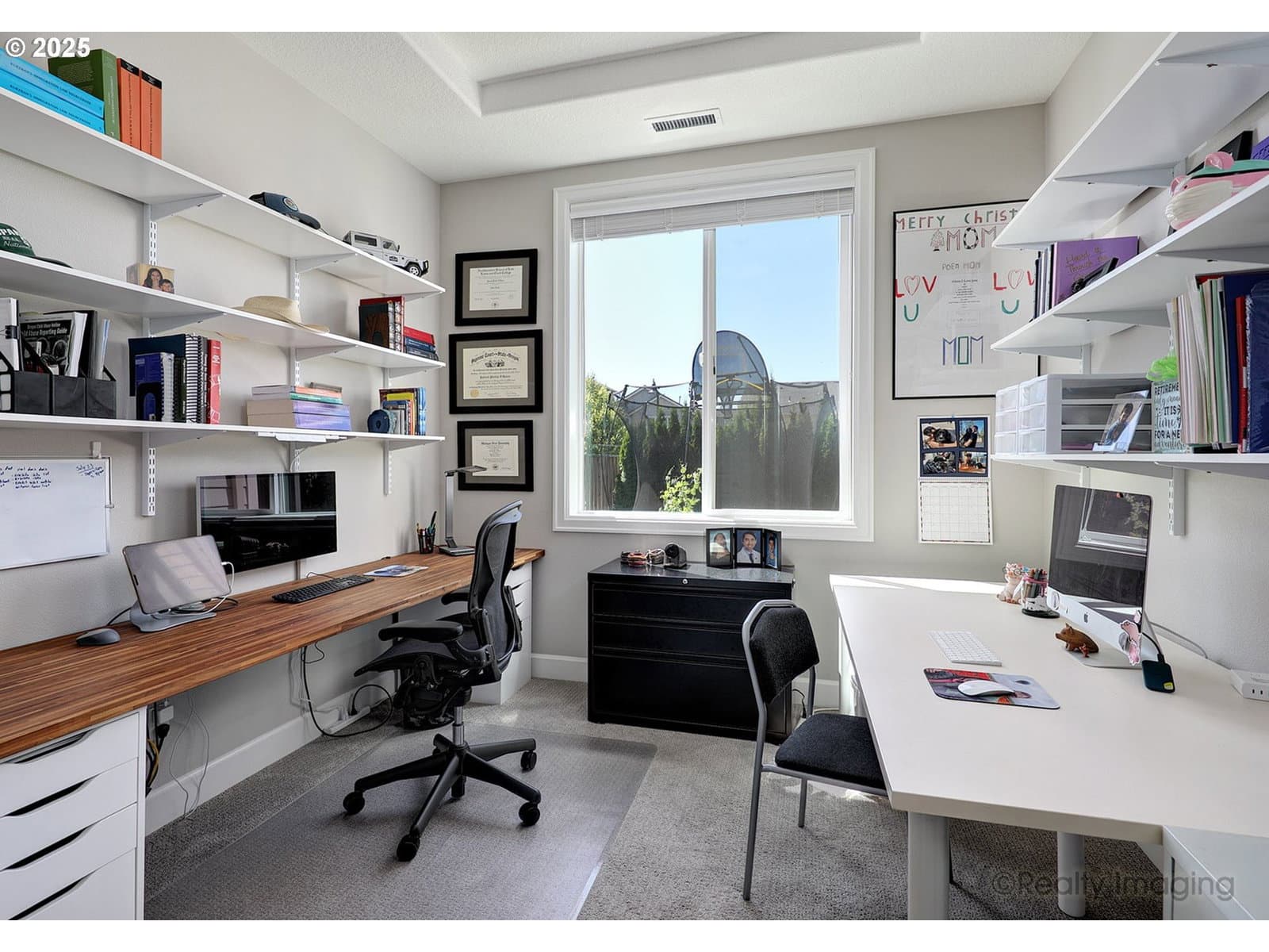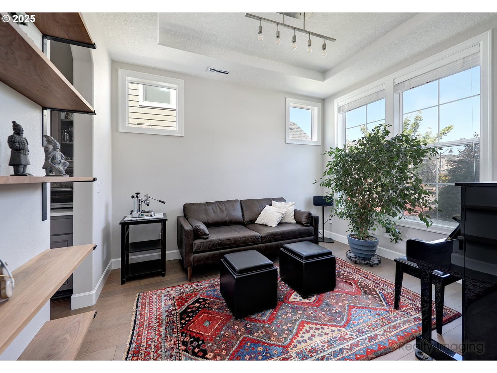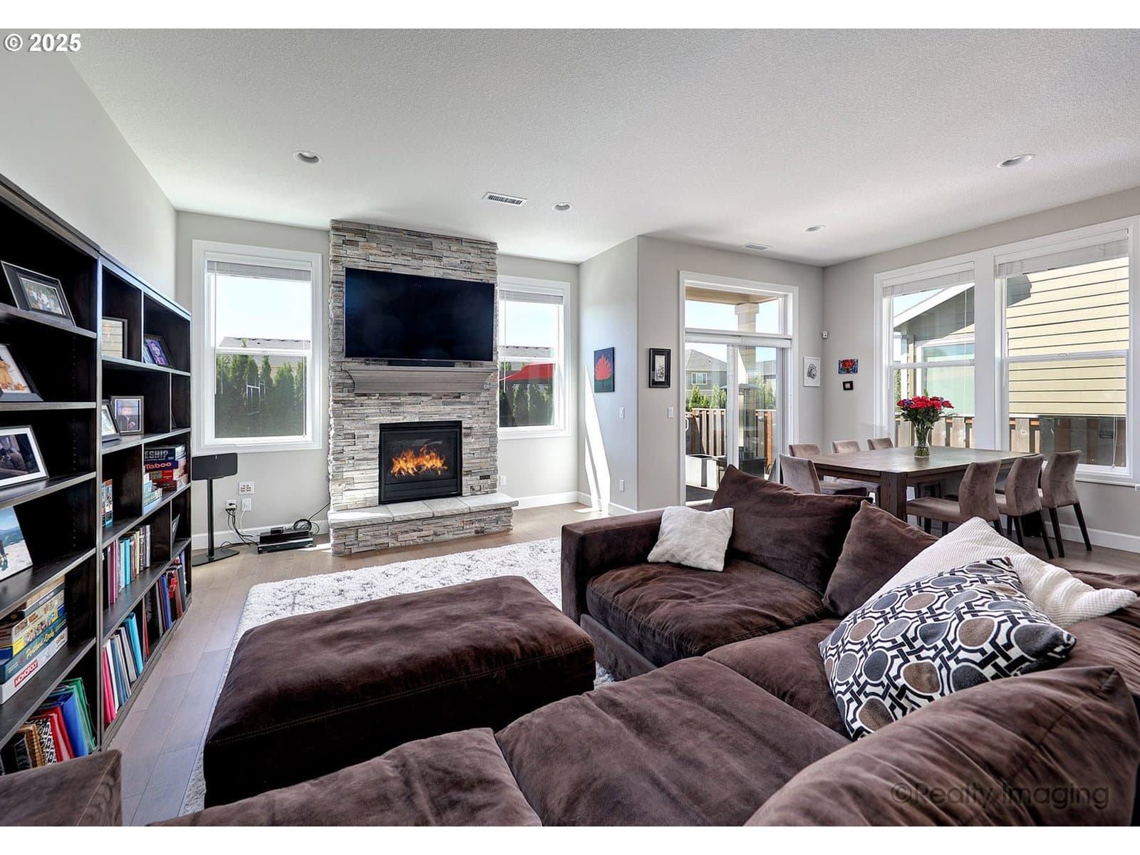 Better than new and move in ready! This open great room floor plan offers versatile living options--and the possibility for a total of six bedrooms. Gourmet kitchen with large island, nook, butler's pantry & pantry. Dedicated dining room currently used as flex space. The kitchen nook is large enough for a table to seat eight and the kitchen island allows for additional seating. There is a full bath on the main level and a bedroom which is currently used as a den. The upper level primary suite has a walk in closet and walk in shower and soaking tub. Three additional bedrooms up with a bonus room with closet, which could be an additional bedroom. The upper level laundry room with a sink, offers convenience. Don't let the square footage fool you. This home flows well and has ample storage. The fully fenced backyard has been updated with a large covered patio for outdoor living and entertaining. The artificial turf stays green all year long and is maintenance free. This original owner home has numerous upgrades to make this home shine. Built by Noyes Development, so you can feel the solid construction. Energy Star and Earth Advantage Platinum makes this home 54% more efficient than similar homes. Solar ready, too! Just blocks to the community park with play structure, basketball and pickleball. This is a home your buyers won't want to miss!