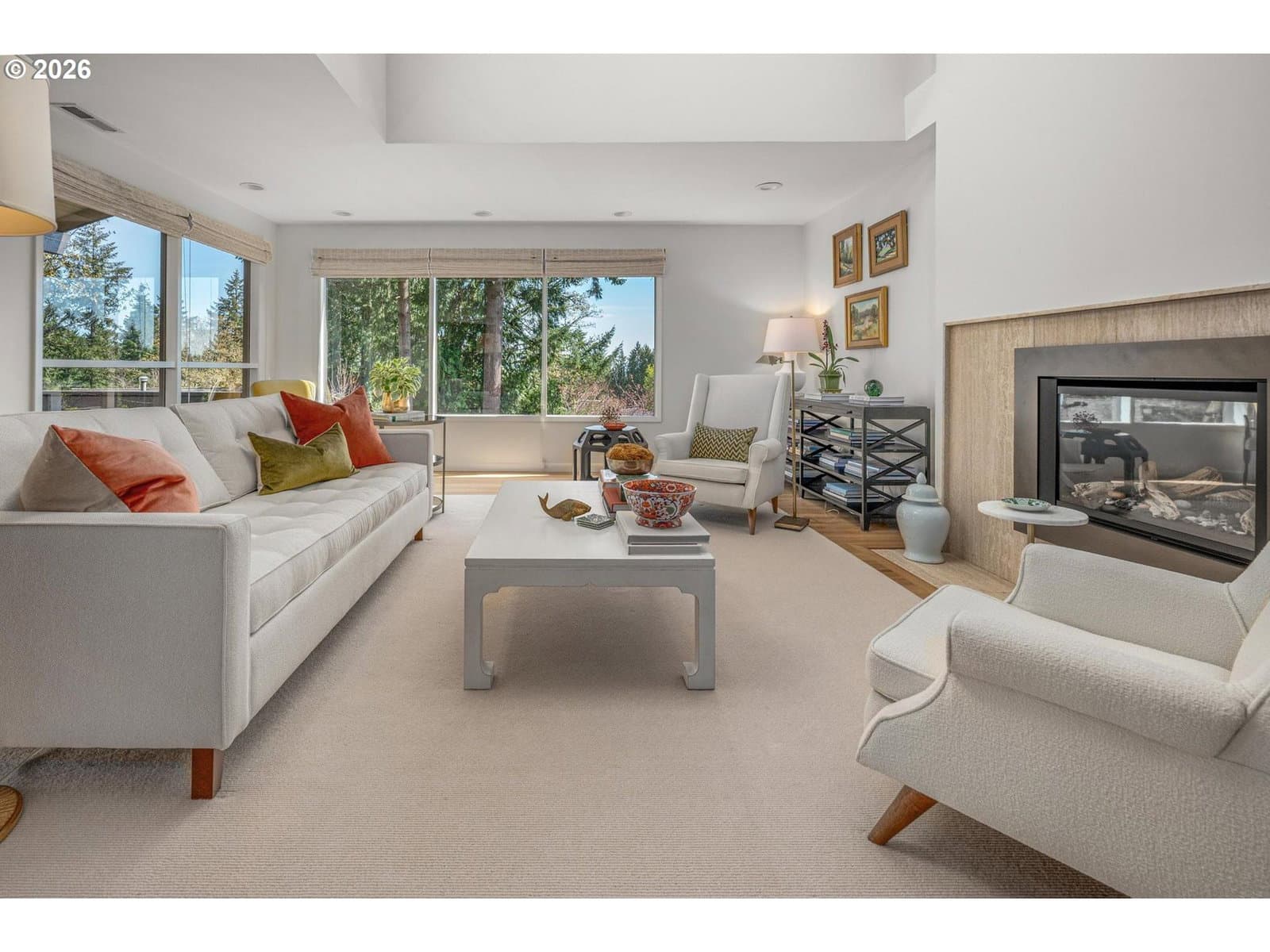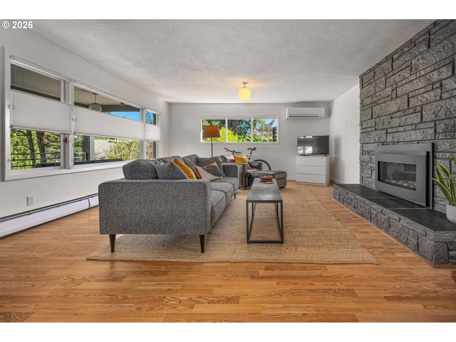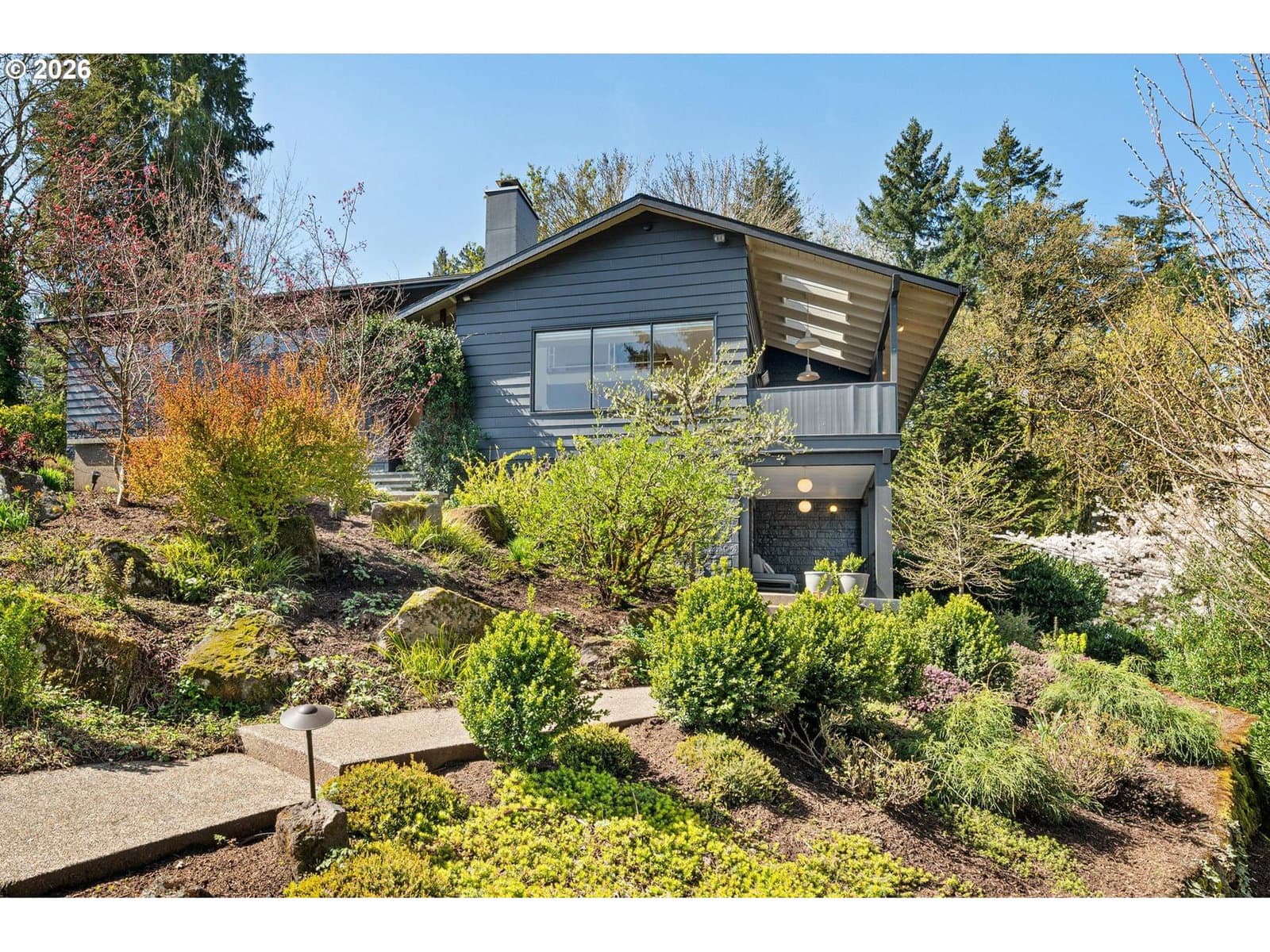 Perched atop its own long, private driveway on an oversized lot, this fully remodeled mid-century home in Portland’s prestigious West Hills offers panoramic Mount Hood views from all three levels. Just minutes to downtown and OHSU—and surrounded by scenic SW Hills hiking trails—this is urban living wrapped in natural beauty and privacy.Inside, light-filled spaces highlight timeless finishes, an open kitchen-living concept, and a spacious lofted family room. The main home features 3 generous bedrooms and 2.5 baths, plus a bonus office or workout room just off the garage. The lower level offers a spacious two-bedroom, one-bath apartment with a private entrance—ideal for guests, extended family, or income potential.Multiple outdoor seating areas and covered patios create seamless indoor-outdoor living, making this one-of-a-kind property a true sanctuary in one of Portland’s most sought-after neighborhoods.