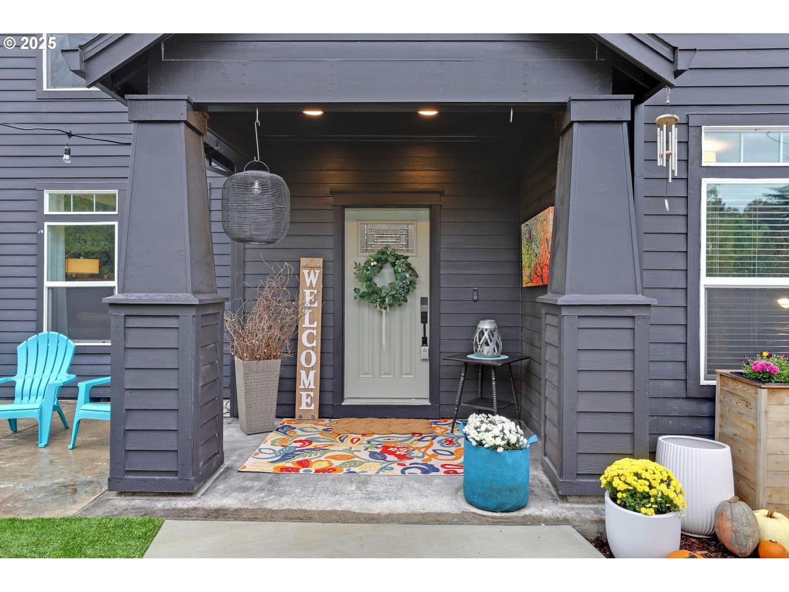 Stylish updated traditional home with a flexible floor plan that makes room for everyone. The Main floor includes a Den perfect for home office, a lovely living room with fireplace, dining room with slider to covered outdoor space, a recently updated kitchen has a built in cook top, convection oven & microwave, stainless appliances, quarts counters & tile backsplash; it will surely inspire the chef and baker in you. The eat in dining looking out over the lovely yard, and there's another flexible space that encourages friends and family to gather. Don't miss the large pantry off the kitchen. A stylish powder room rounds out this level. Main floor is newer luxury vinyl, easy care and pet friendly. The second level has a nicely appointed primary suite; with walk in closet, bath w/ double vanity, soaker tub & walk in shower. This level has a second bath, two bedrooms, laundry room, and a large bonus room with a closet, make it whatever you need. This home boasts indoor and outdoor spaces perfect for entertaining year round. A landscape architect designed this very special oasis. You'll find multiple fruit trees, berries, raised beds, several hard scape spaces for dining, cooking, playing out of the rain, and includes a gas fire pit to enjoy. Don't miss the creative "tree house" and the outdoor shed that has built in shelving for storage and garden tools. Fully fenced. Don't let the flag lot keep you away, you have to see this, it is truly special. Solar panels convey and save 50% on power! The sellers also enjoyed the close proximity to Trader Joes, Starbucks, Concord Park & Comm Center, brand new and loaded with amenities, and the New Oak Lodge Library. Come tour it and please reach out if you have any questions.