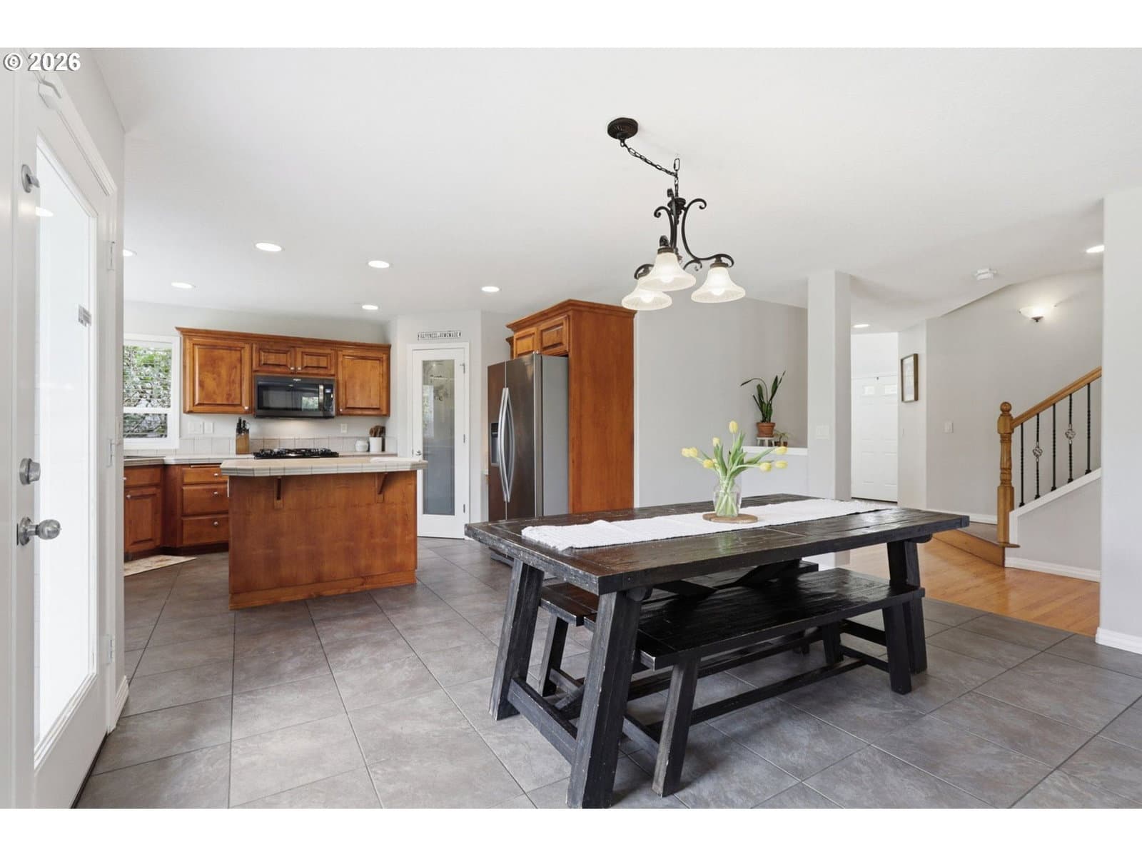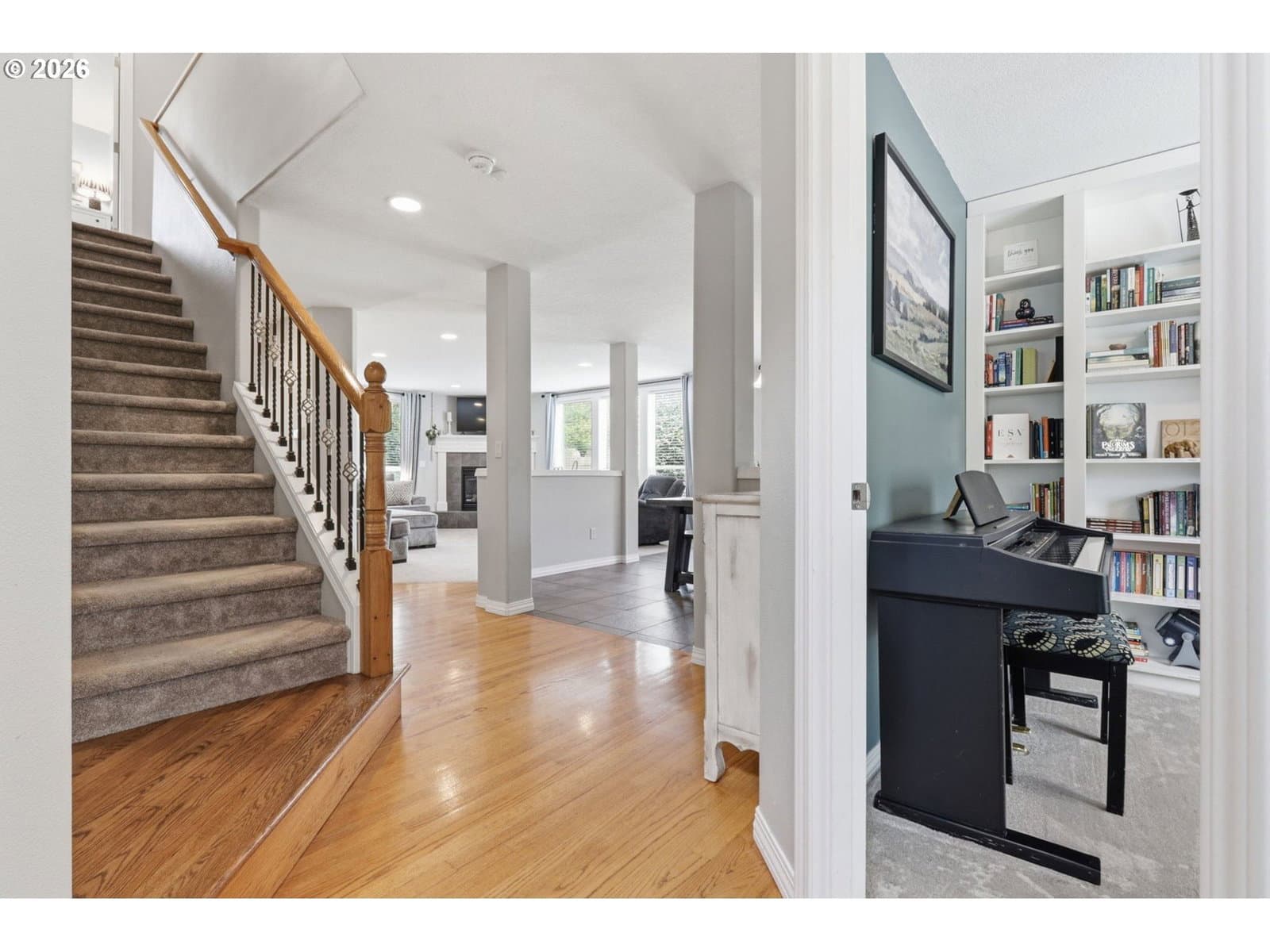 Spacious 5-bedroom + bonus room home in desirable Callista Estates! Offering 3,220 sq ft, this versatile floorplan includes a main-level bedroom and bonus room—perfect for a home office or guest space—and a large bedroom/bonus room upstairs that can function as a bedroom, media room, or playroom.The open-concept main level features hardwood floors, a cozy gas fireplace, and a functional kitchen with island, wood cabinetry, tile countertops, and a walk-in pantry. Upstairs, the generous primary suite includes a walk-in closet and ensuite bath with large soaking tub.Enjoy outdoor living in the fully fenced, flat backyard with patio, mature landscaping, raised garden beds, and a peaceful fountain—ideal for entertaining or relaxing.Situated on a 7,954 sq ft lot with a 2-car garage and extended driveway for ample parking. Solar panels help subsidize monthly power costs. Conveniently located near Chehalem Valley Middle School and Antonia Crater Elementary, parks, and all that Newberg has to offer.Move-in ready and perfect for move-up buyers seeking space, flexibility, and comfort in a well-established neighborhood.